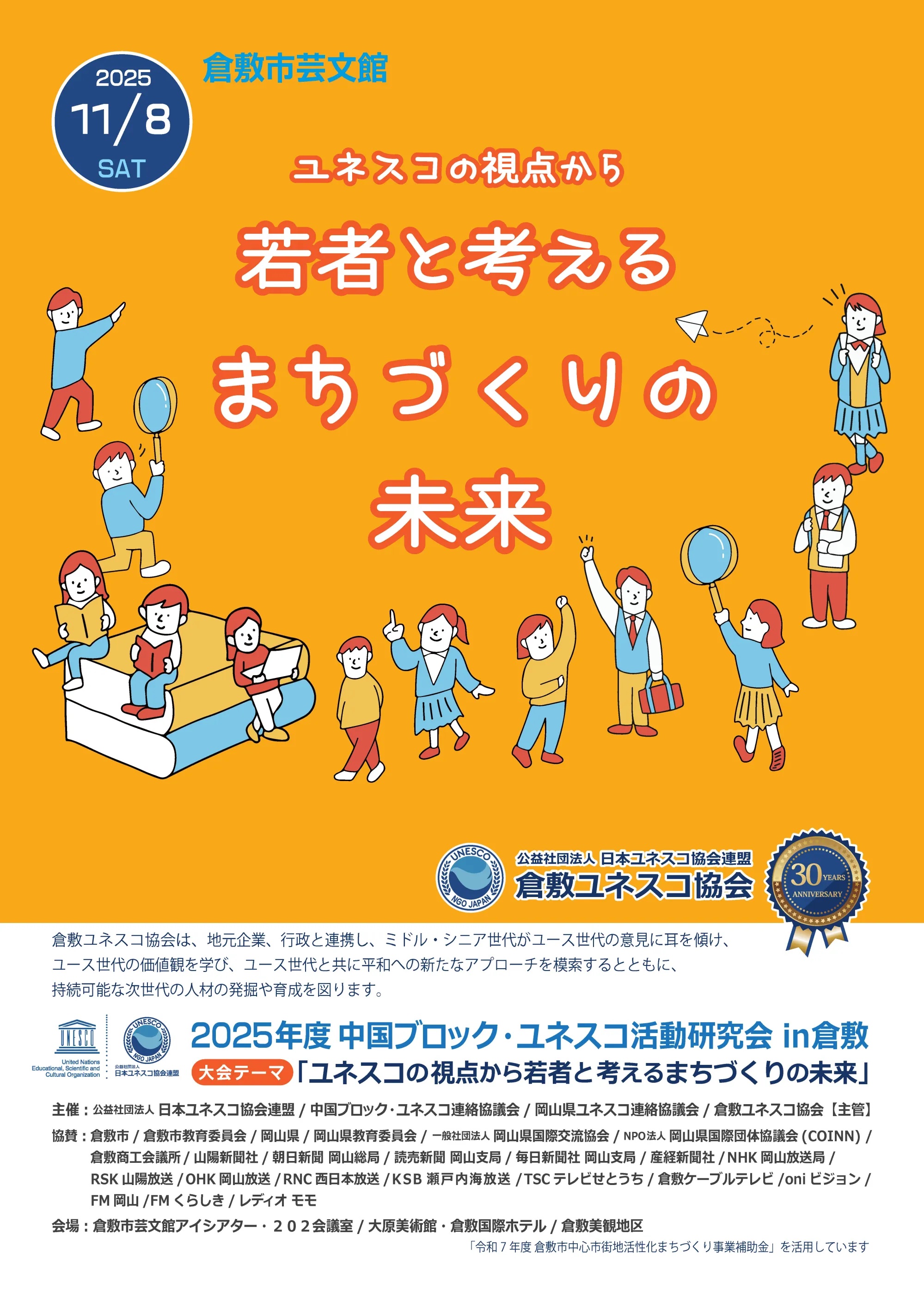 2025年11月8日(土)に開催される2025年度 中国ブロック・ユネスコ活動研究会 in 倉敷で、学生スタッフの山下さんがパネルディスカッションに参加することになりました。