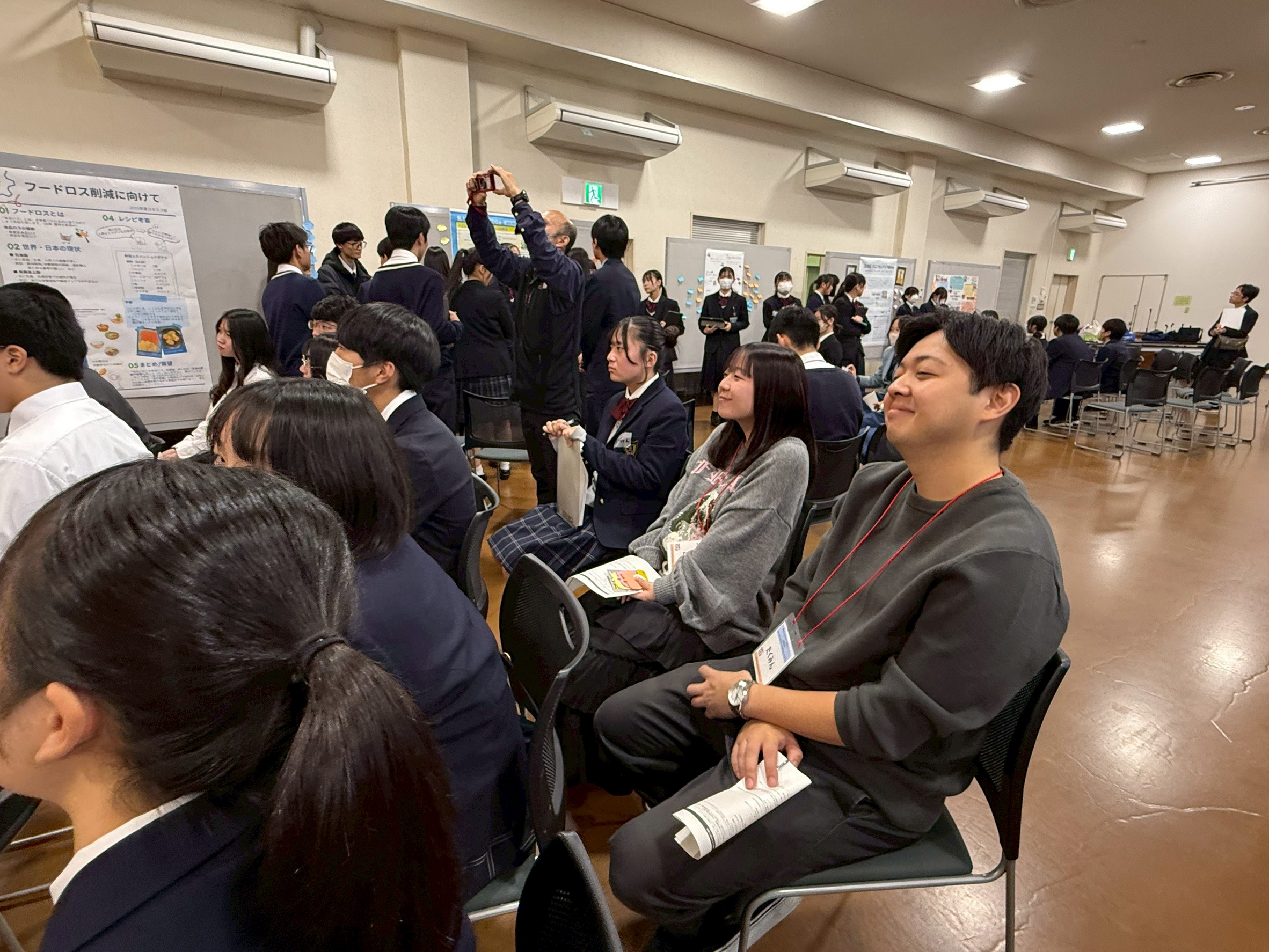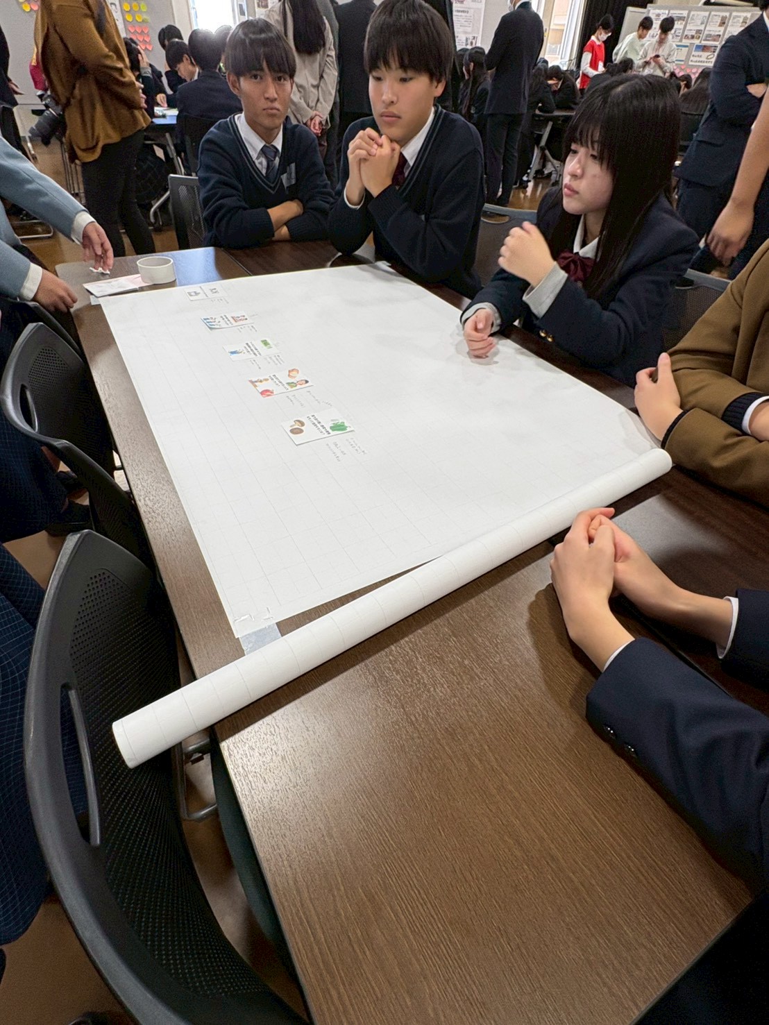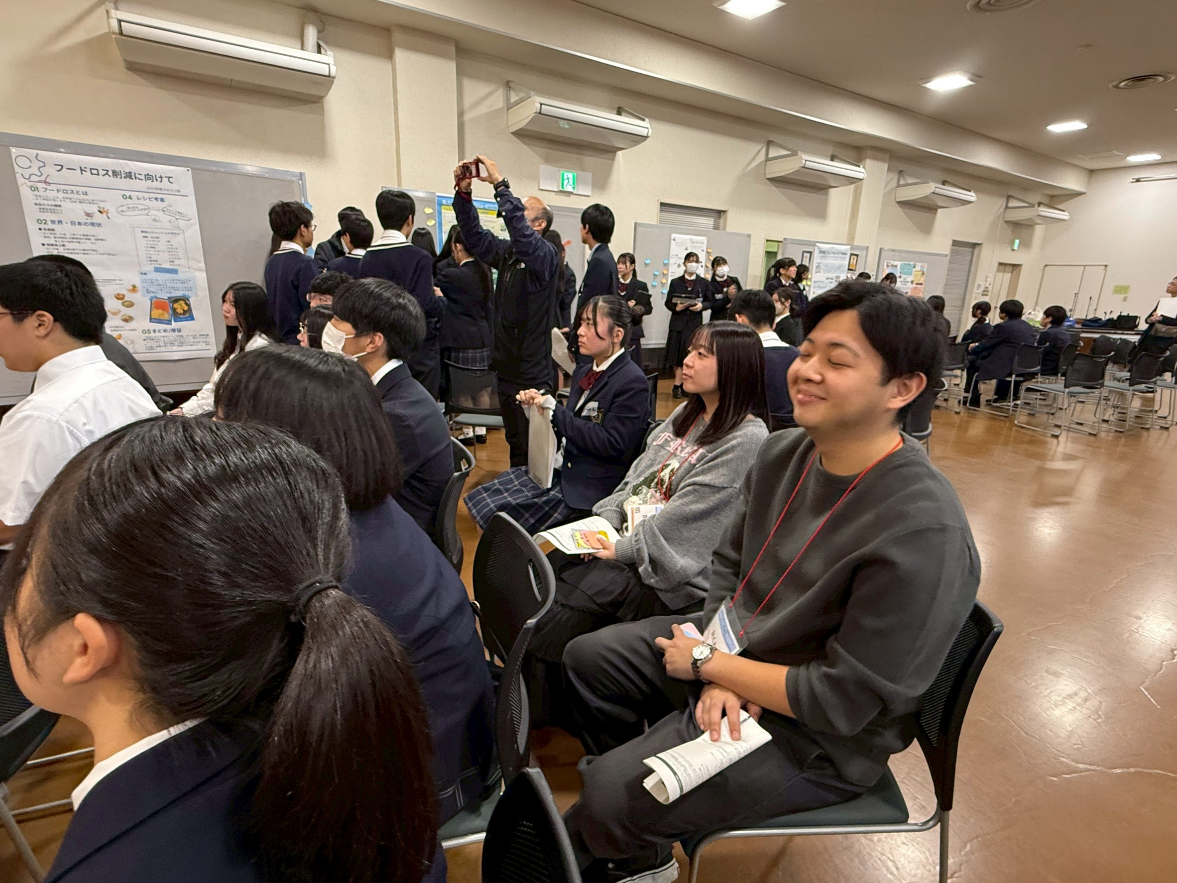 各高校で取り組んでいることについてポスター発表を行い、高校生が考えた「食」にまつわる諸問題について、学べるワークショップをお互いに体験し合いました。