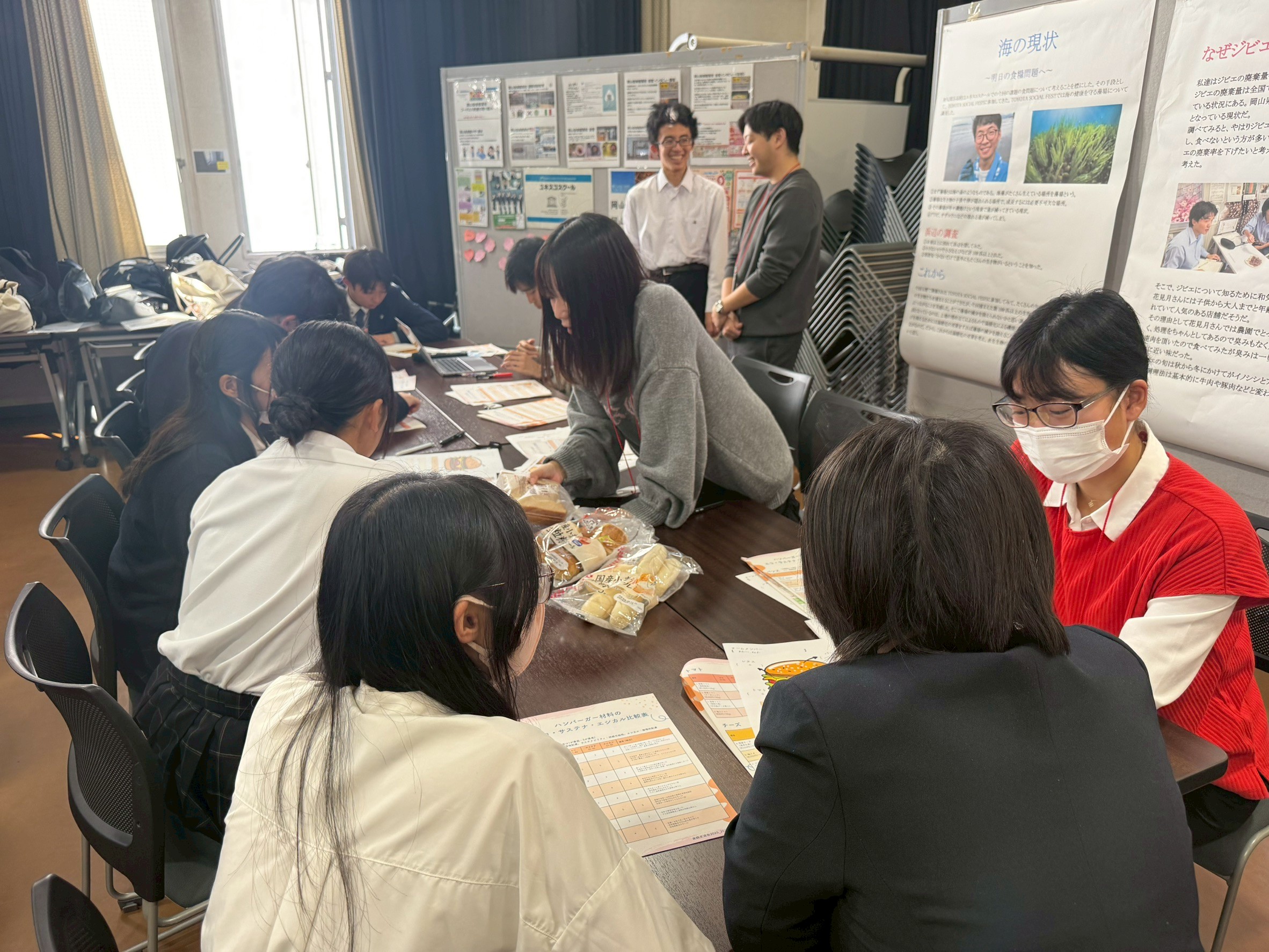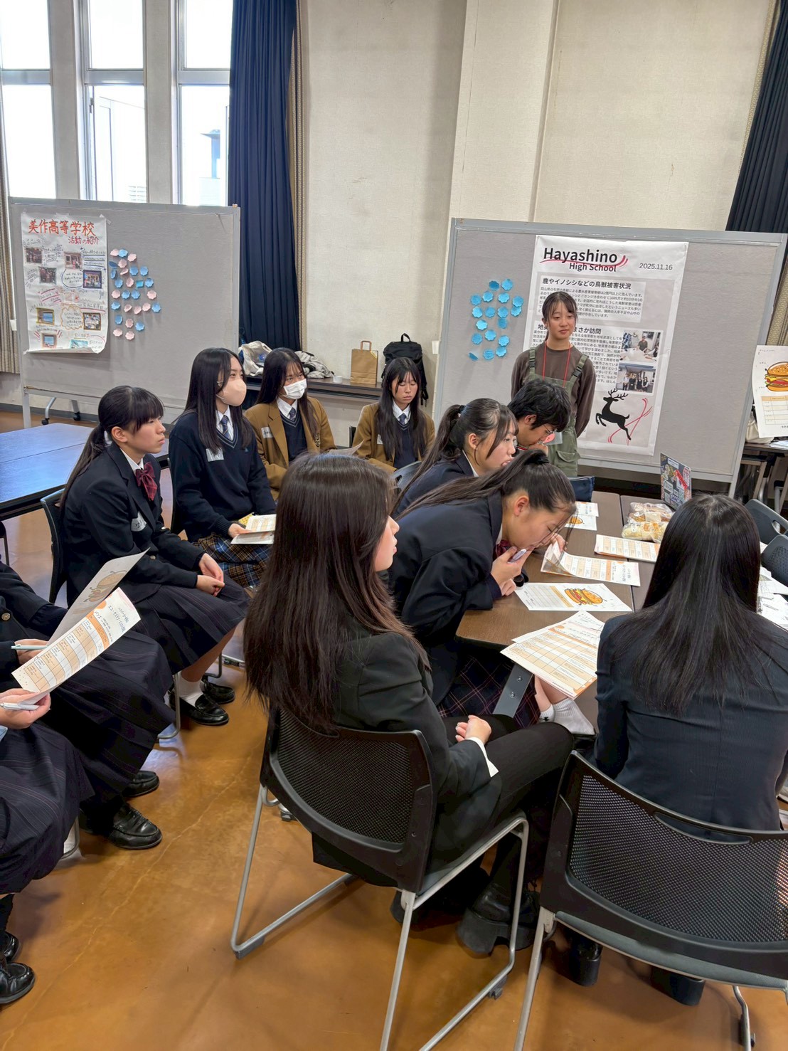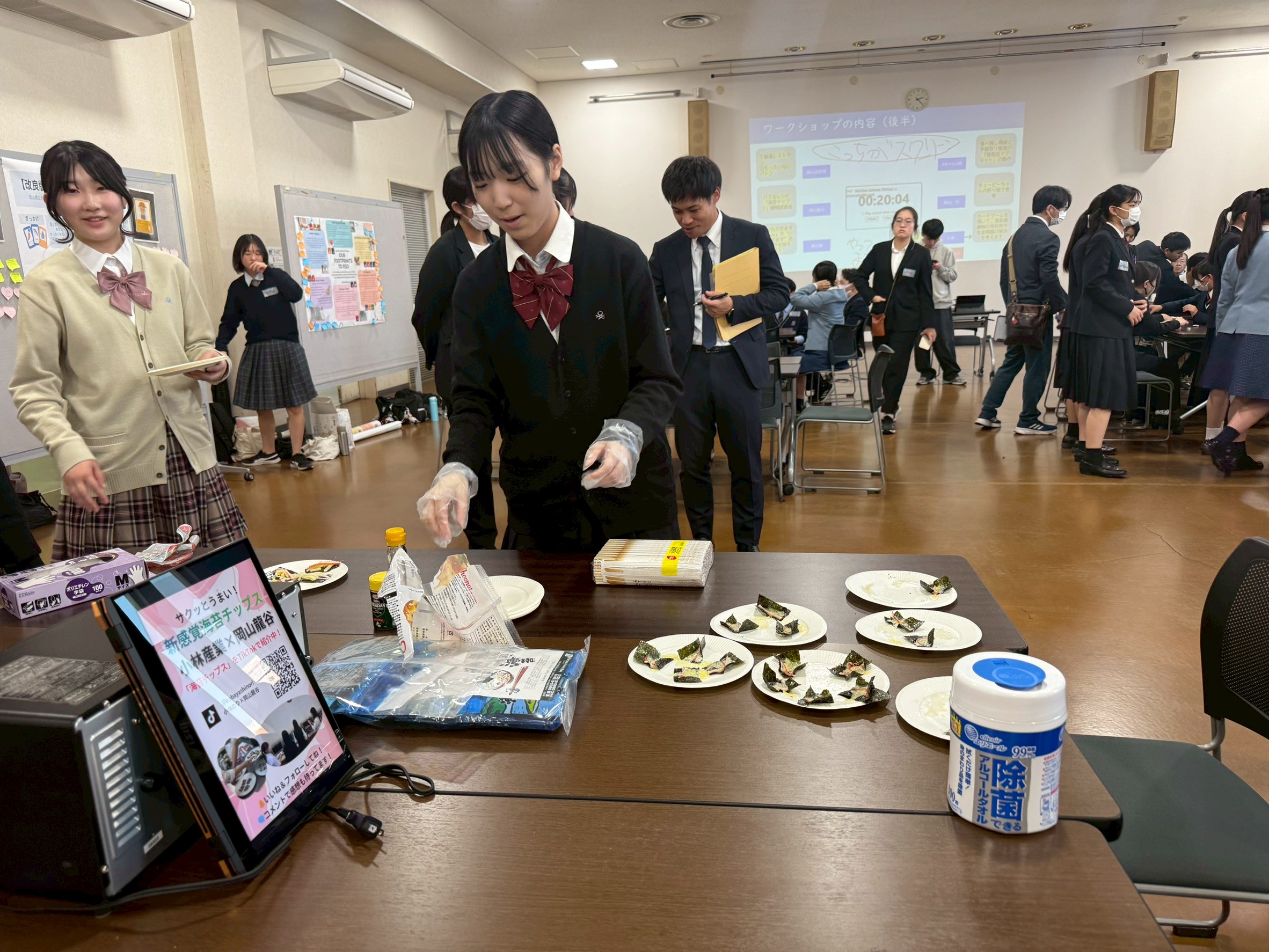 各高校で取り組んでいることについてポスター発表を行い、高校生が考えた「食」にまつわる諸問題について、学べるワークショップをお互いに体験し合いました。