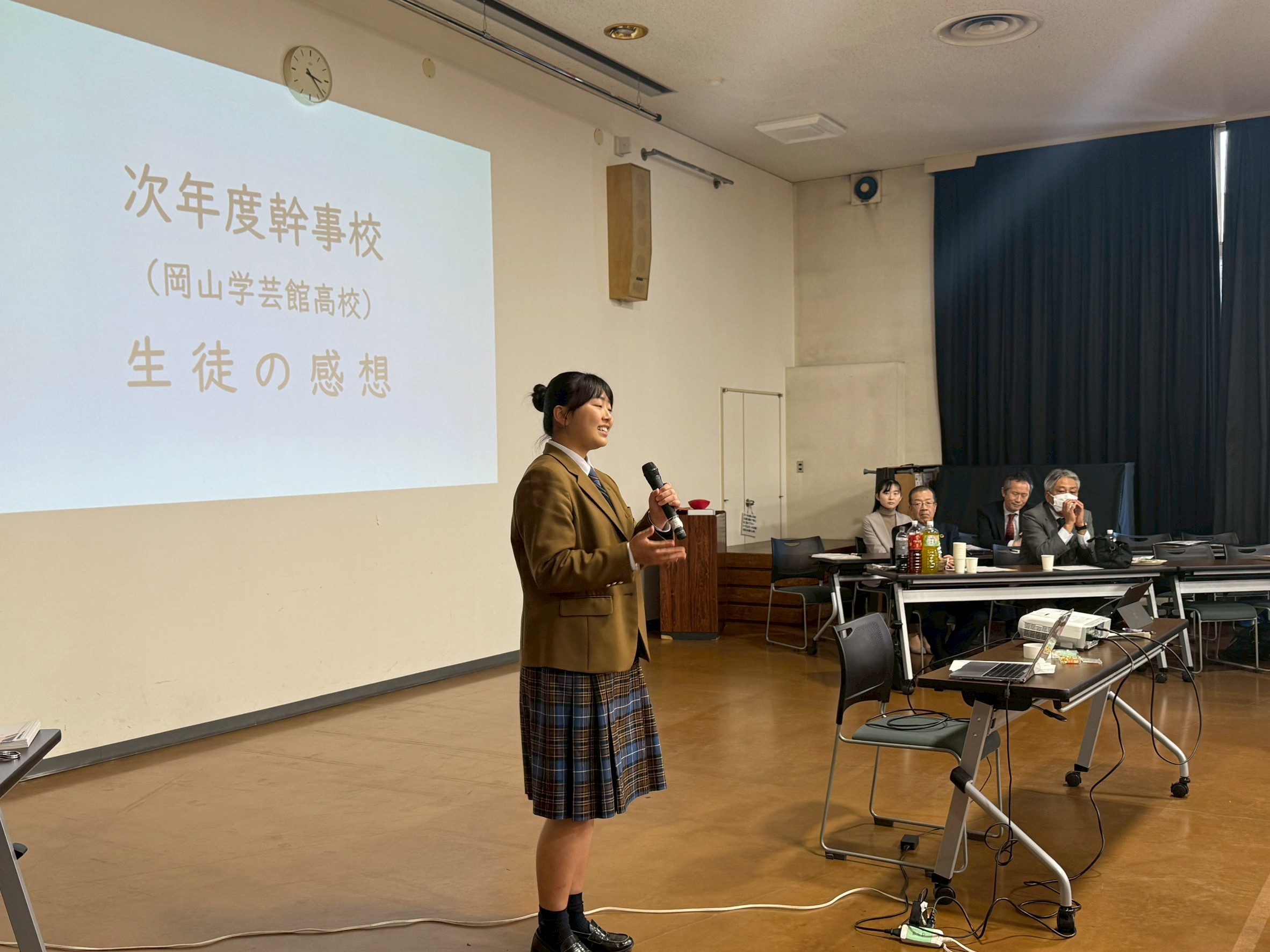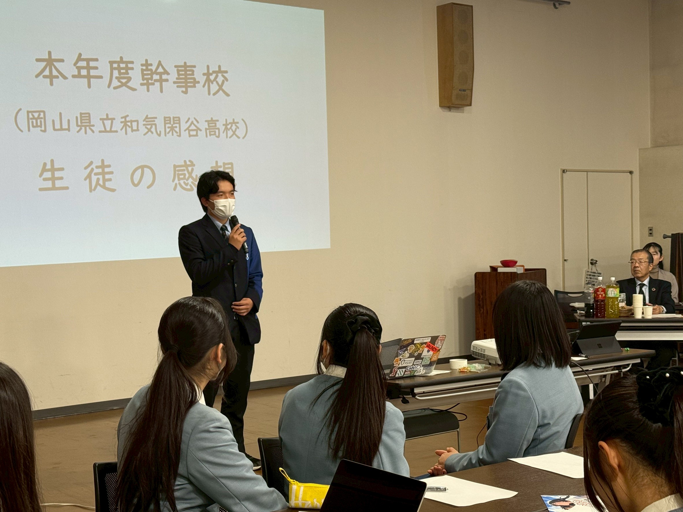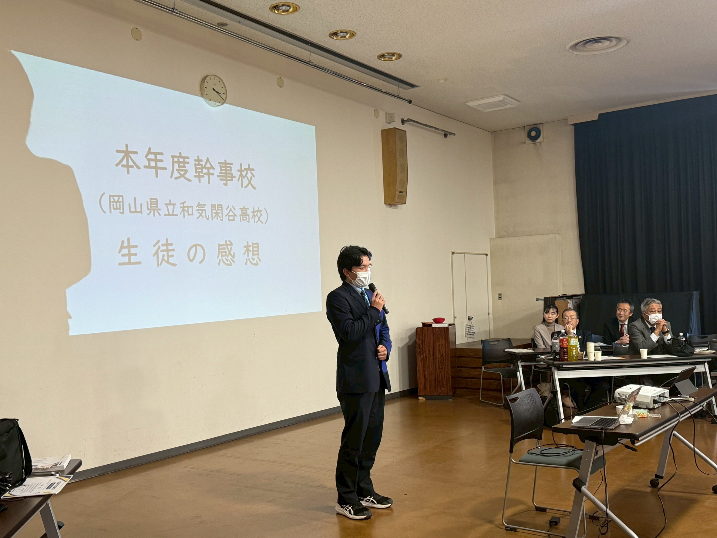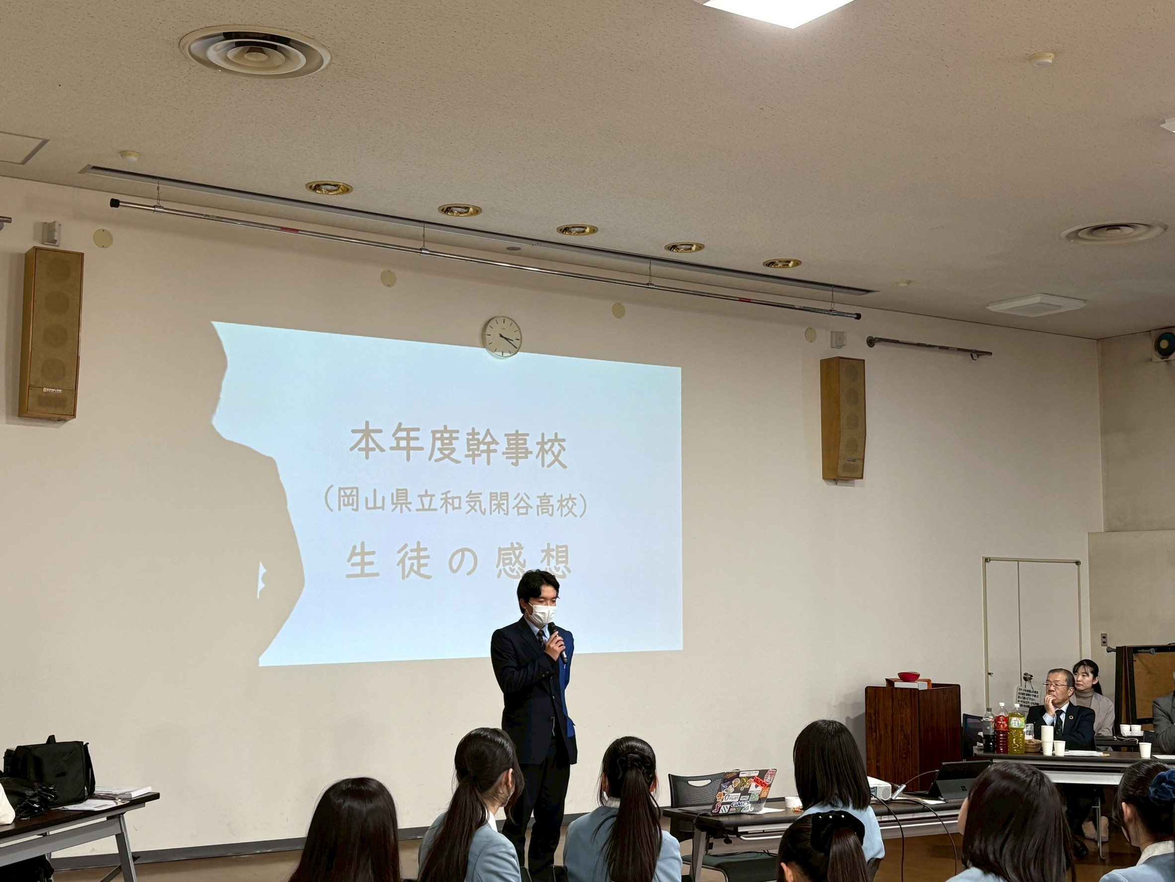 本年度幹事校の和気閑谷高校、および次年度幹事校の学芸館高校の生徒より感想が述べられました。「大変楽しかった」等の好意的な意見が多数寄せられ、実りある会となりました。