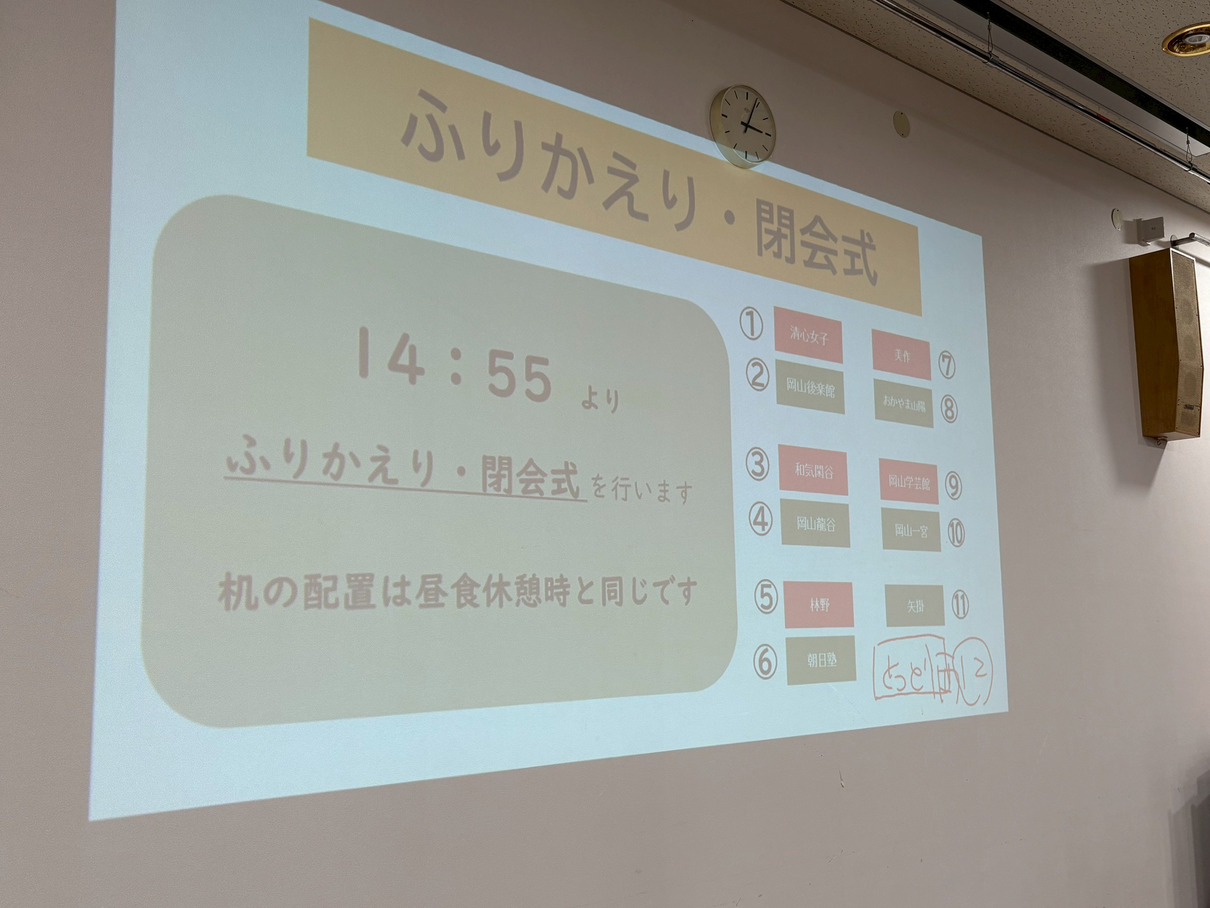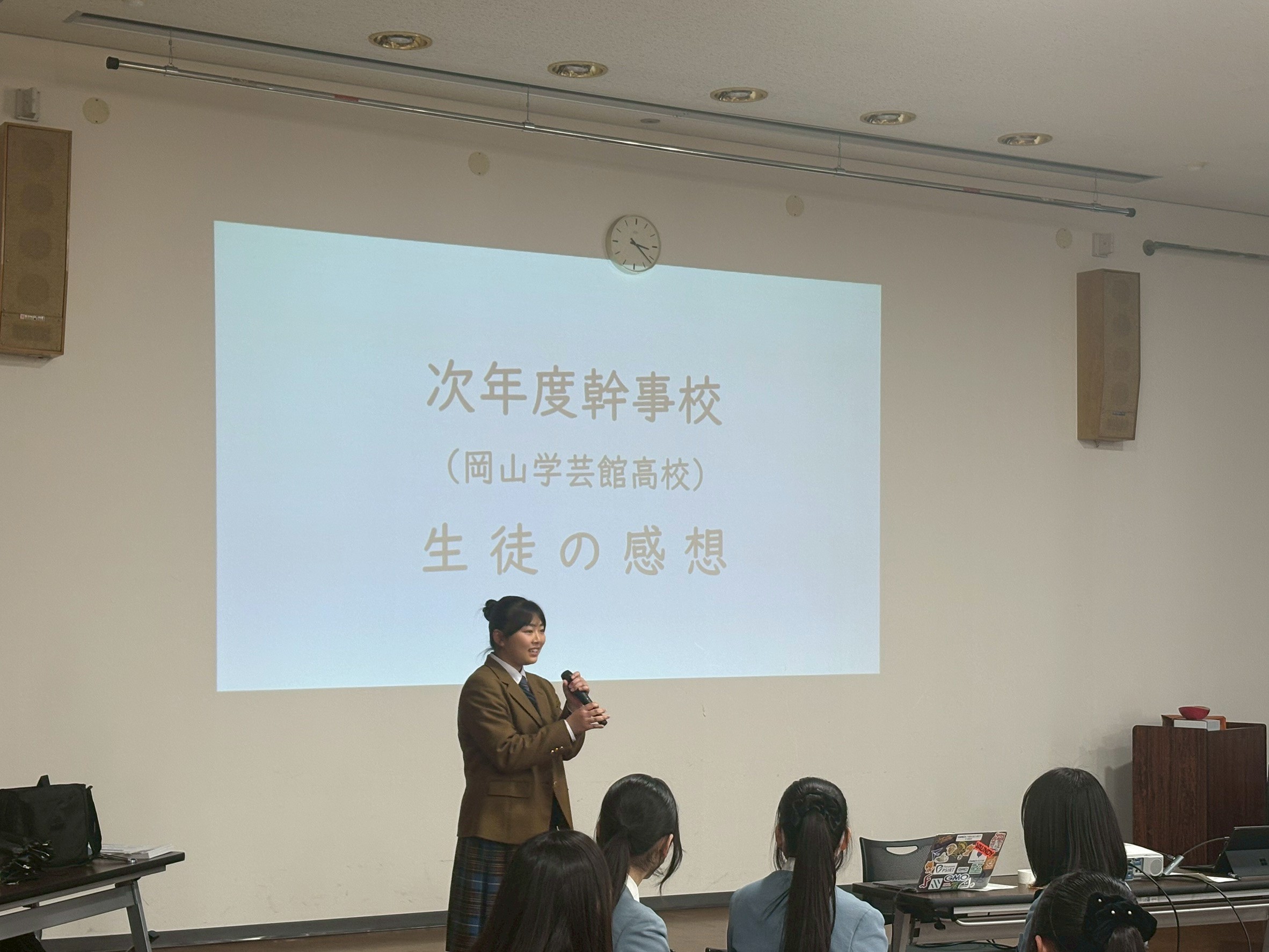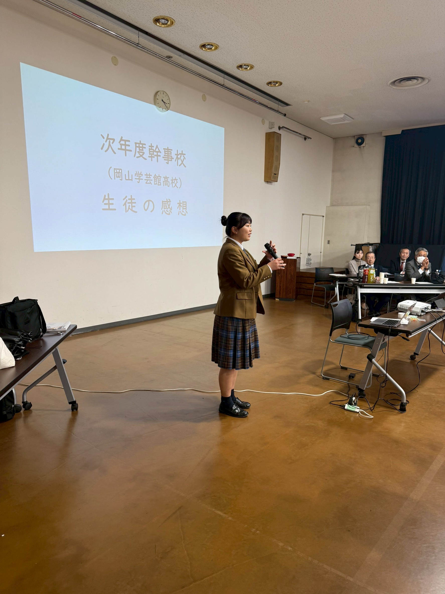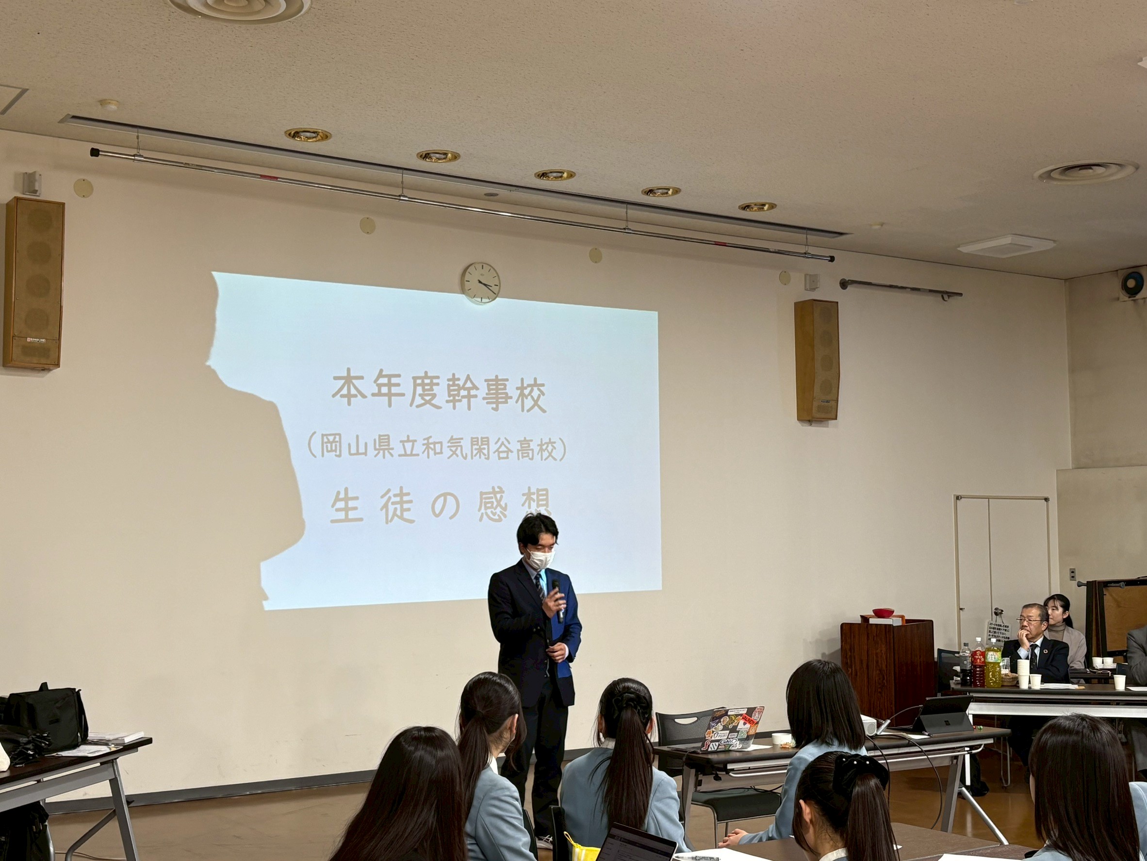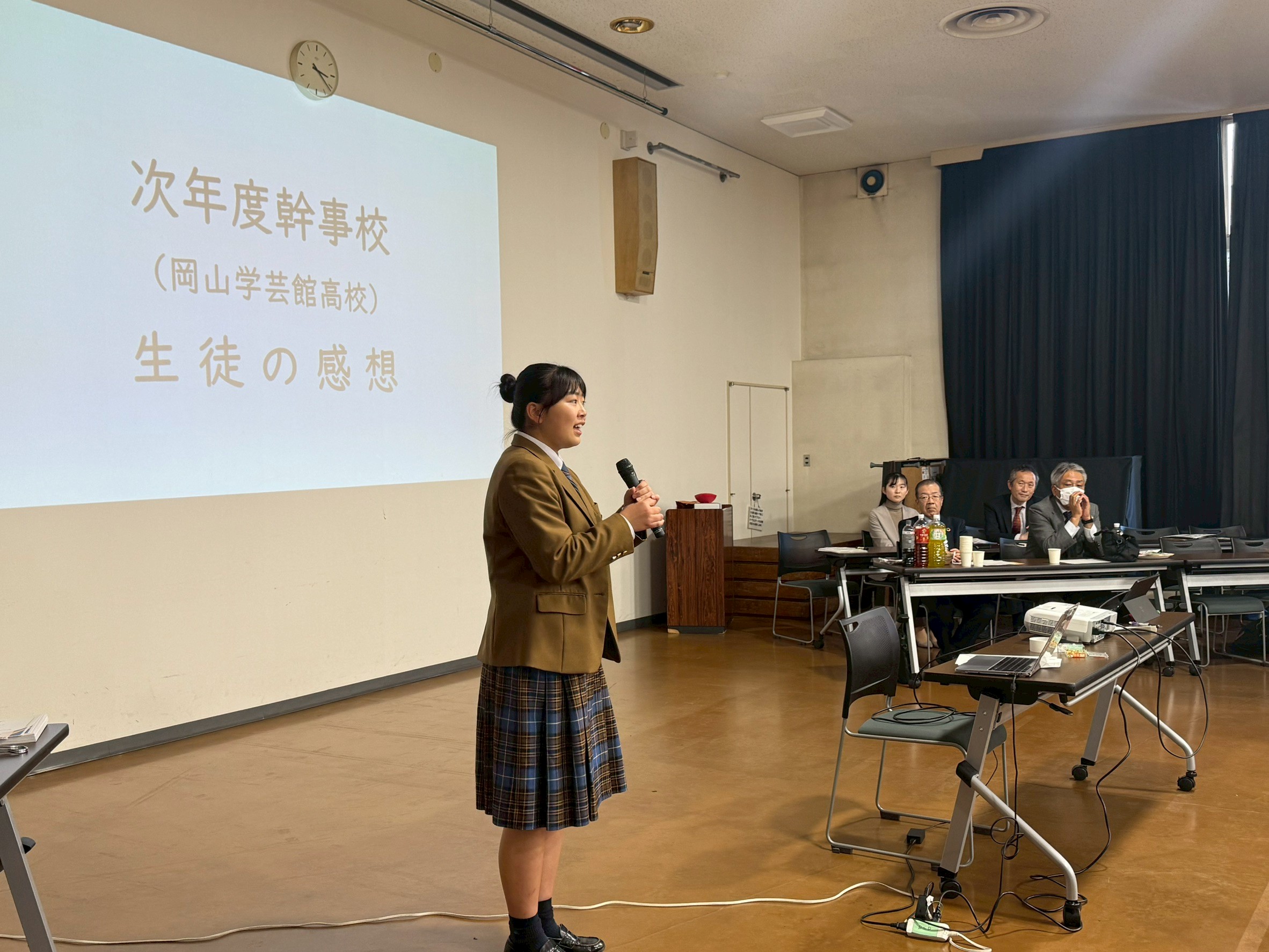本年度幹事校の和気閑谷高校、および次年度幹事校の学芸館高校の生徒より感想が述べられました。「大変楽しかった」等の好意的な意見が多数寄せられ、実りある会となりました。