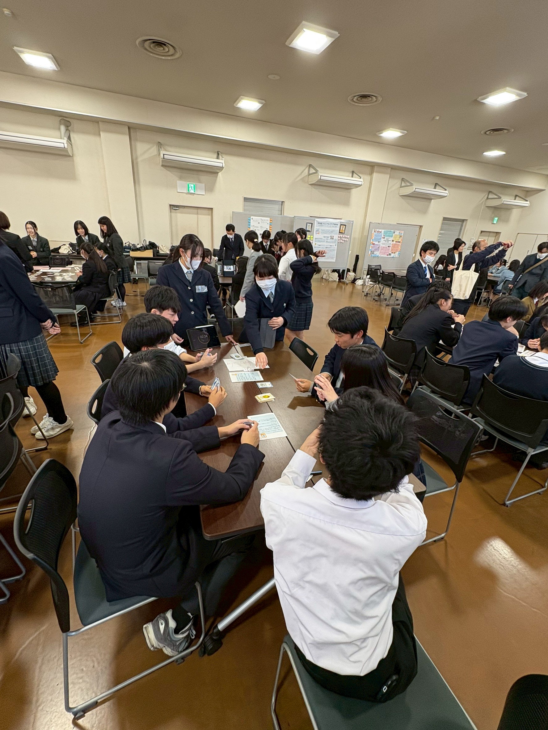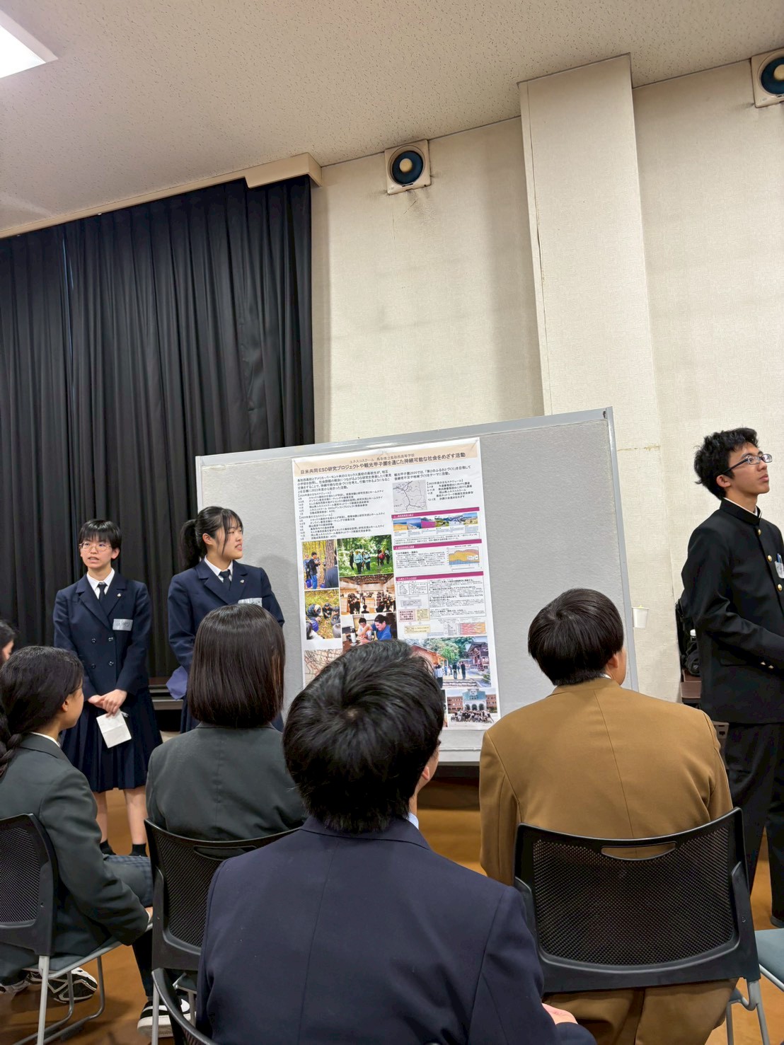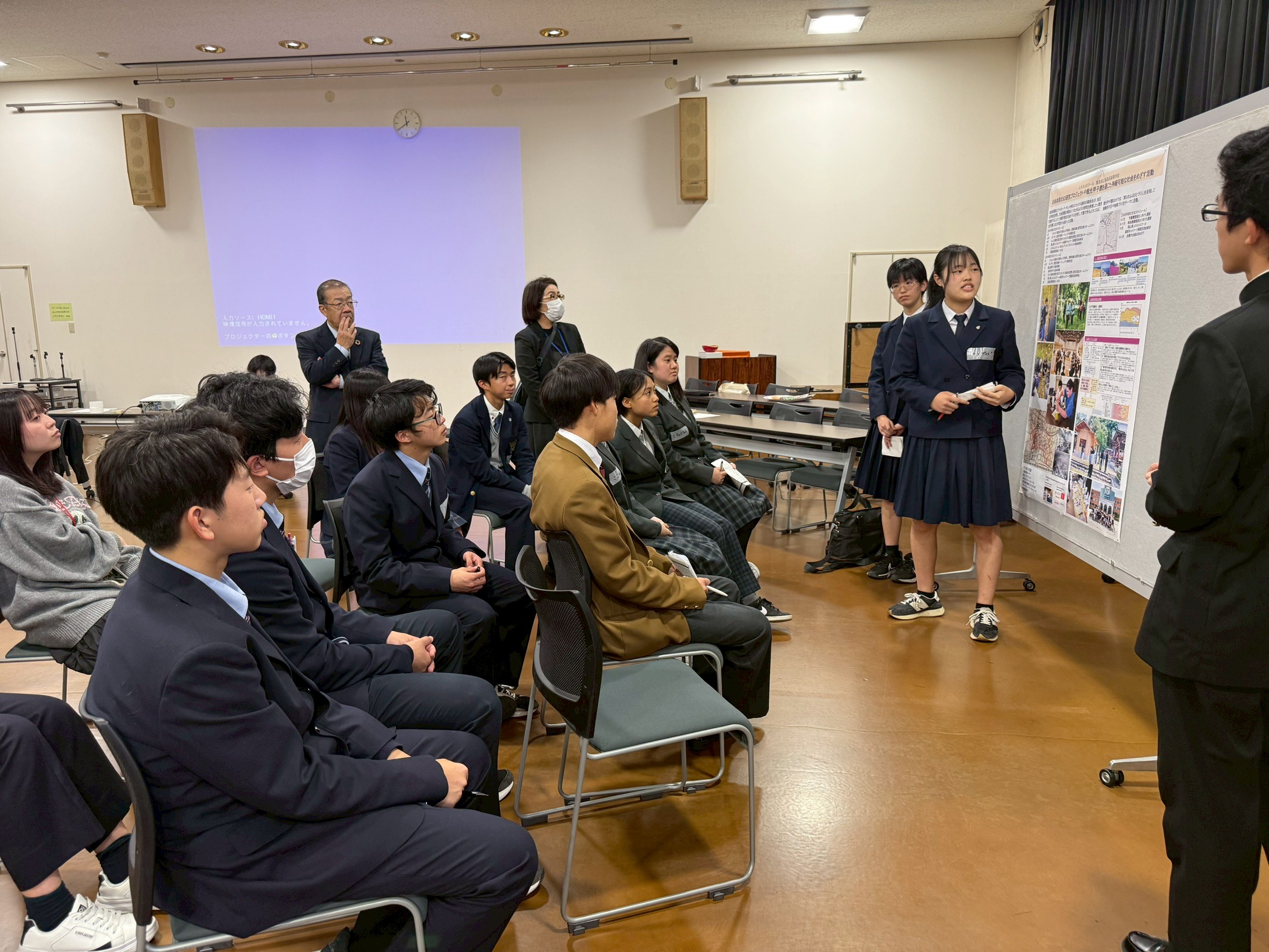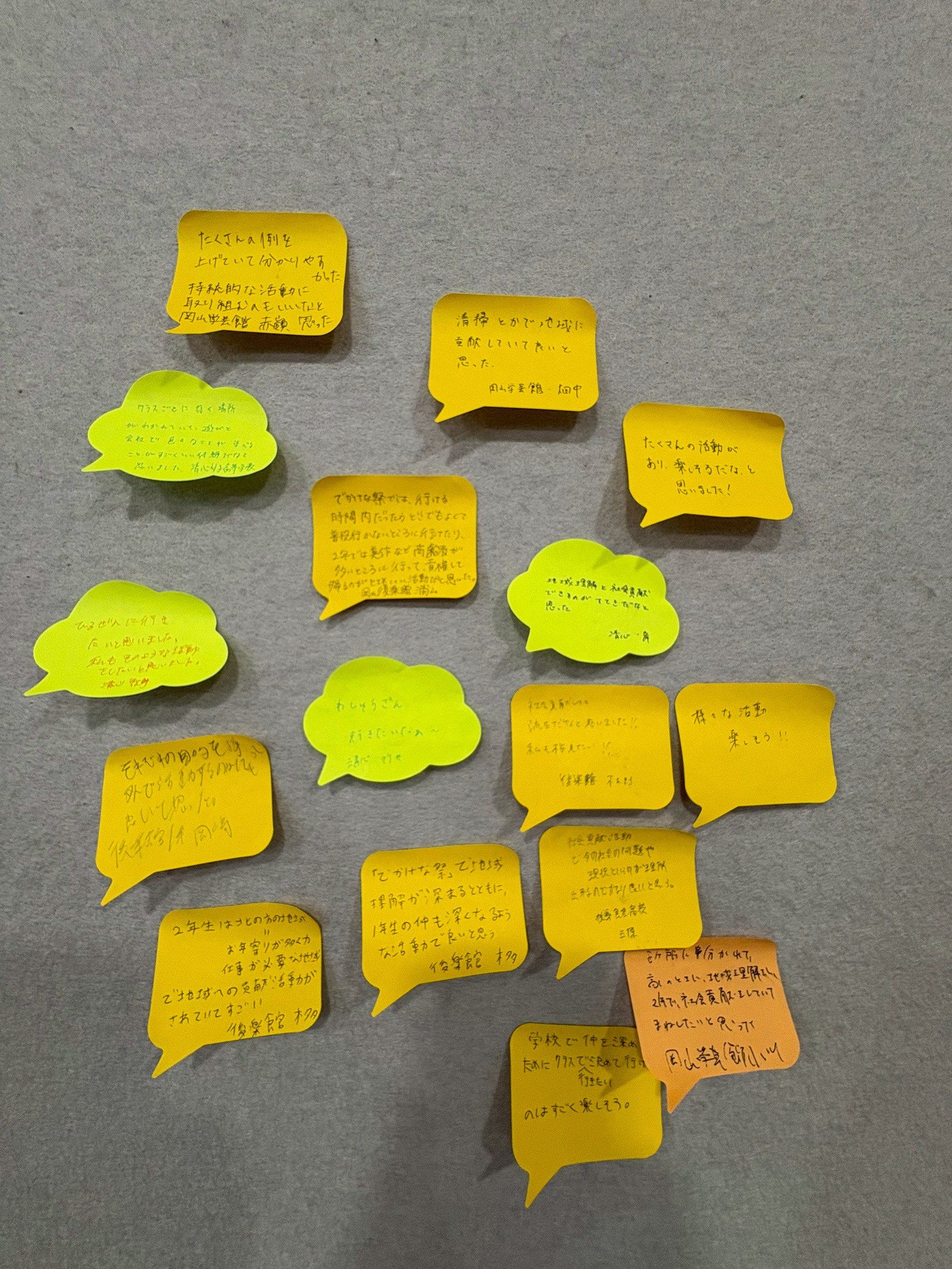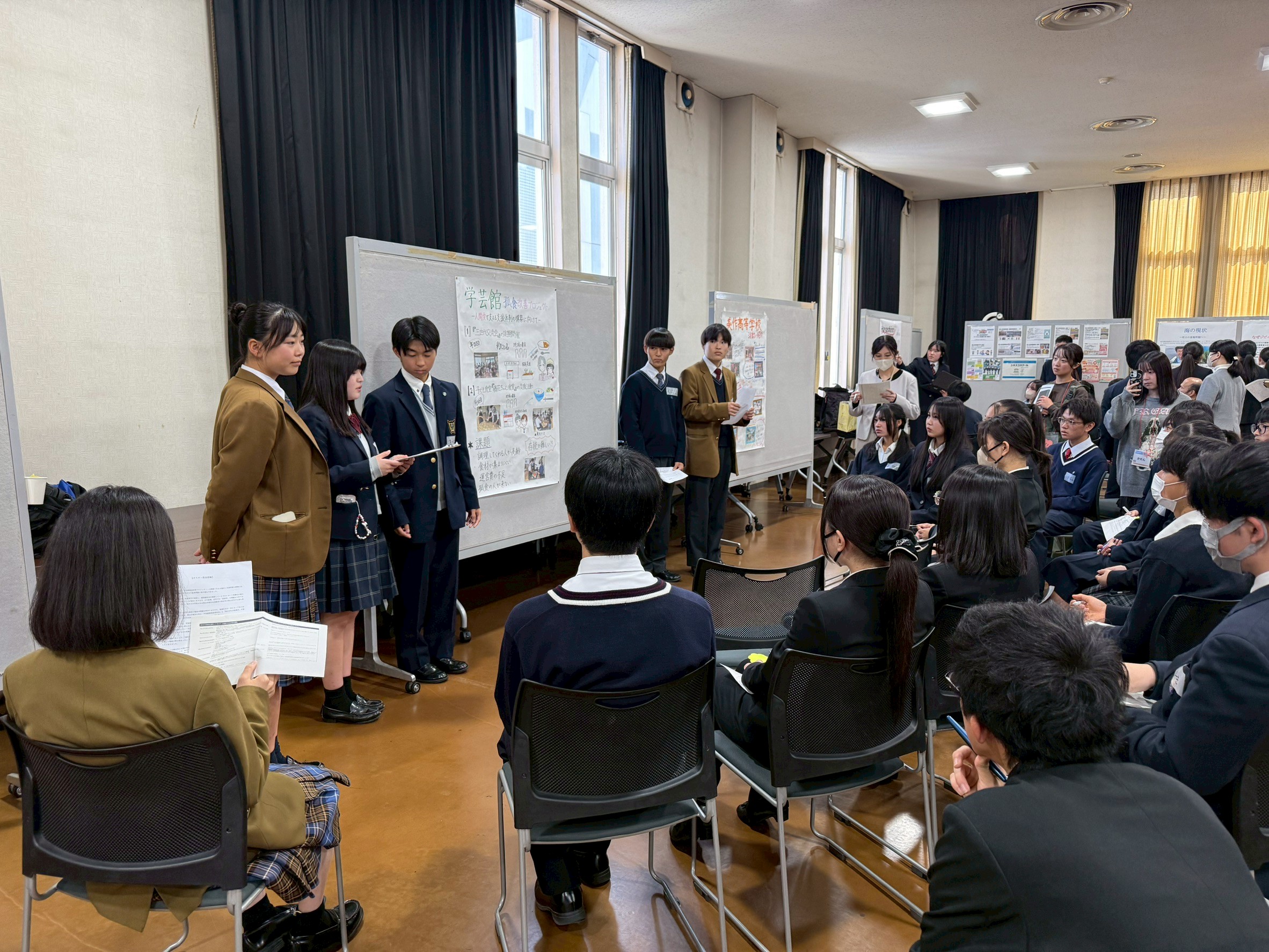 ポスターセッションでは、参加校の生徒たちがそれぞれの活動を紹介し合いました。互いに「良い」と思った点を付箋に書いて貼り付け、生徒同士が褒め合い、認め合う姿が見られました。