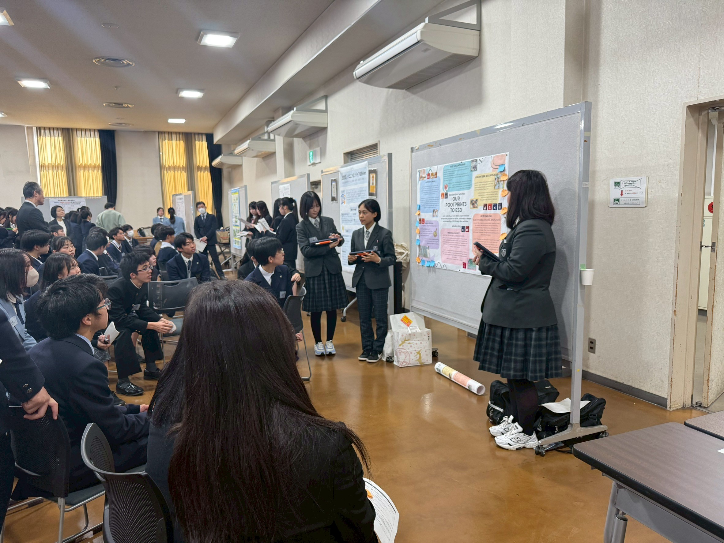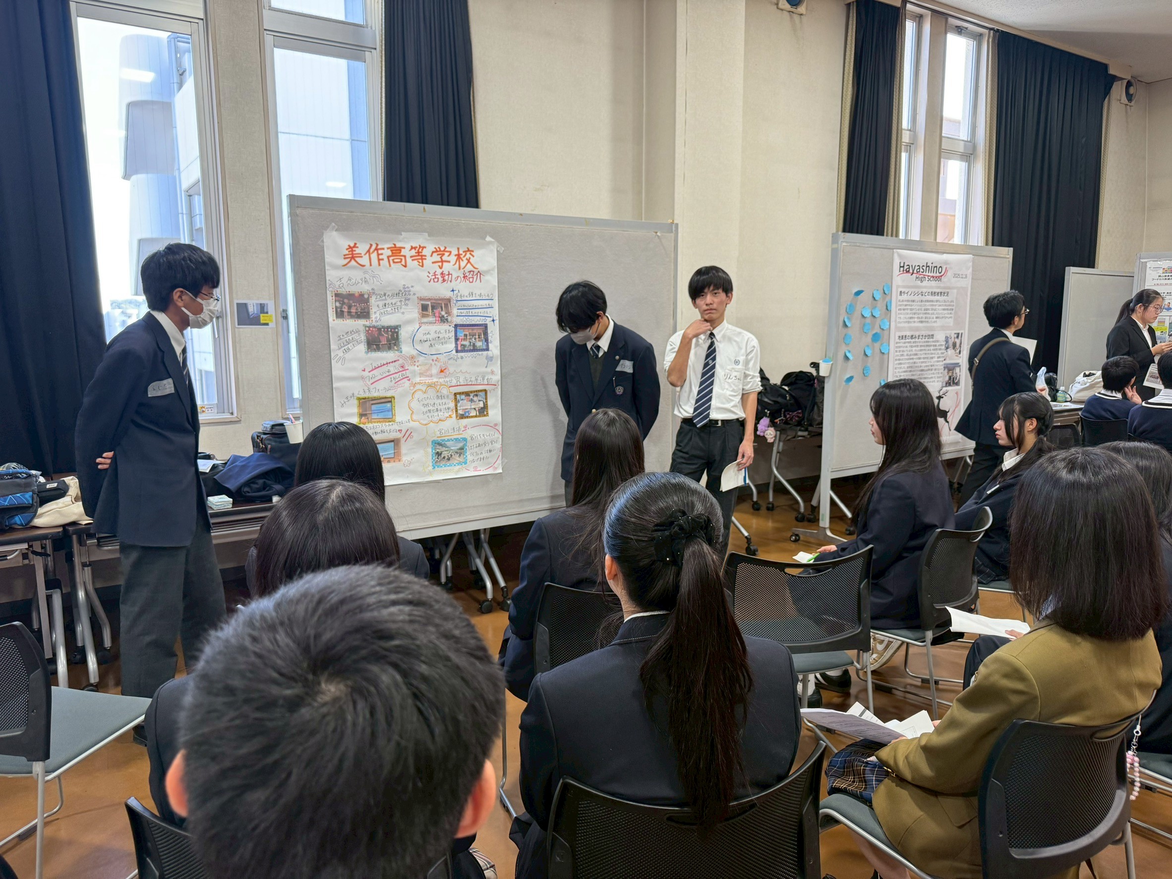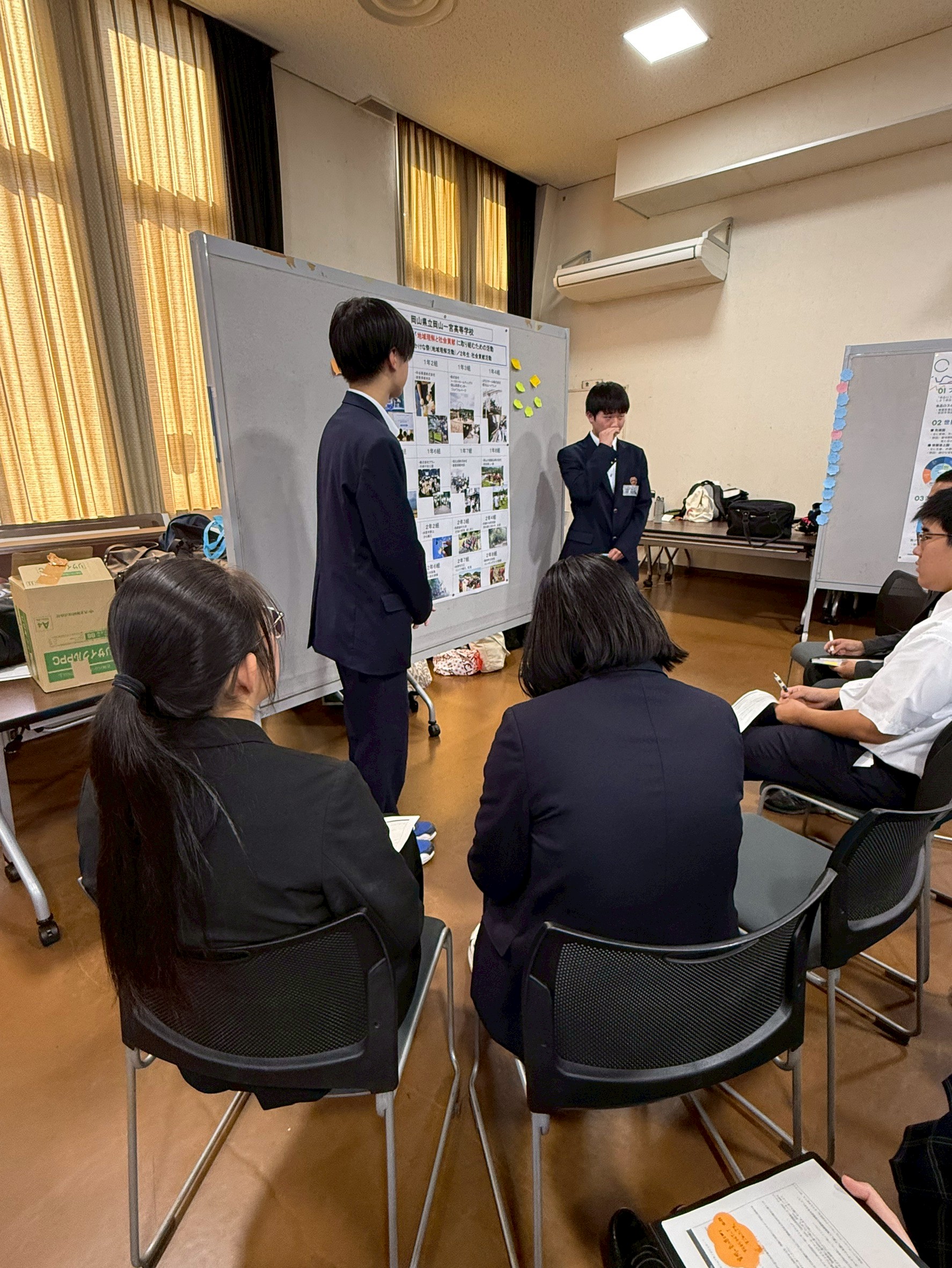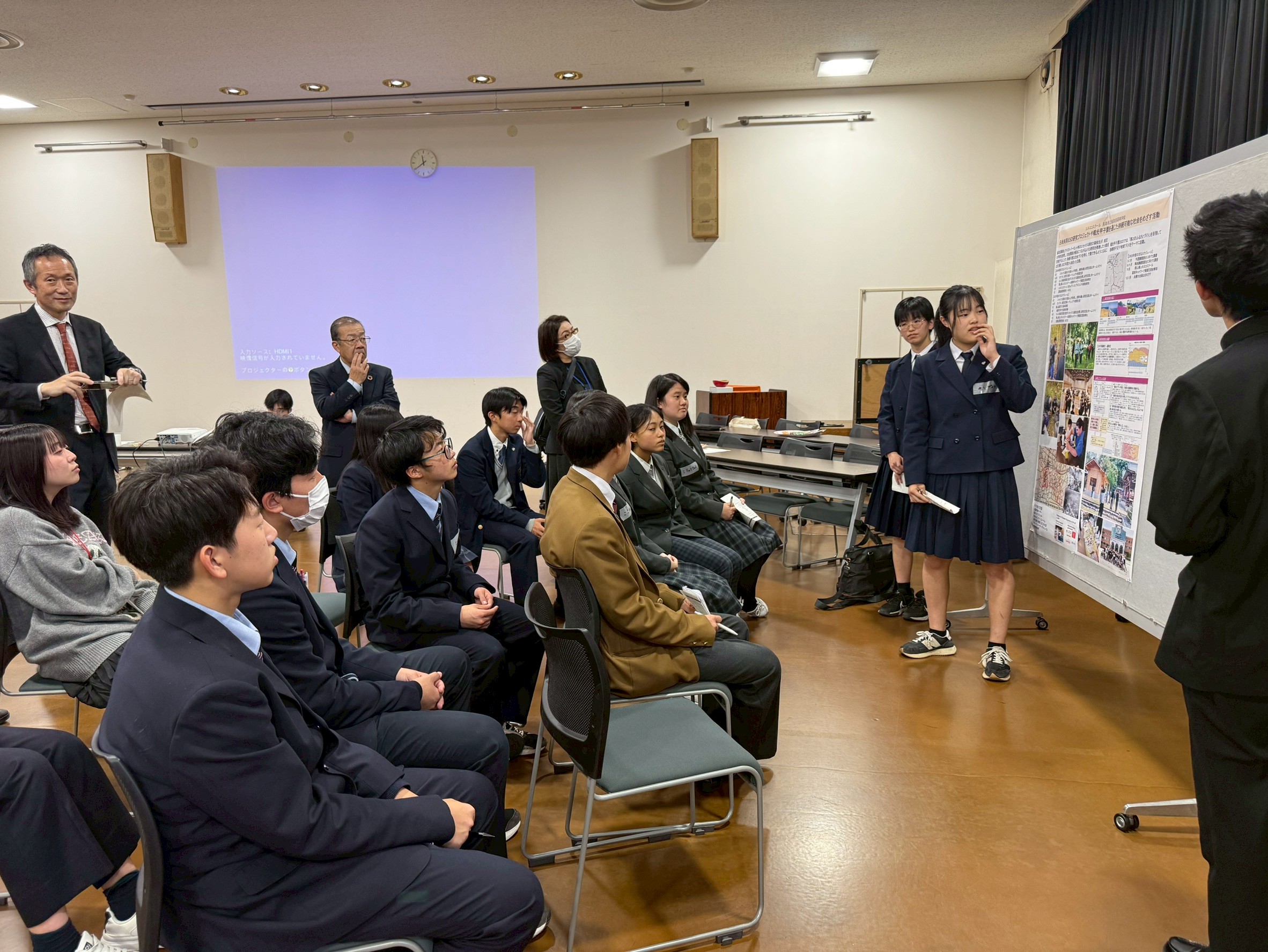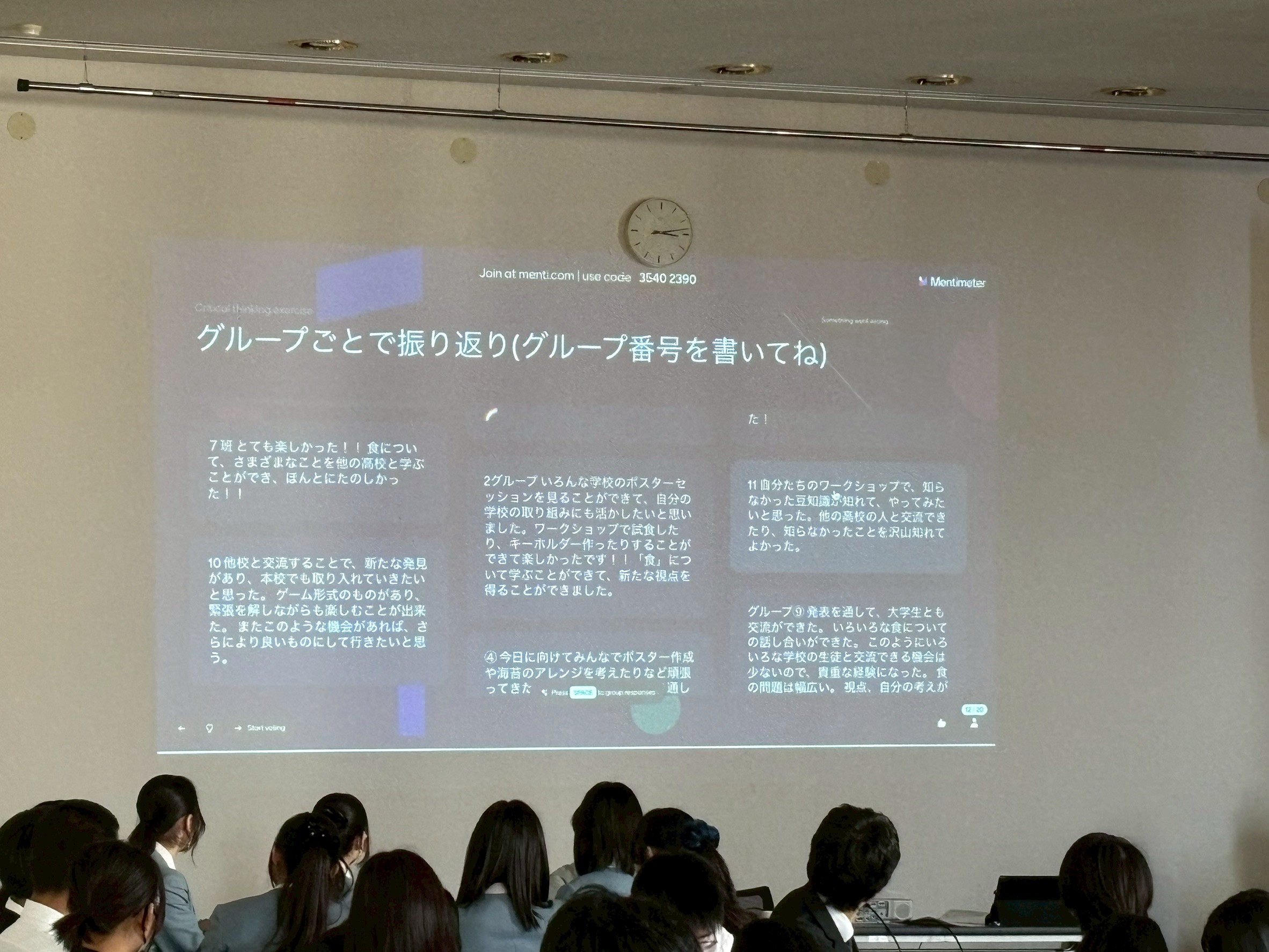 ポスターセッションでは、参加校の生徒たちがそれぞれの活動を紹介し合いました。互いに「良い」と思った点を付箋に書いて貼り付け、生徒同士が褒め合い、認め合う姿が見られました。