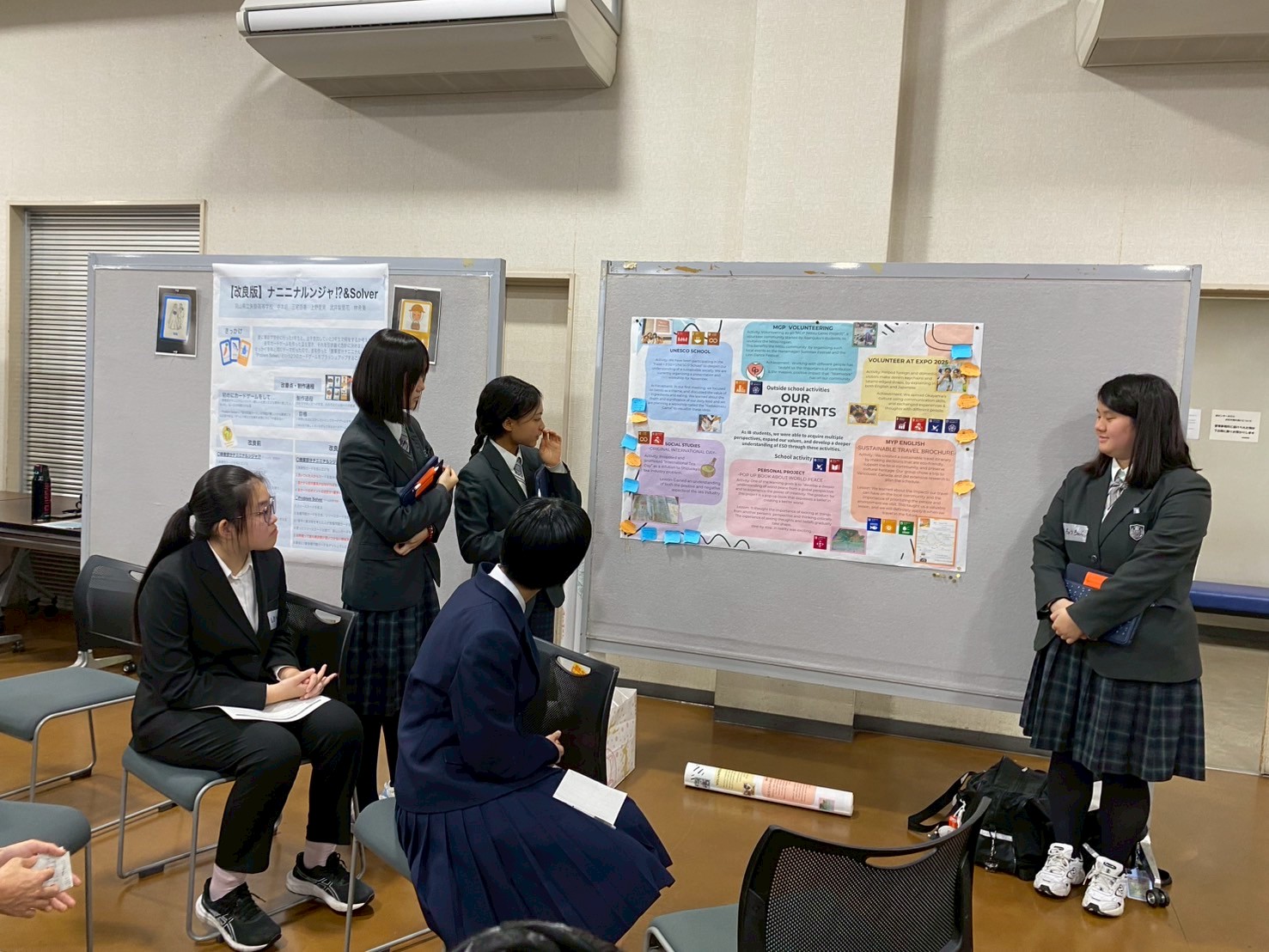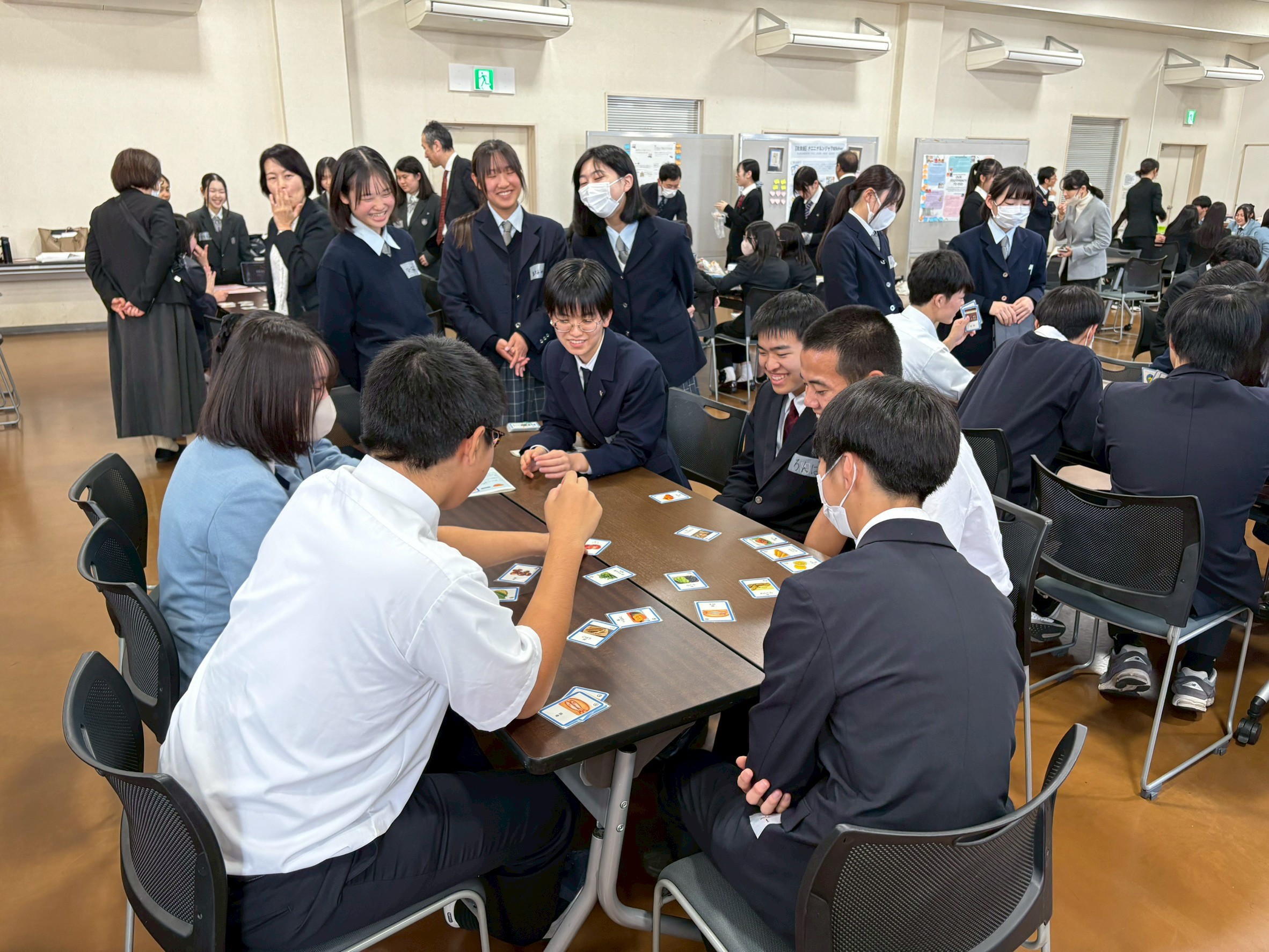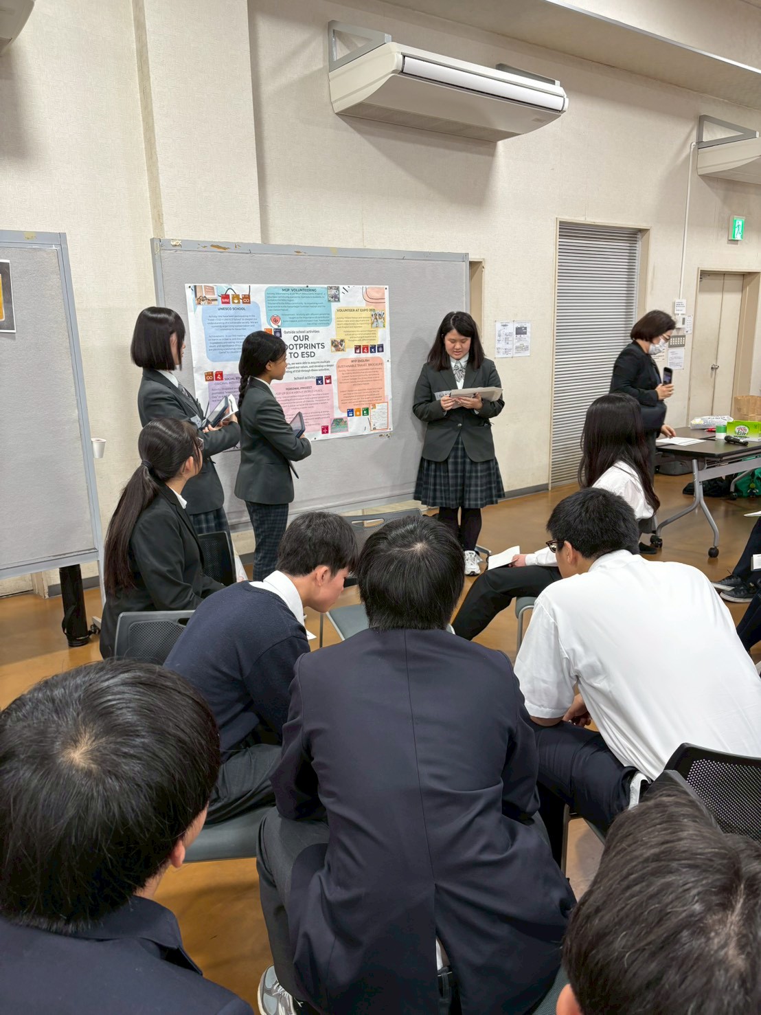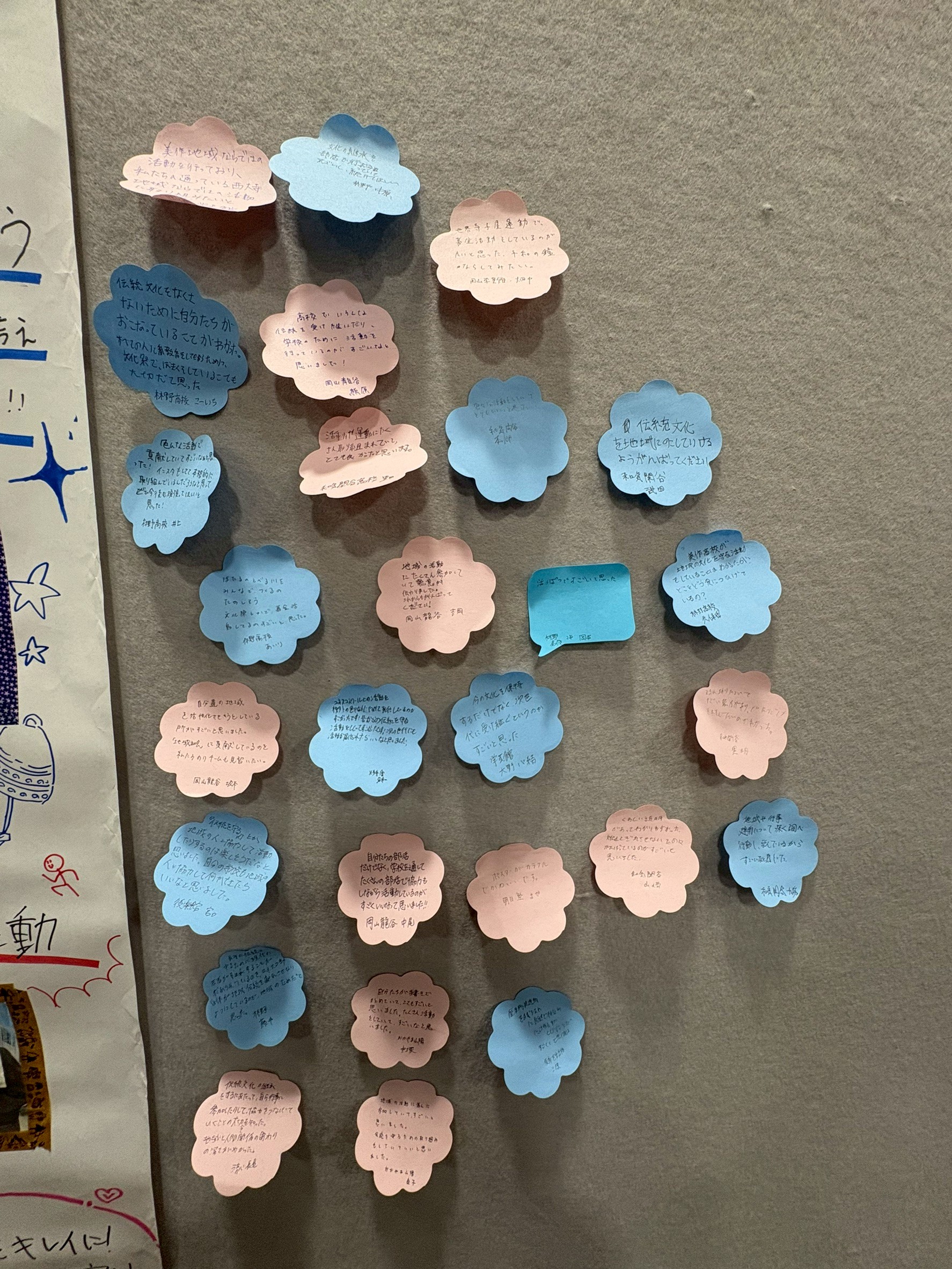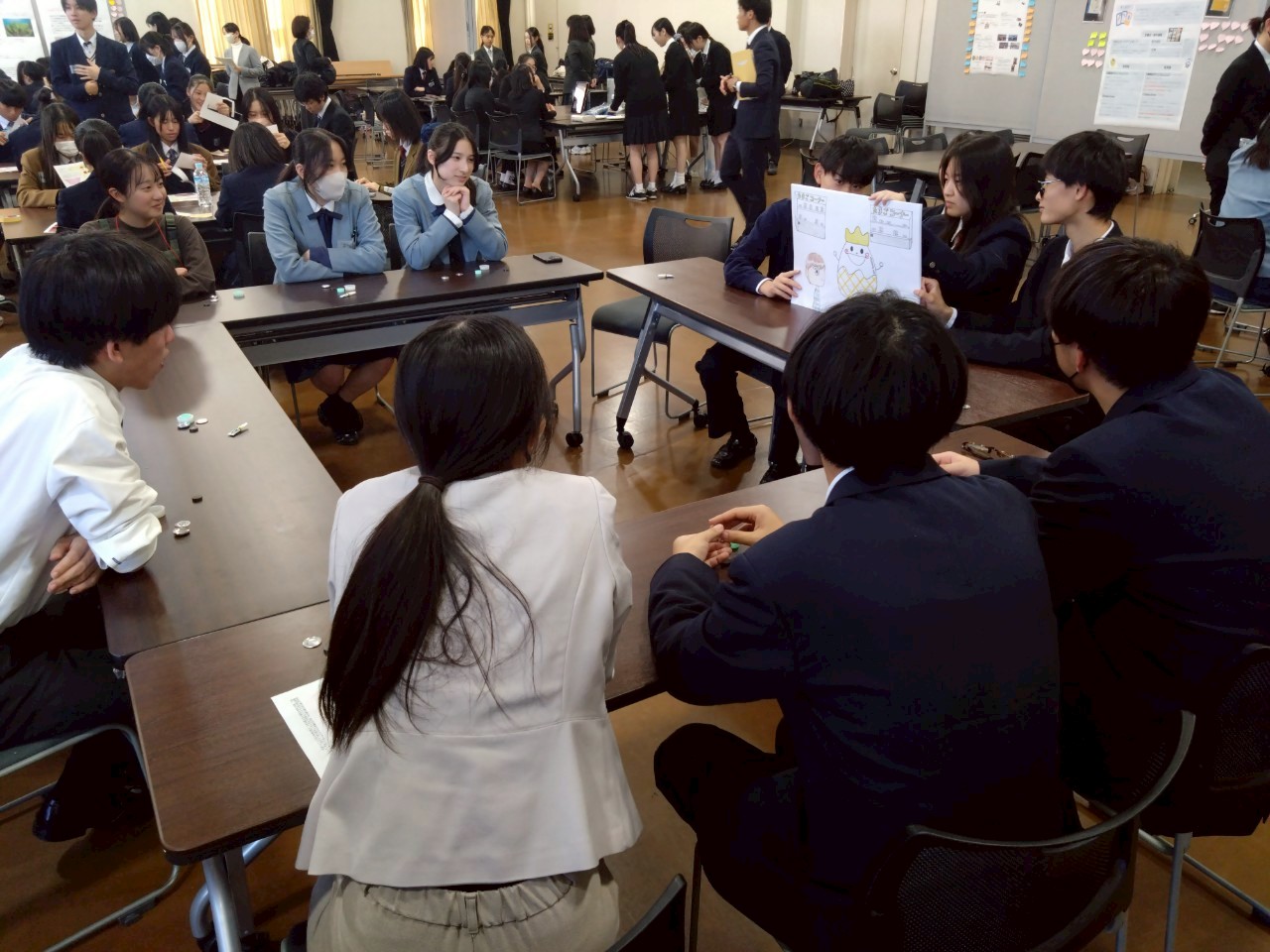 ポスターセッションでは、参加校の生徒たちがそれぞれの活動を紹介し合いました。互いに「良い」と思った点を付箋に書いて貼り付け、生徒同士が褒め合い、認め合う姿が見られました。