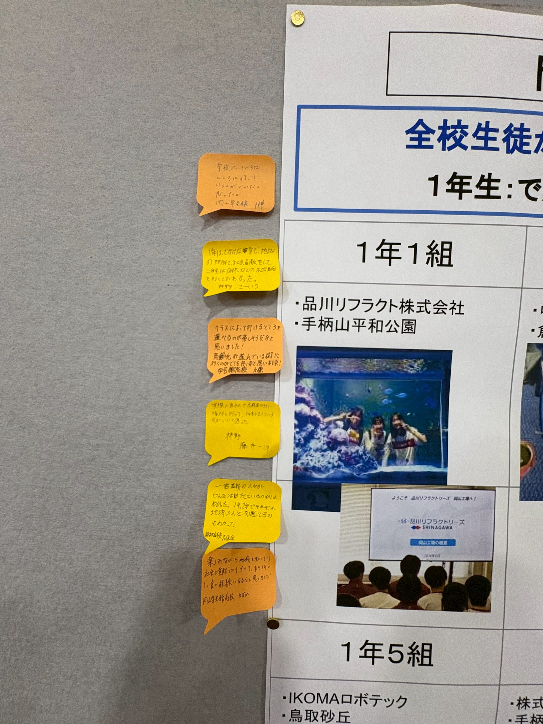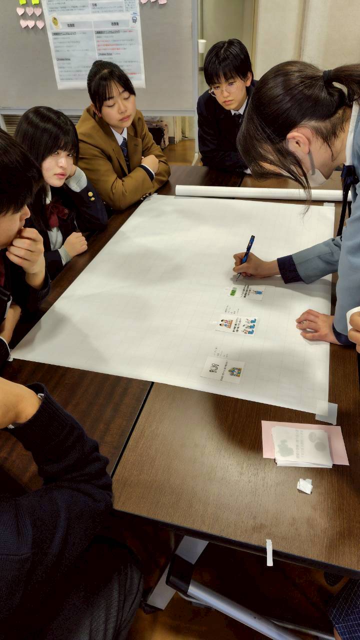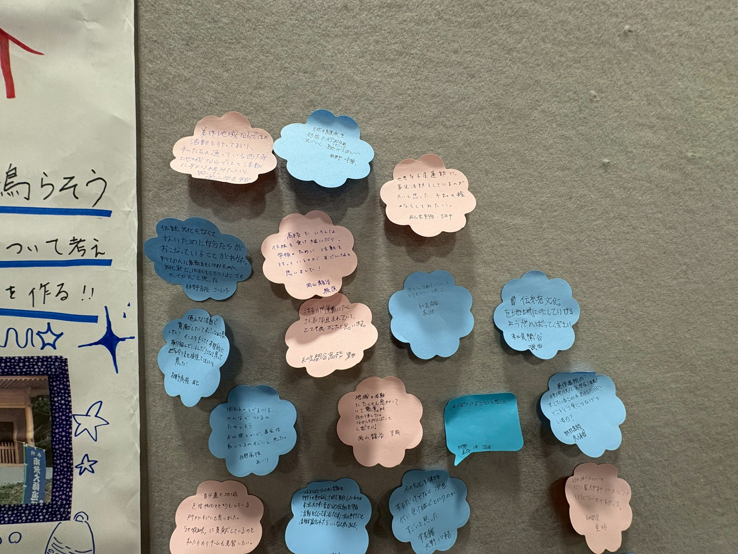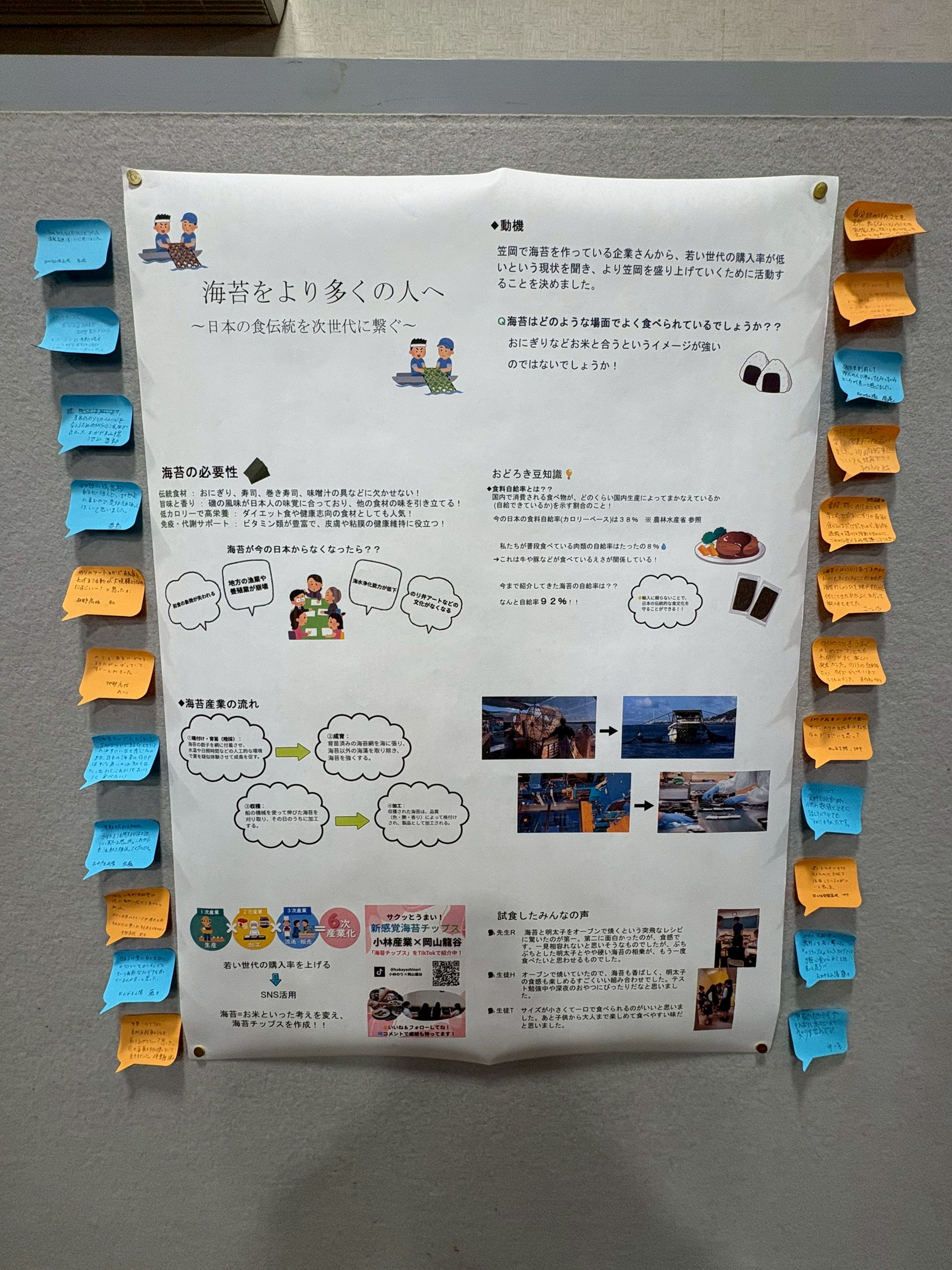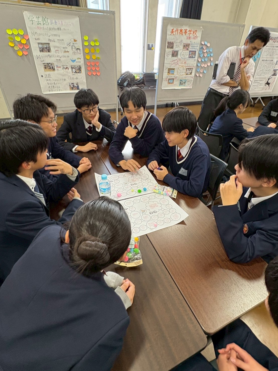 ポスターセッションでは、参加校の生徒たちがそれぞれの活動を紹介し合いました。互いに「良い」と思った点を付箋に書いて貼り付け、生徒同士が褒め合い、認め合う姿が見られました。