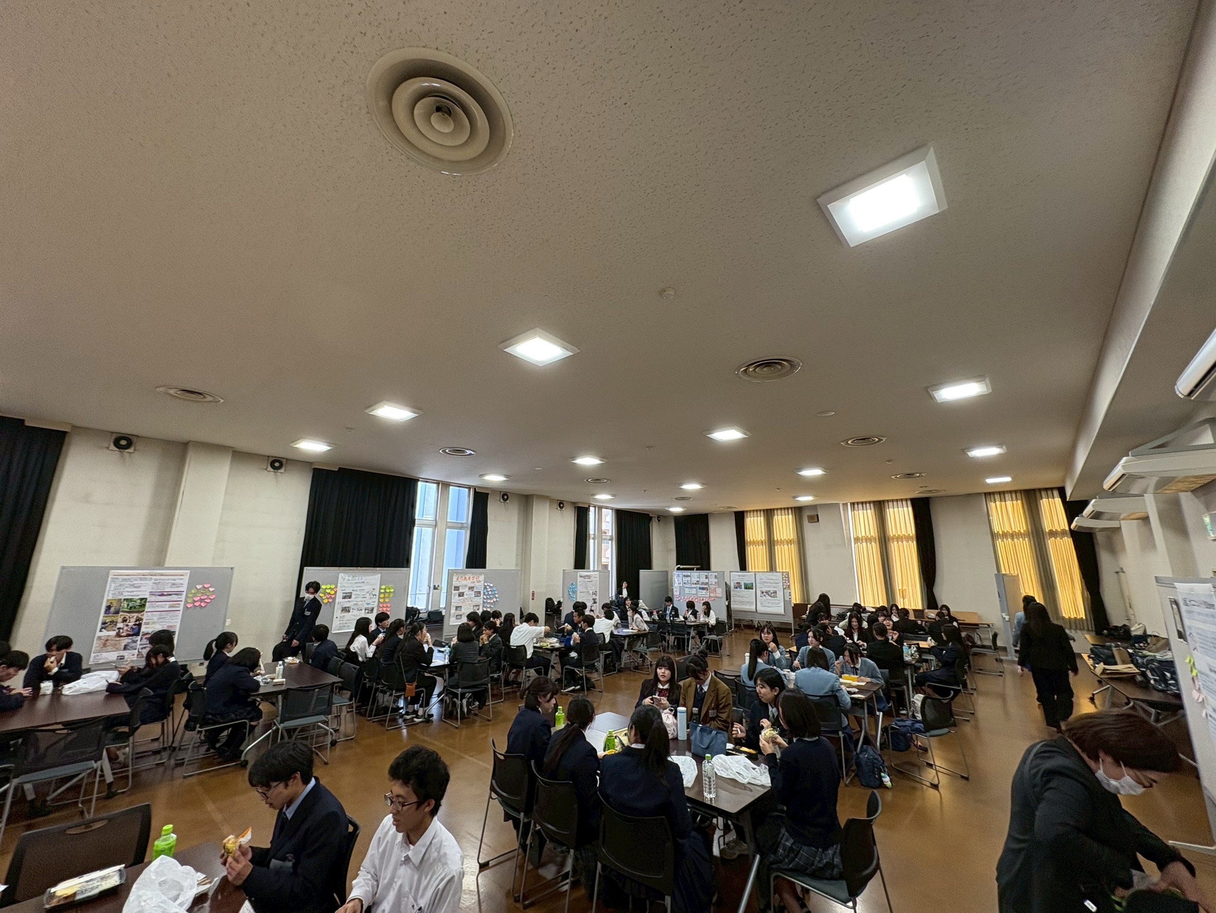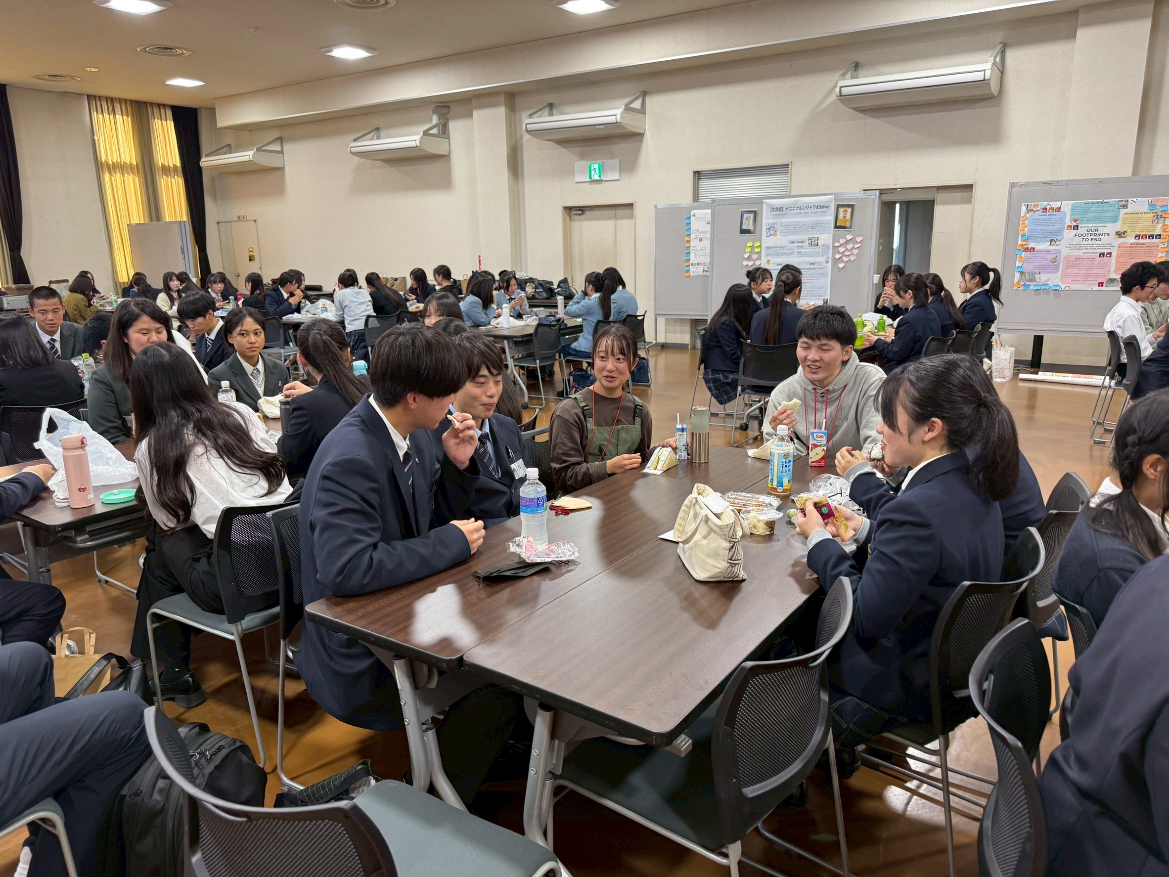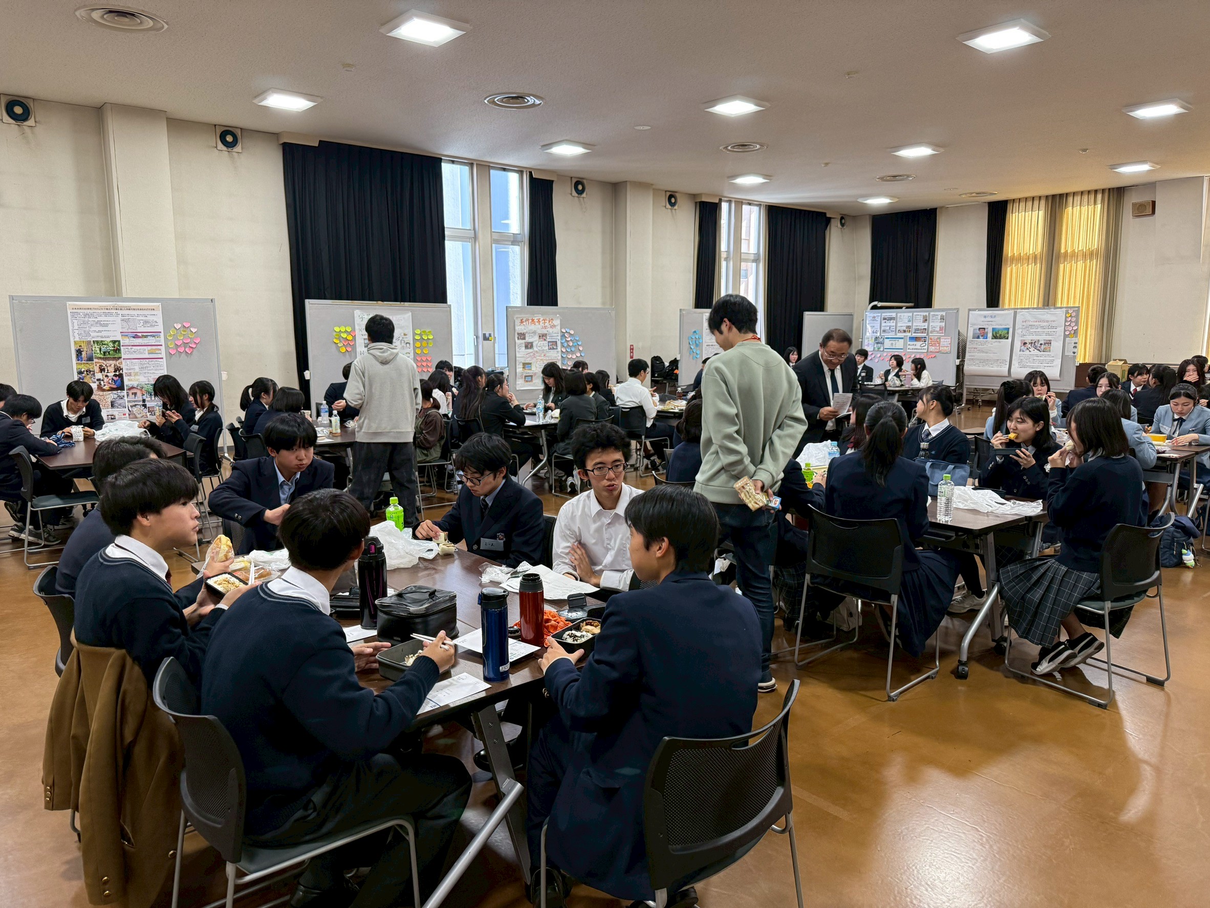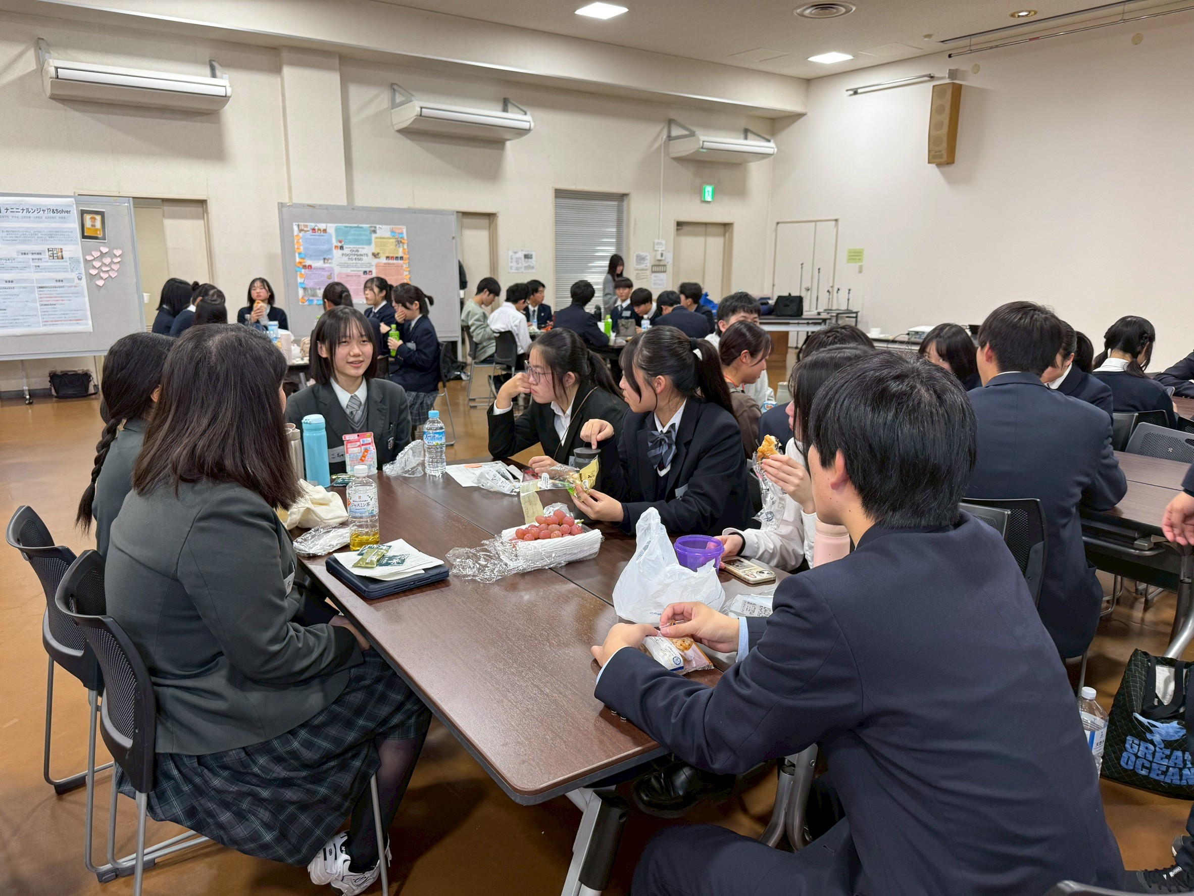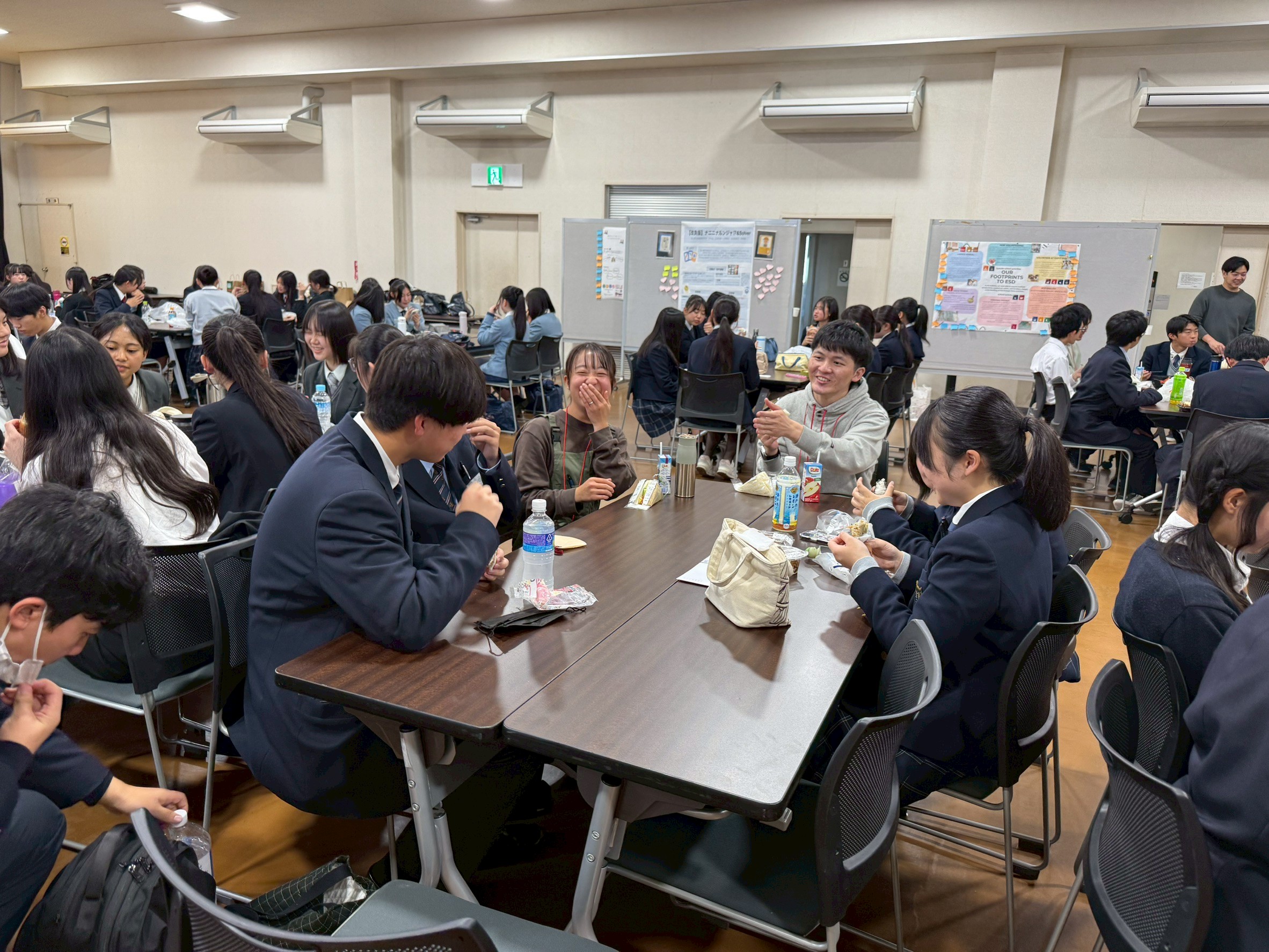 お昼休憩では、普段なかなか接点のない他校の生徒同士で、ランチを囲んで交流しました! 学生スタッフもその輪に加わり、会話を盛り上げたりしながら、一緒に楽しいひとときを過ごしました!