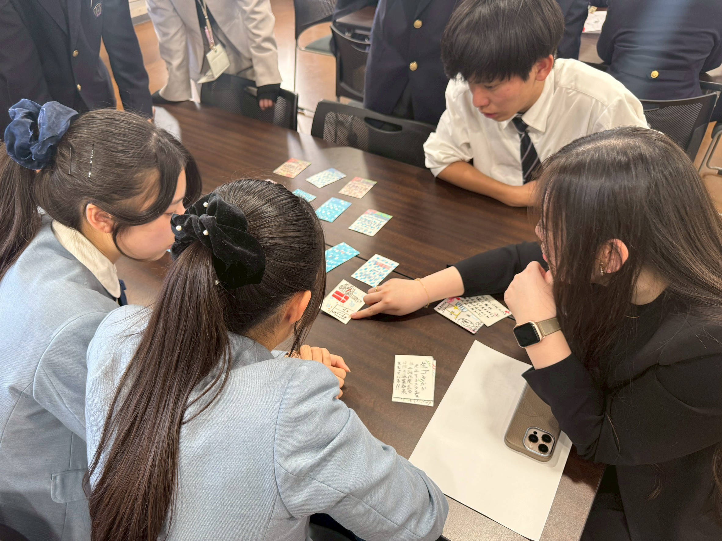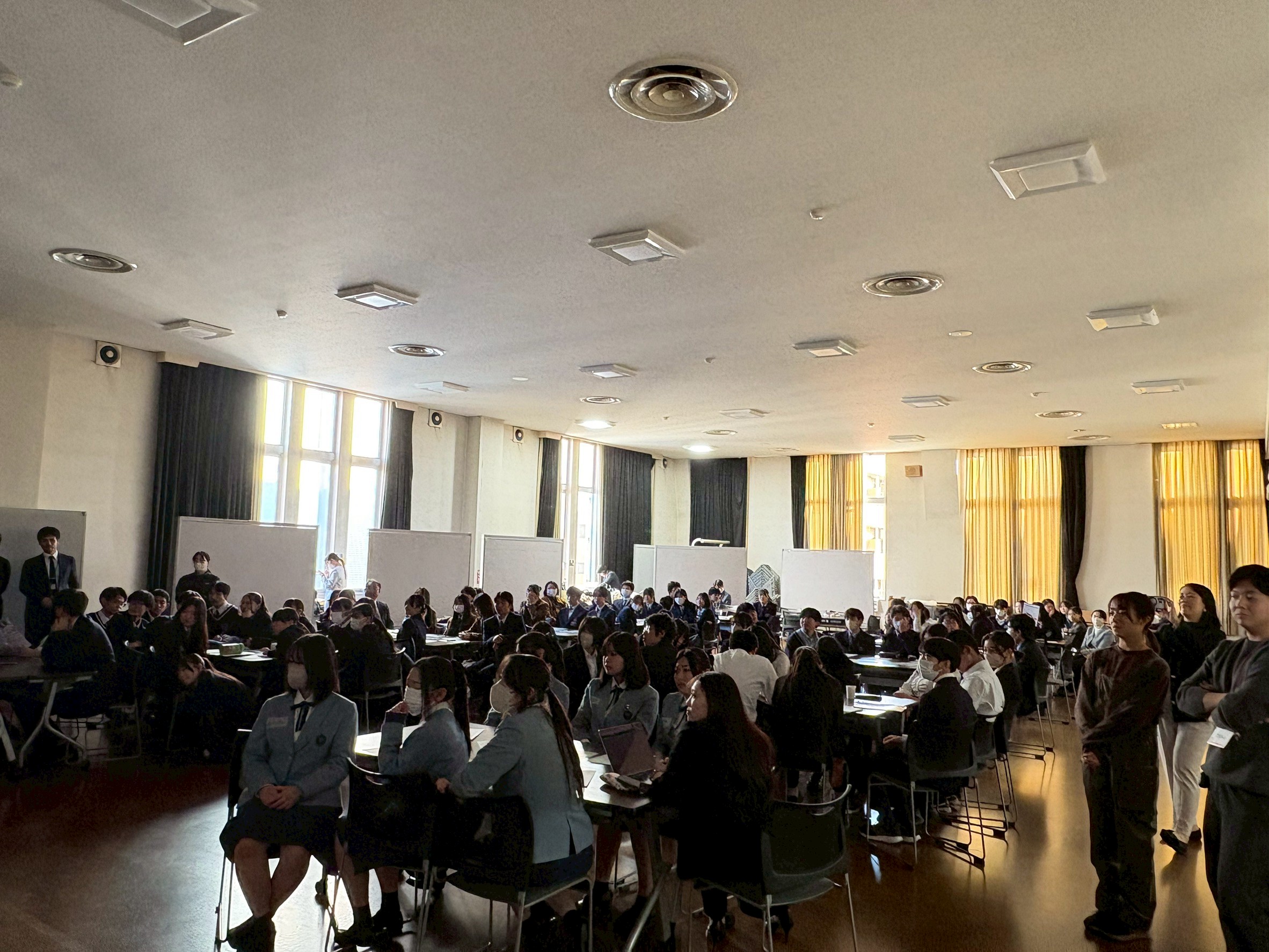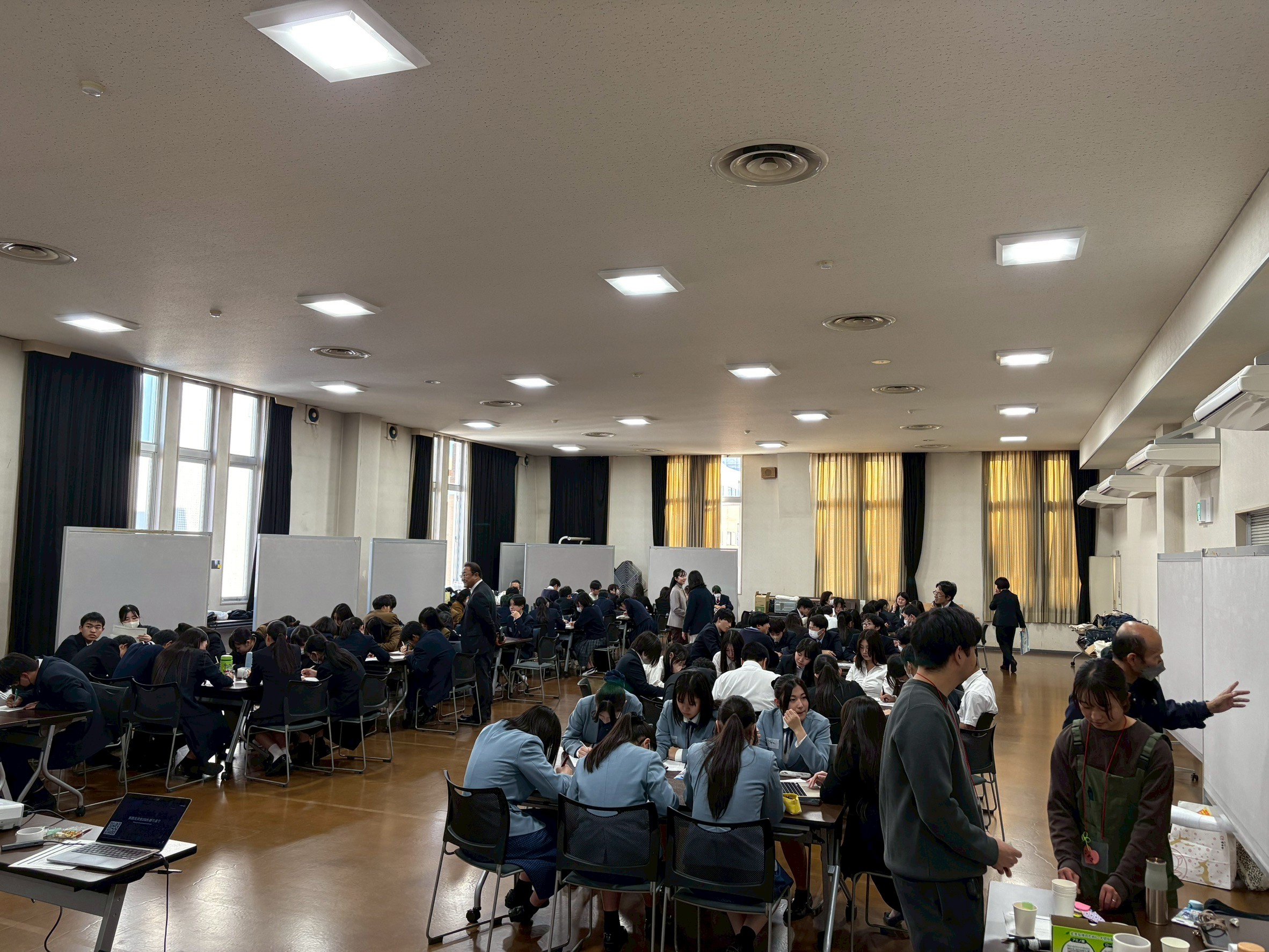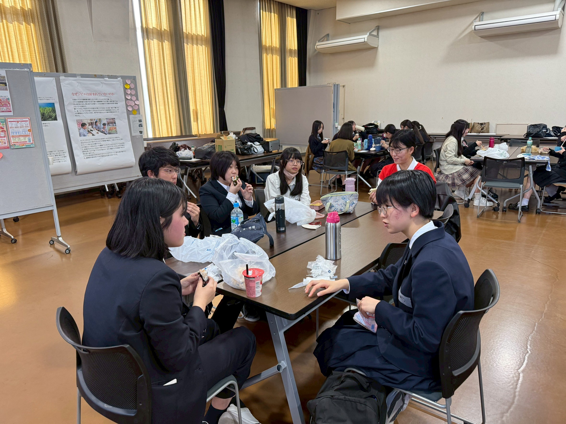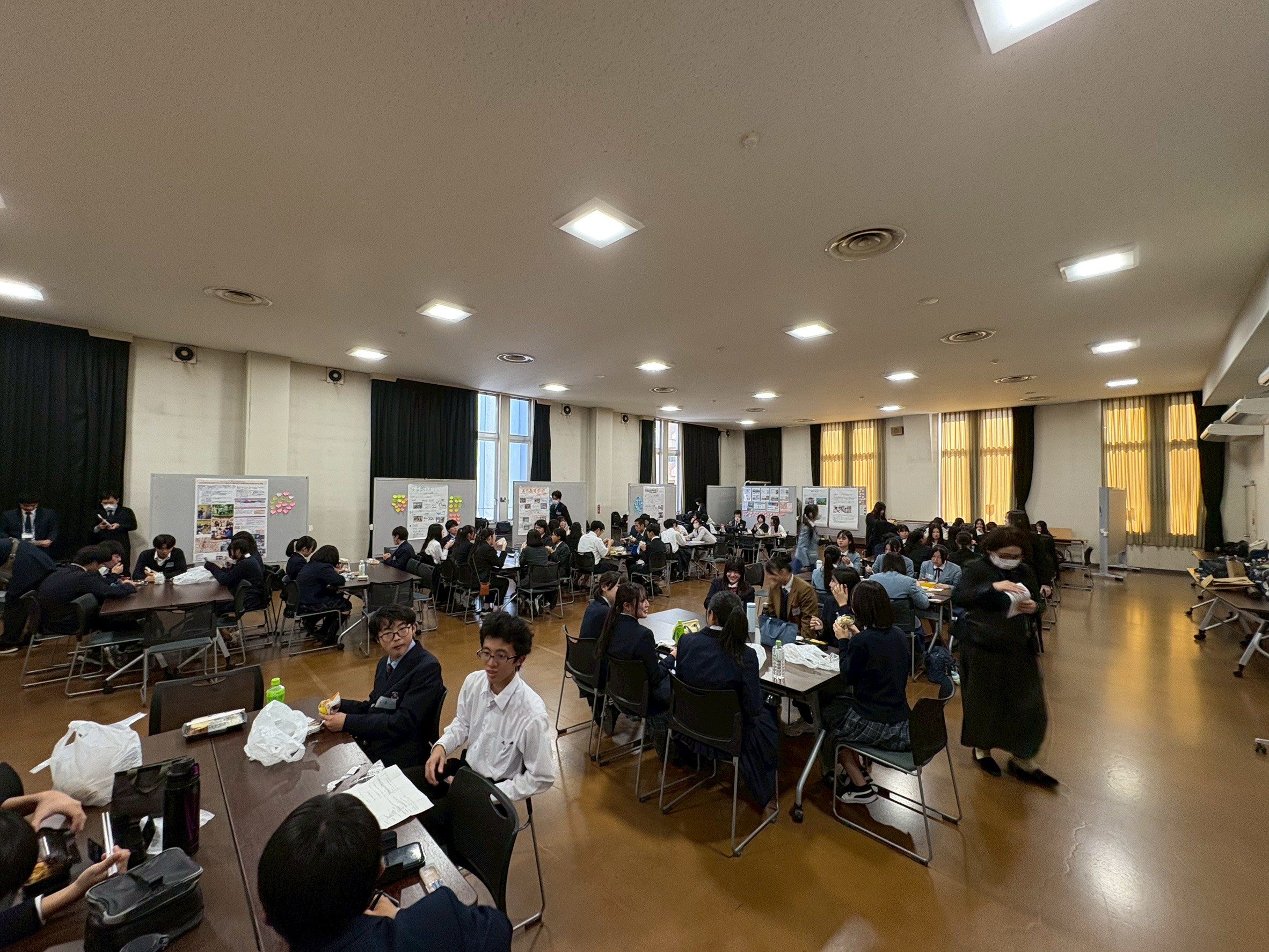 お昼休憩では、普段なかなか接点のない他校の生徒同士で、ランチを囲んで交流しました! 学生スタッフもその輪に加わり、会話を盛り上げたりしながら、一緒に楽しいひとときを過ごしました!