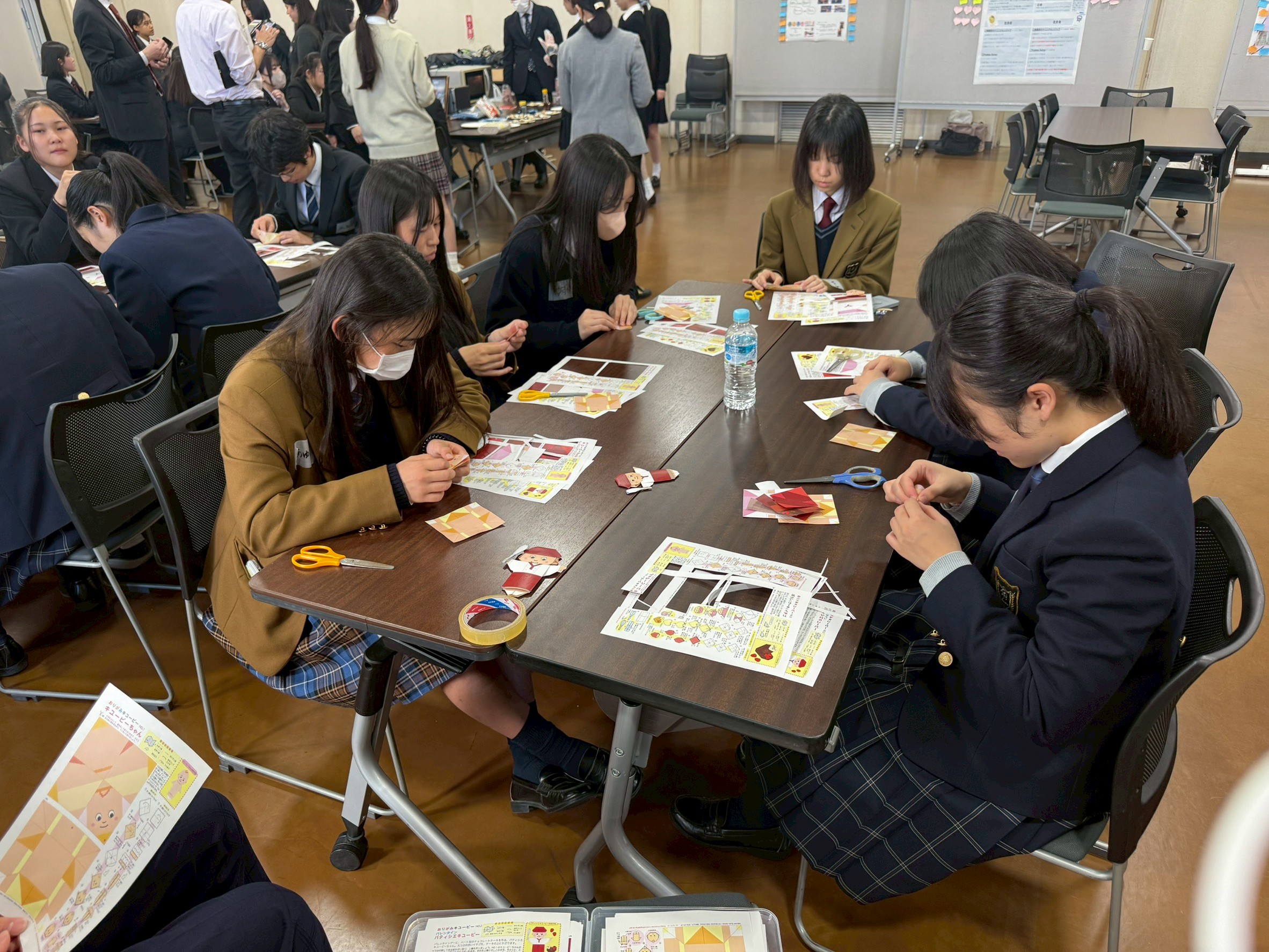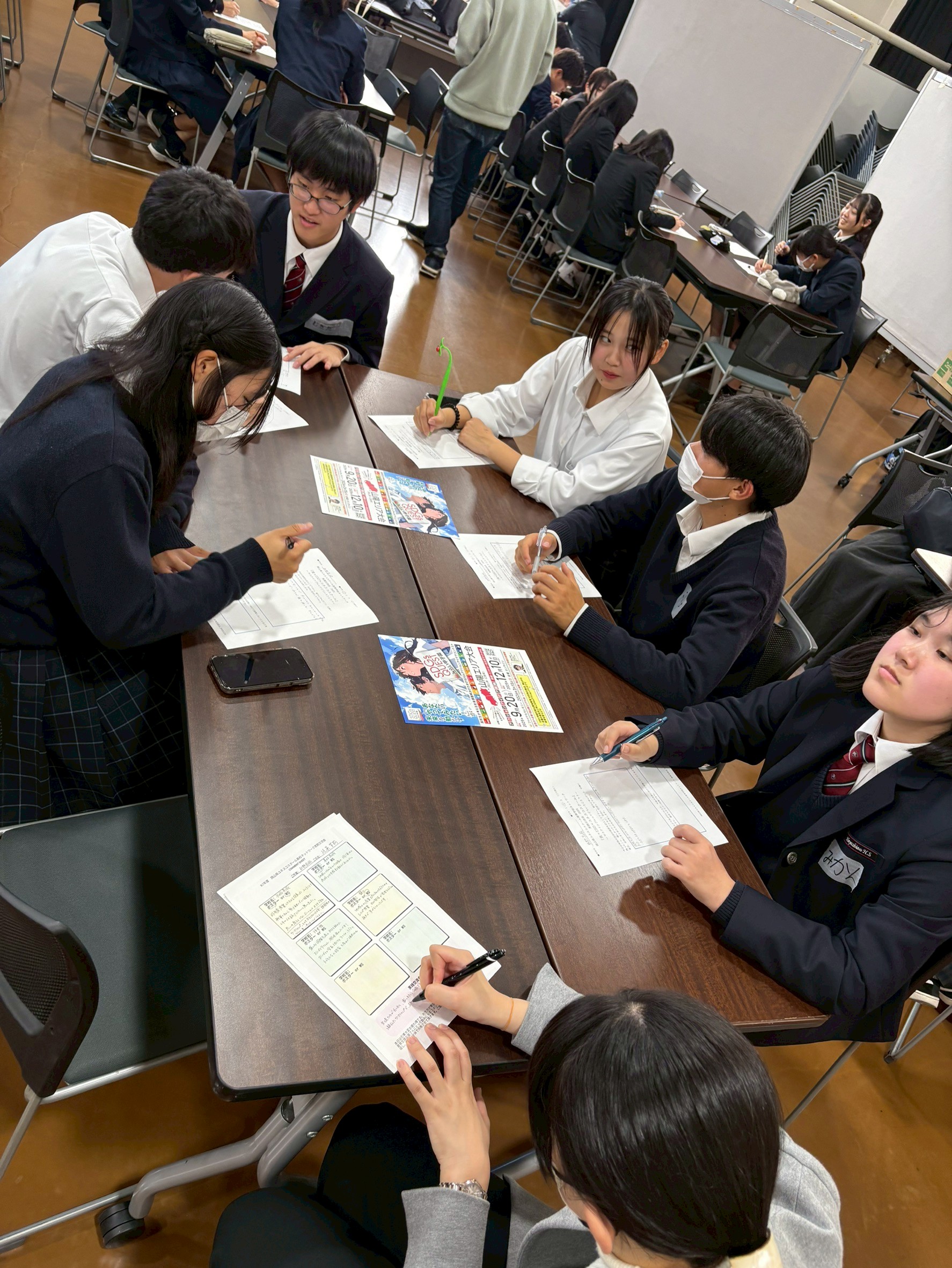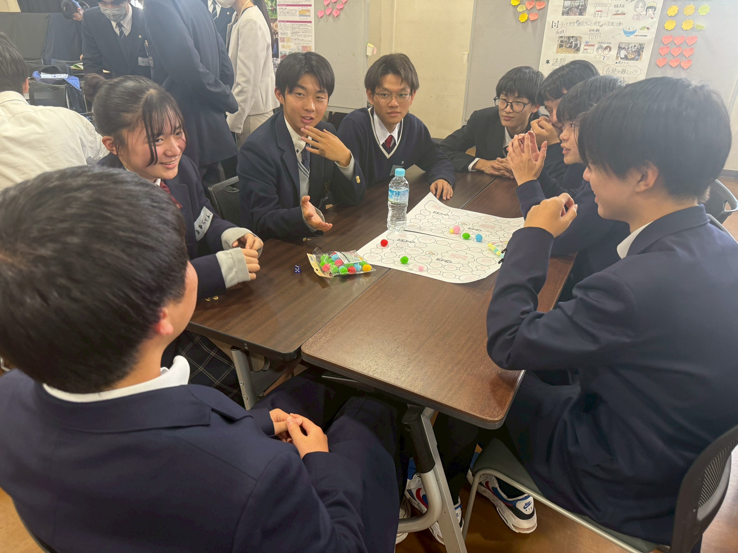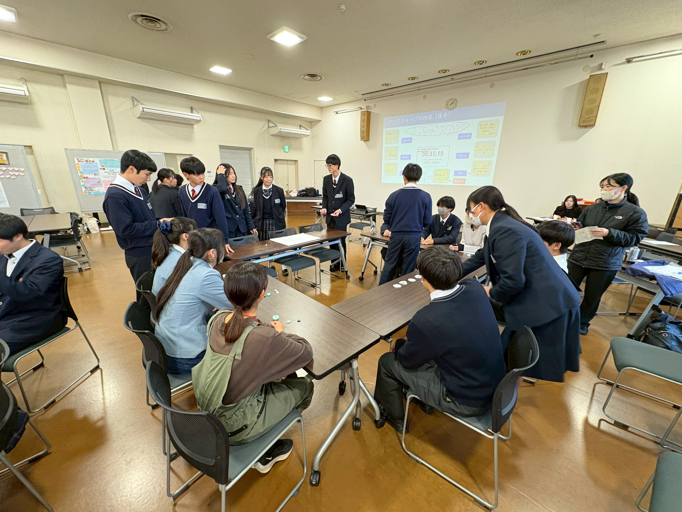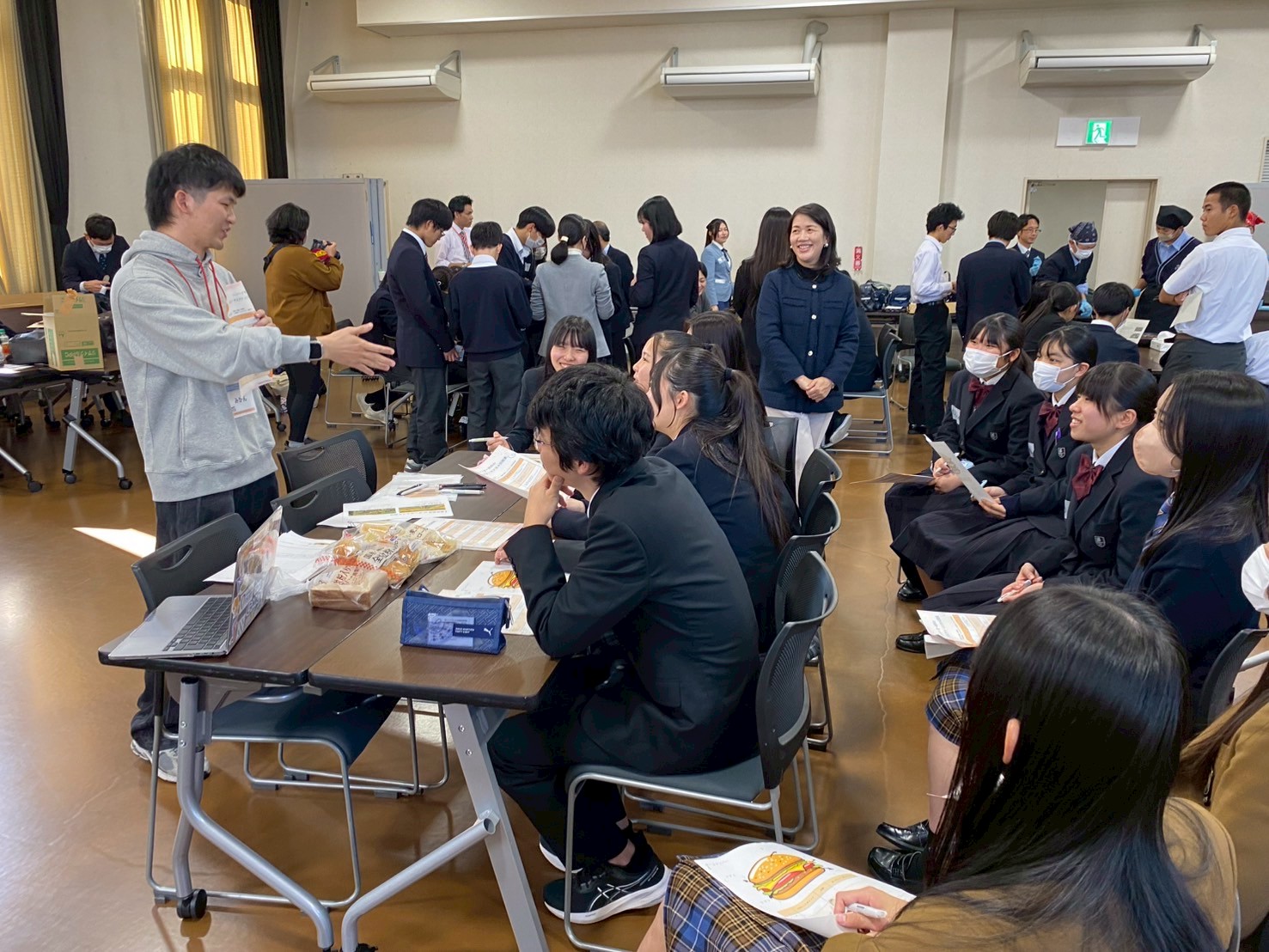 お昼休憩では、普段なかなか接点のない他校の生徒同士で、ランチを囲んで交流しました! 学生スタッフもその輪に加わり、会話を盛り上げたりしながら、一緒に楽しいひとときを過ごしました!