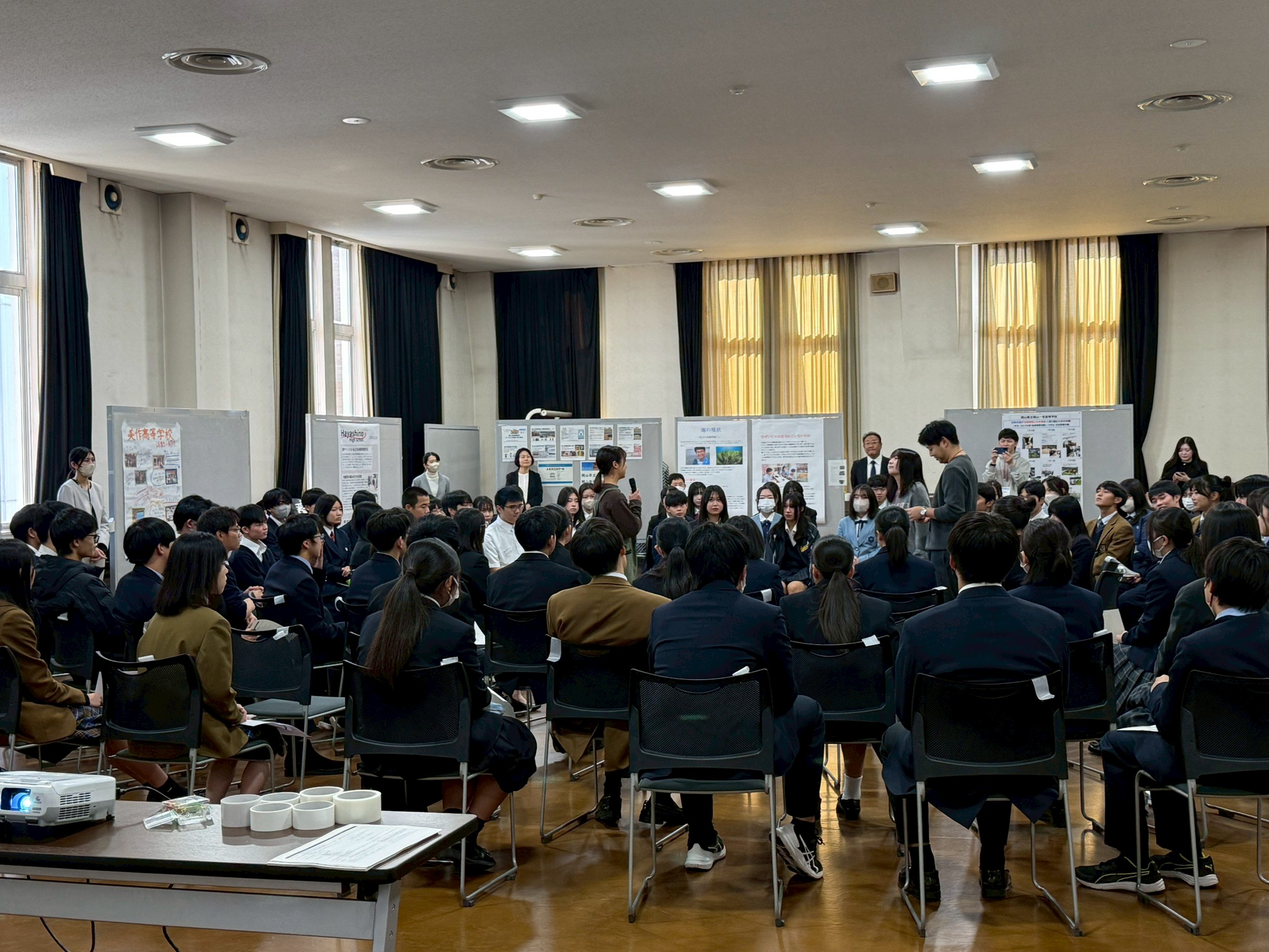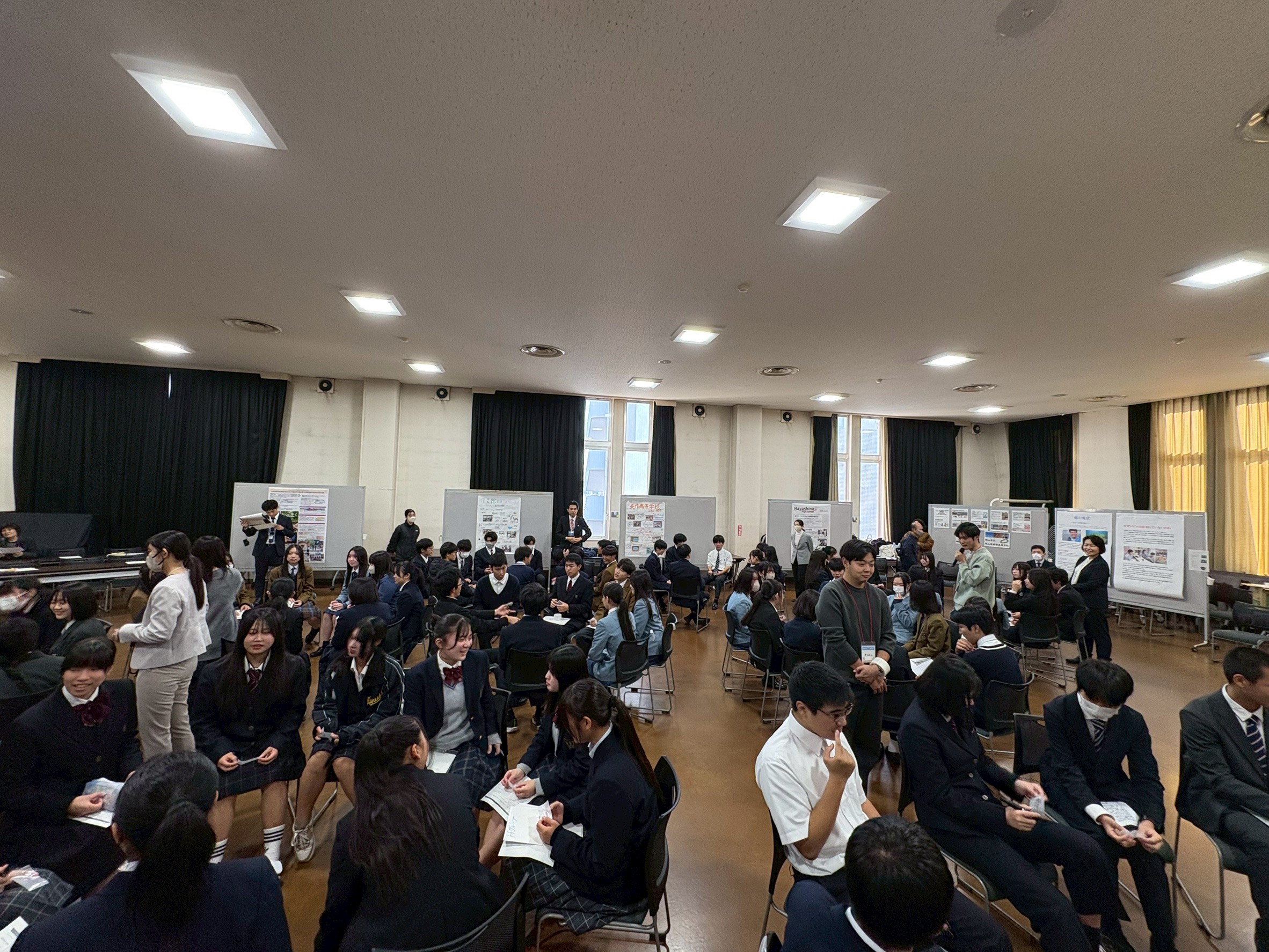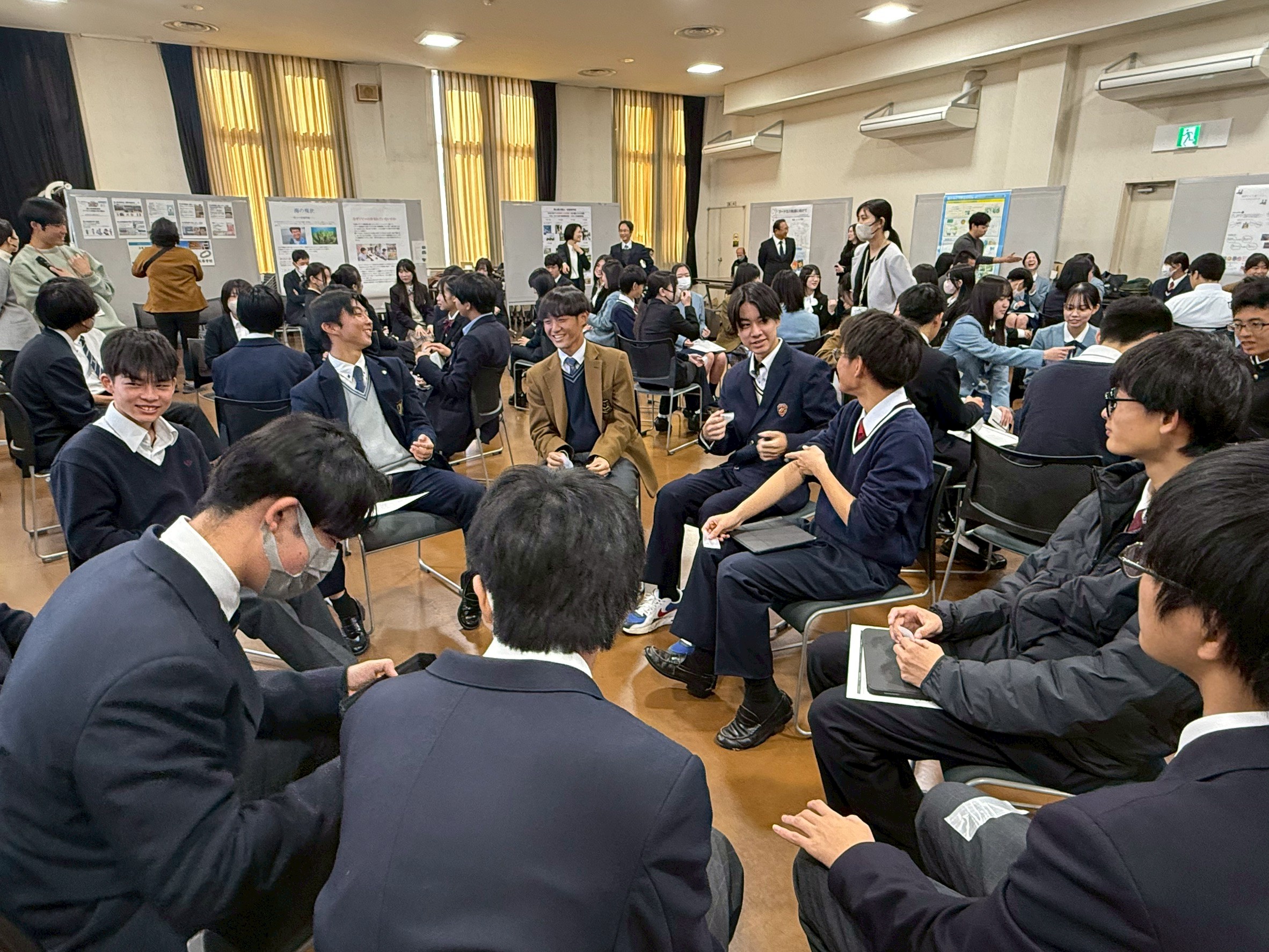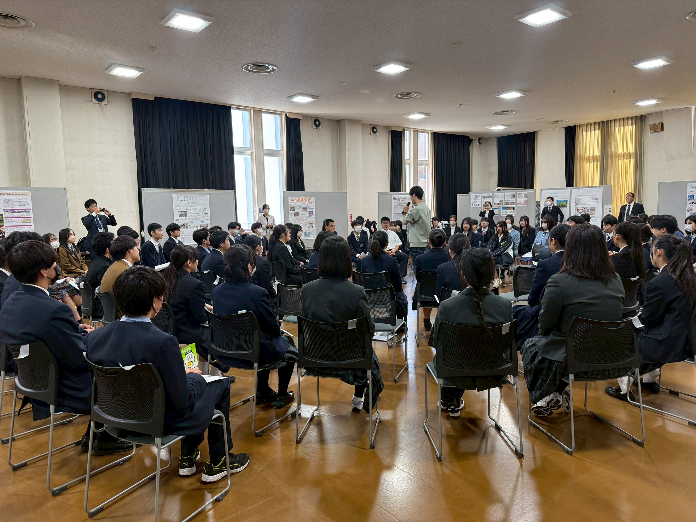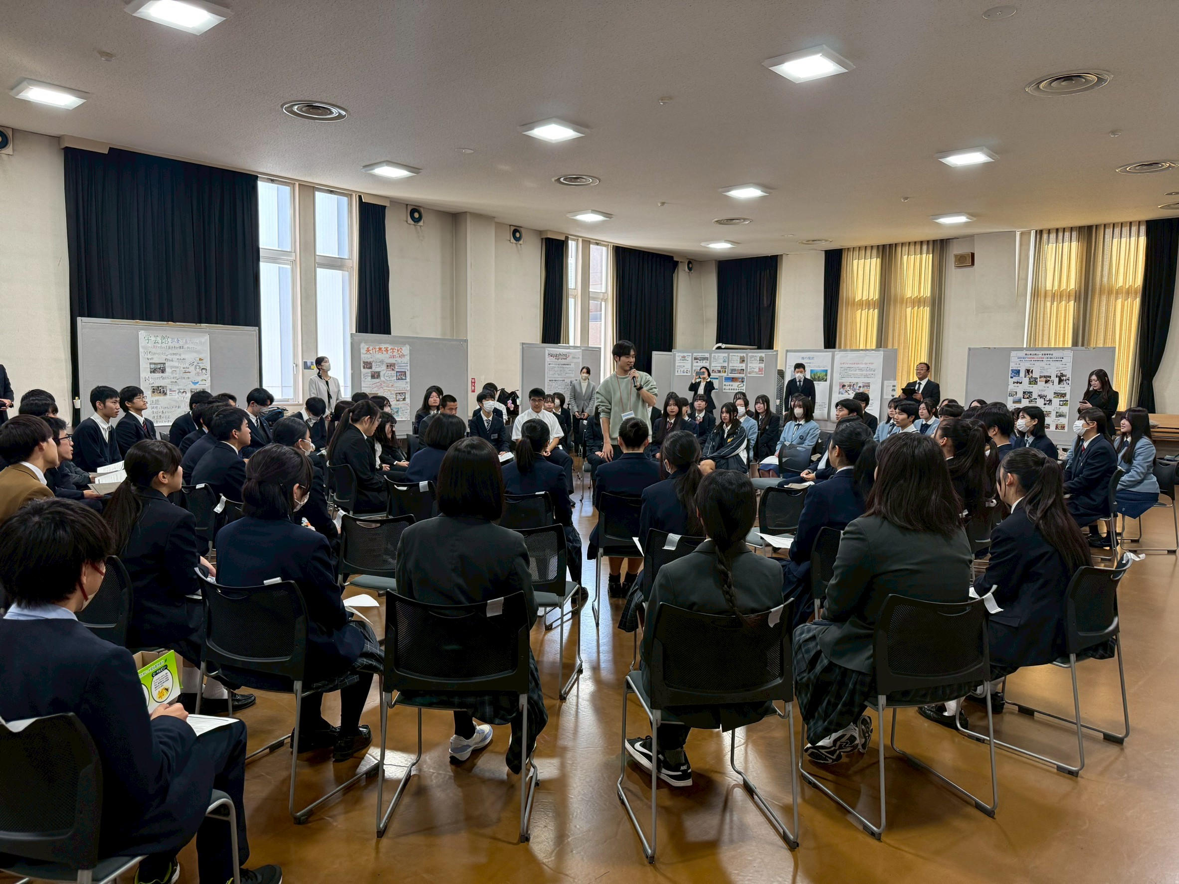 ポスターセッションでは、参加校の生徒たちがそれぞれの活動を紹介し合いました。互いに「良い」と思った点を付箋に書いて貼り付け、生徒同士が褒め合い、認め合う姿が見られました。