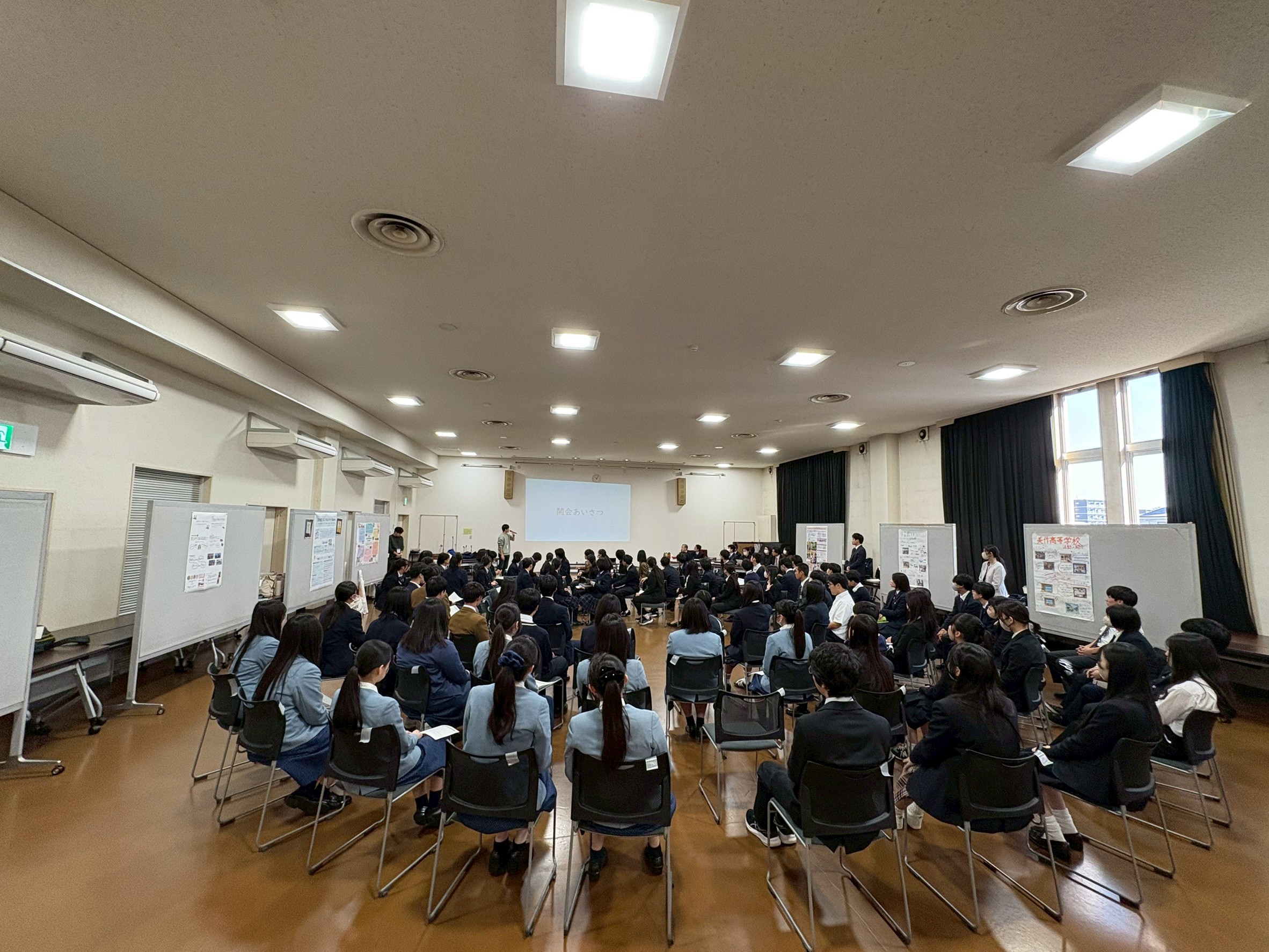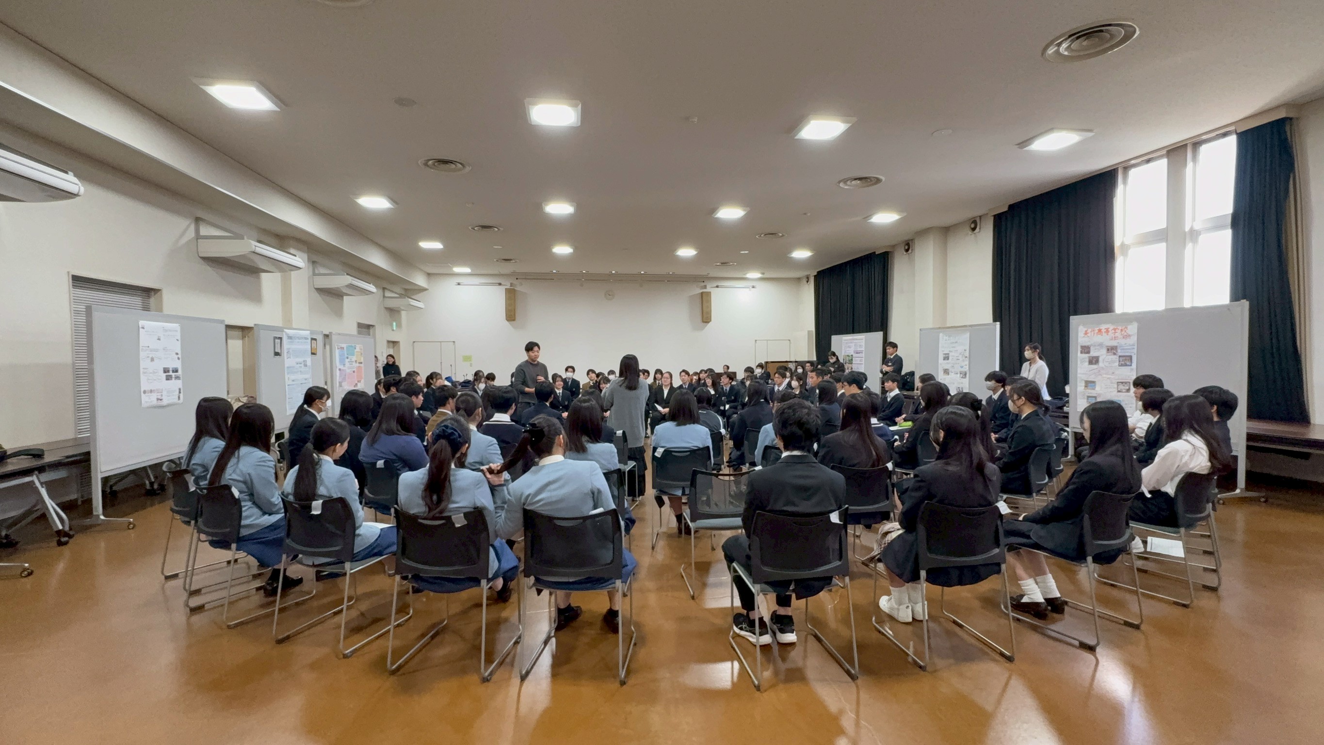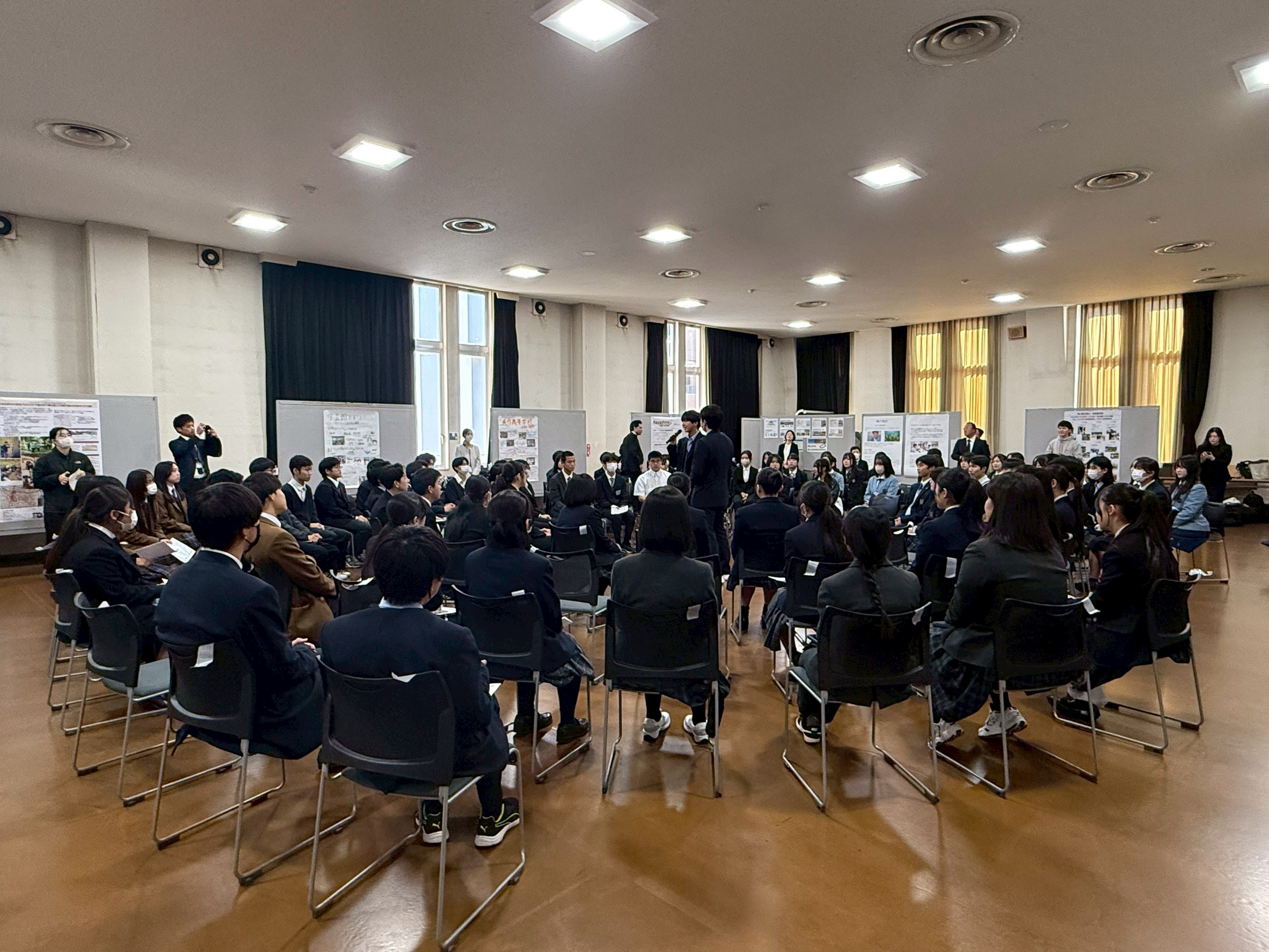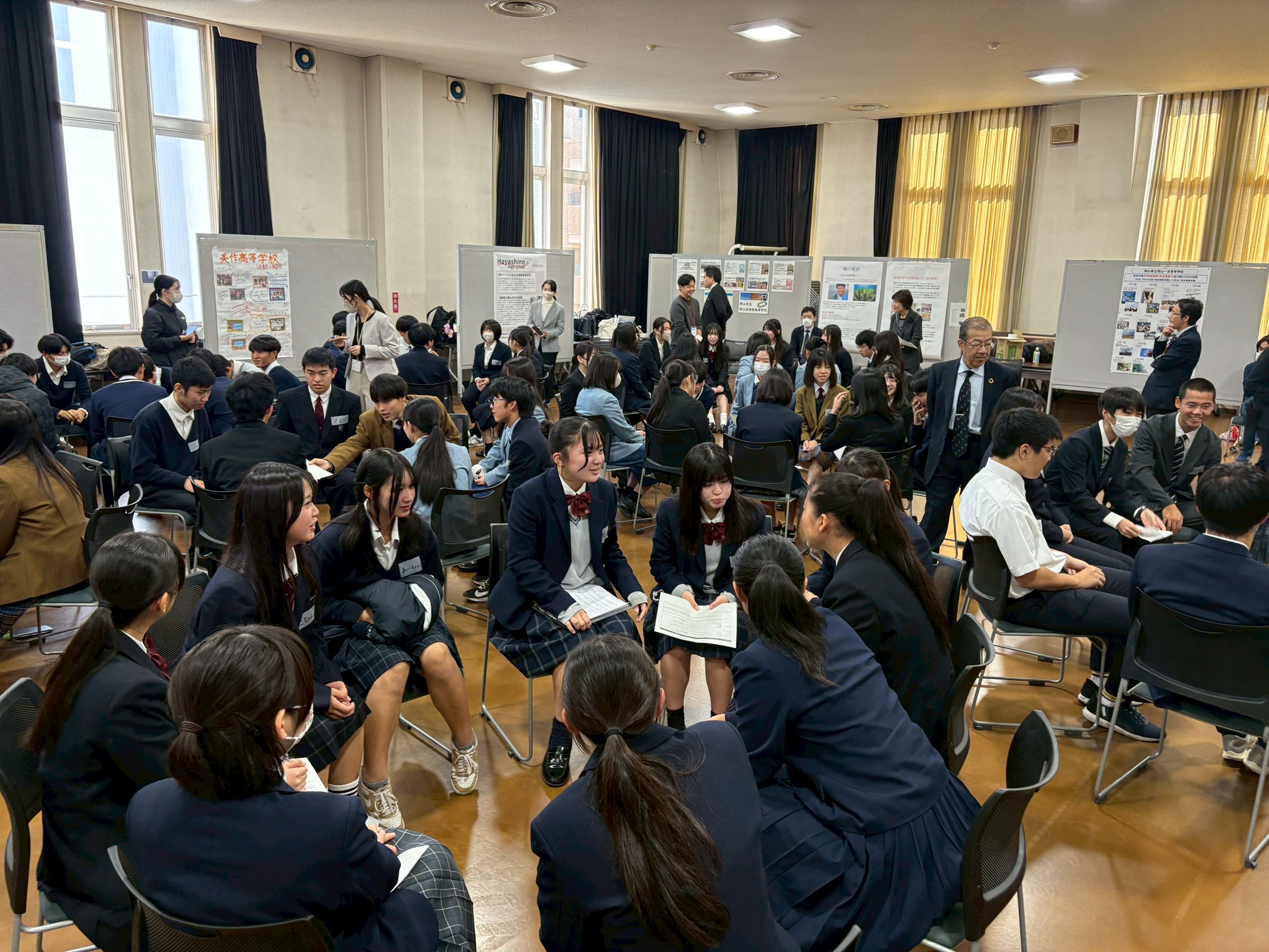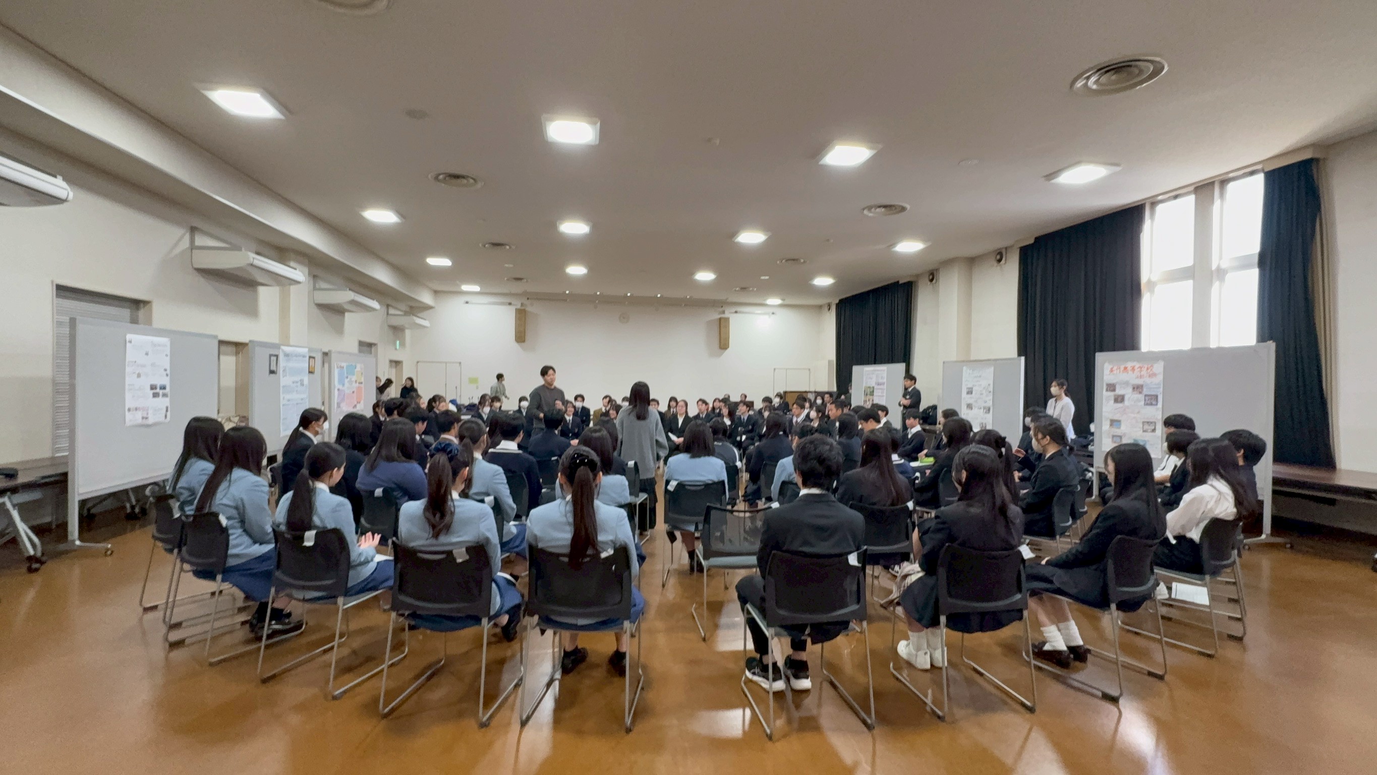 ポスターセッションでは、参加校の生徒たちがそれぞれの活動を紹介し合いました。互いに「良い」と思った点を付箋に書いて貼り付け、生徒同士が褒め合い、認め合う姿が見られました。