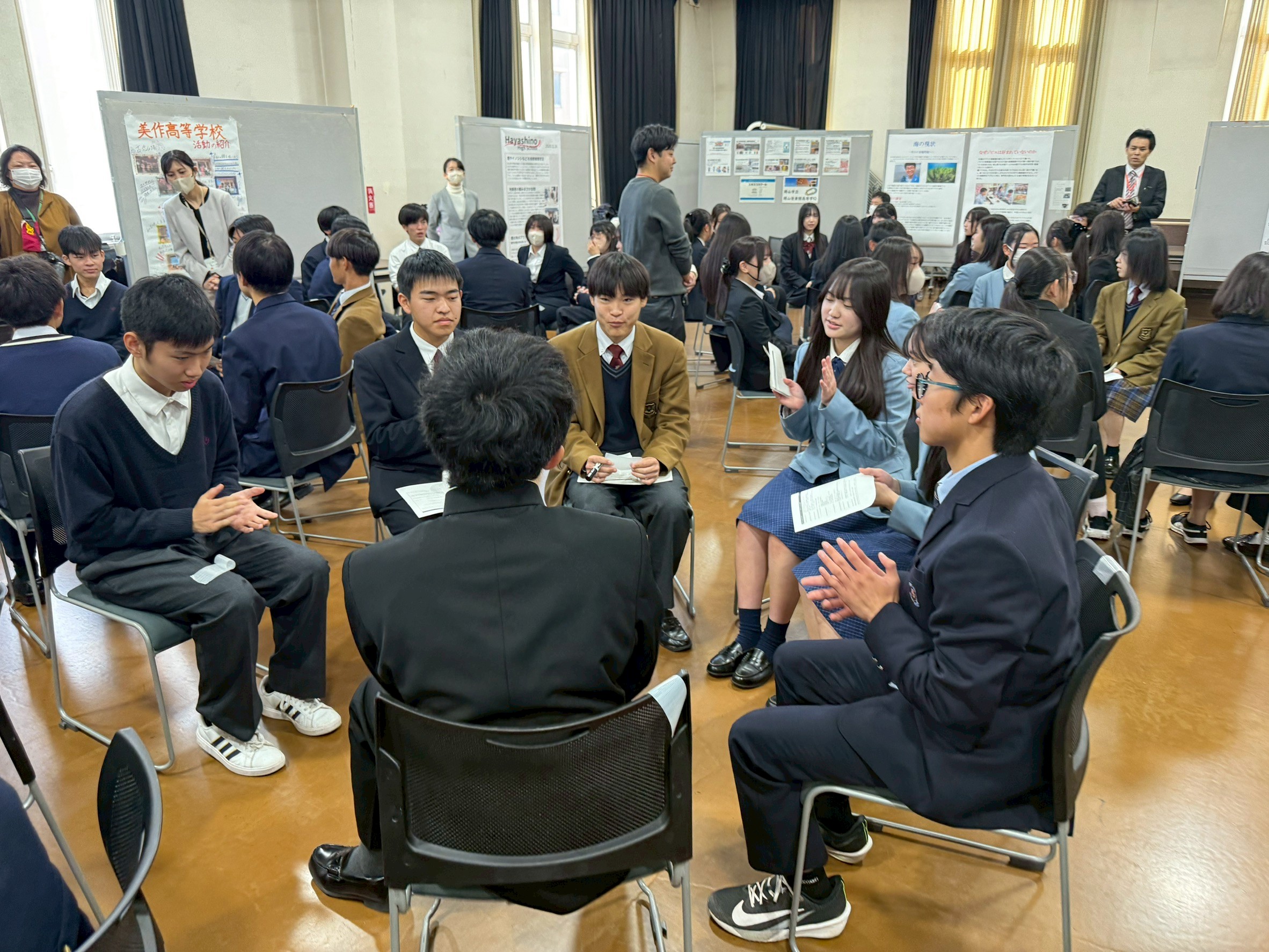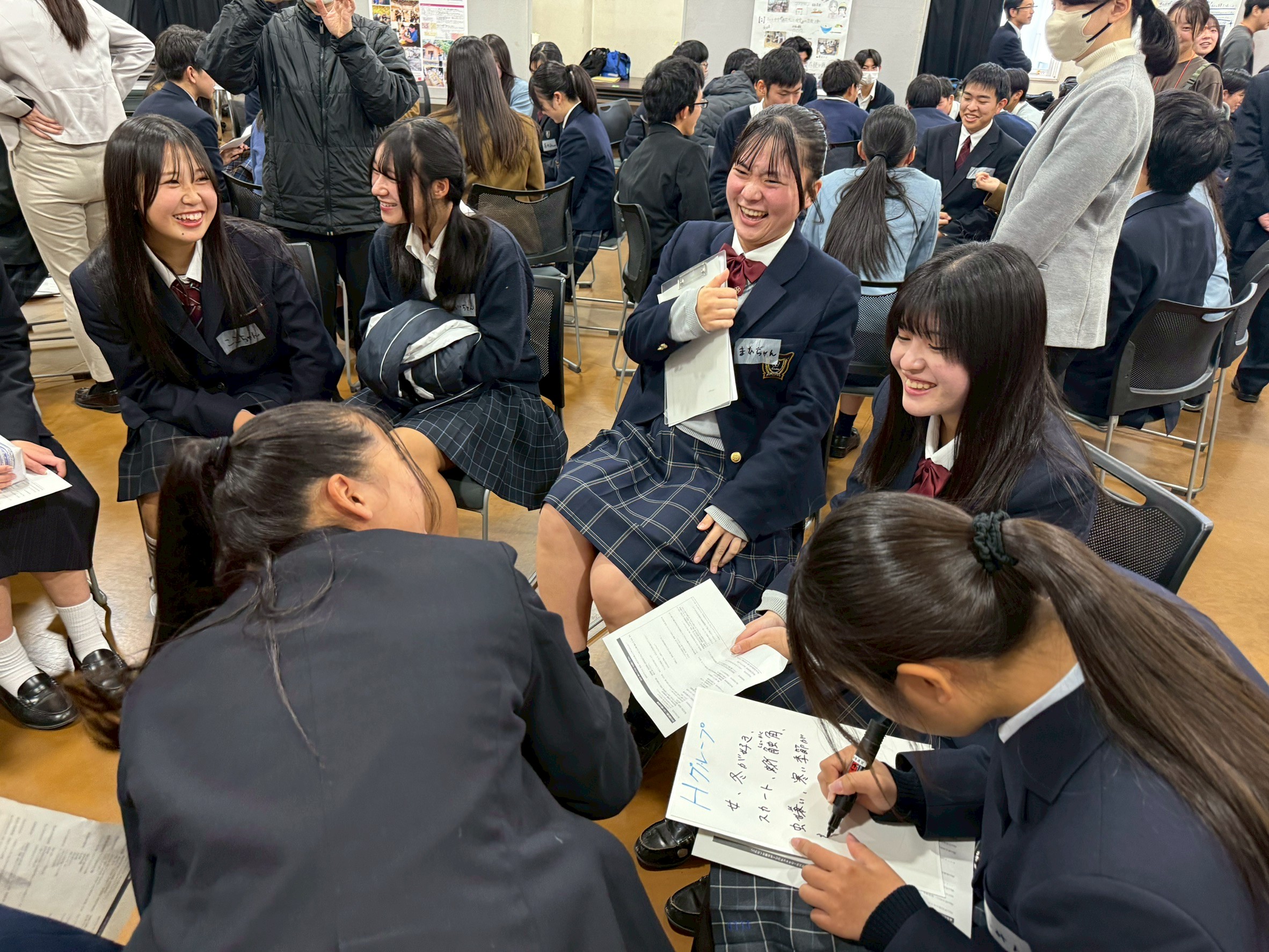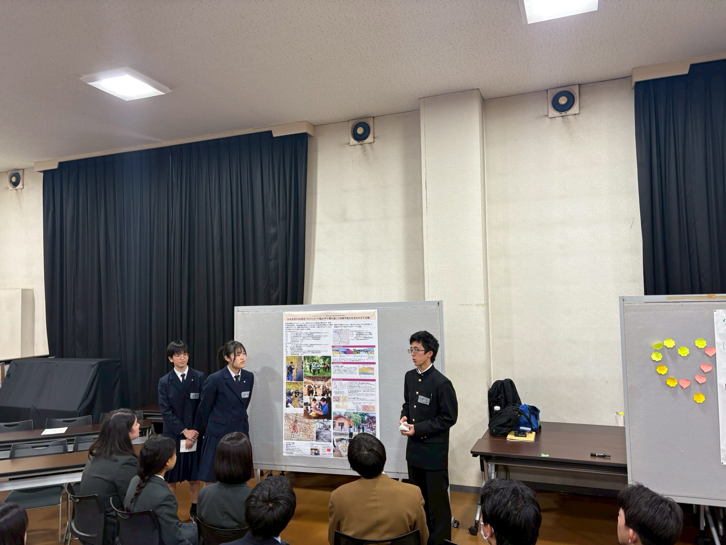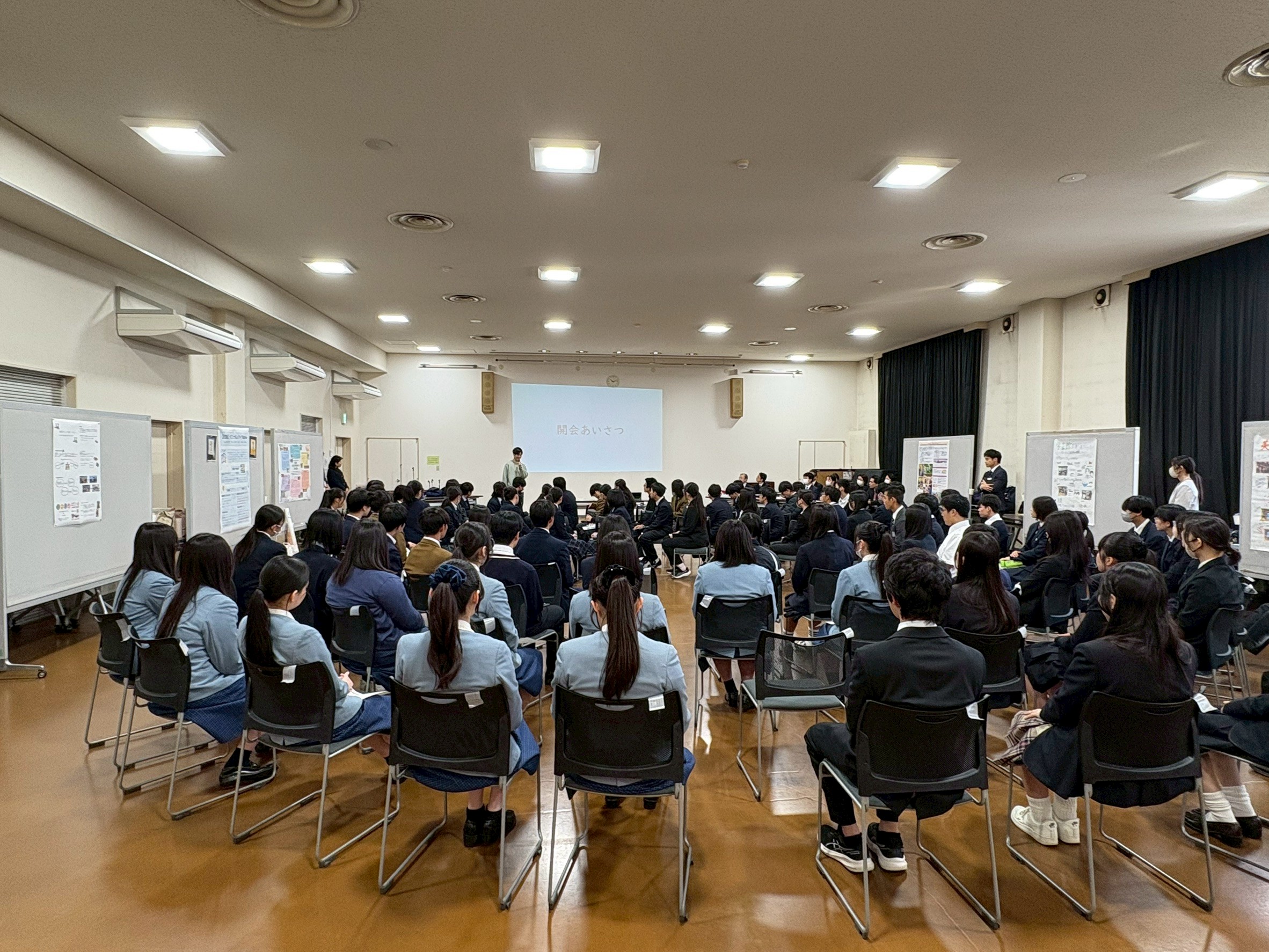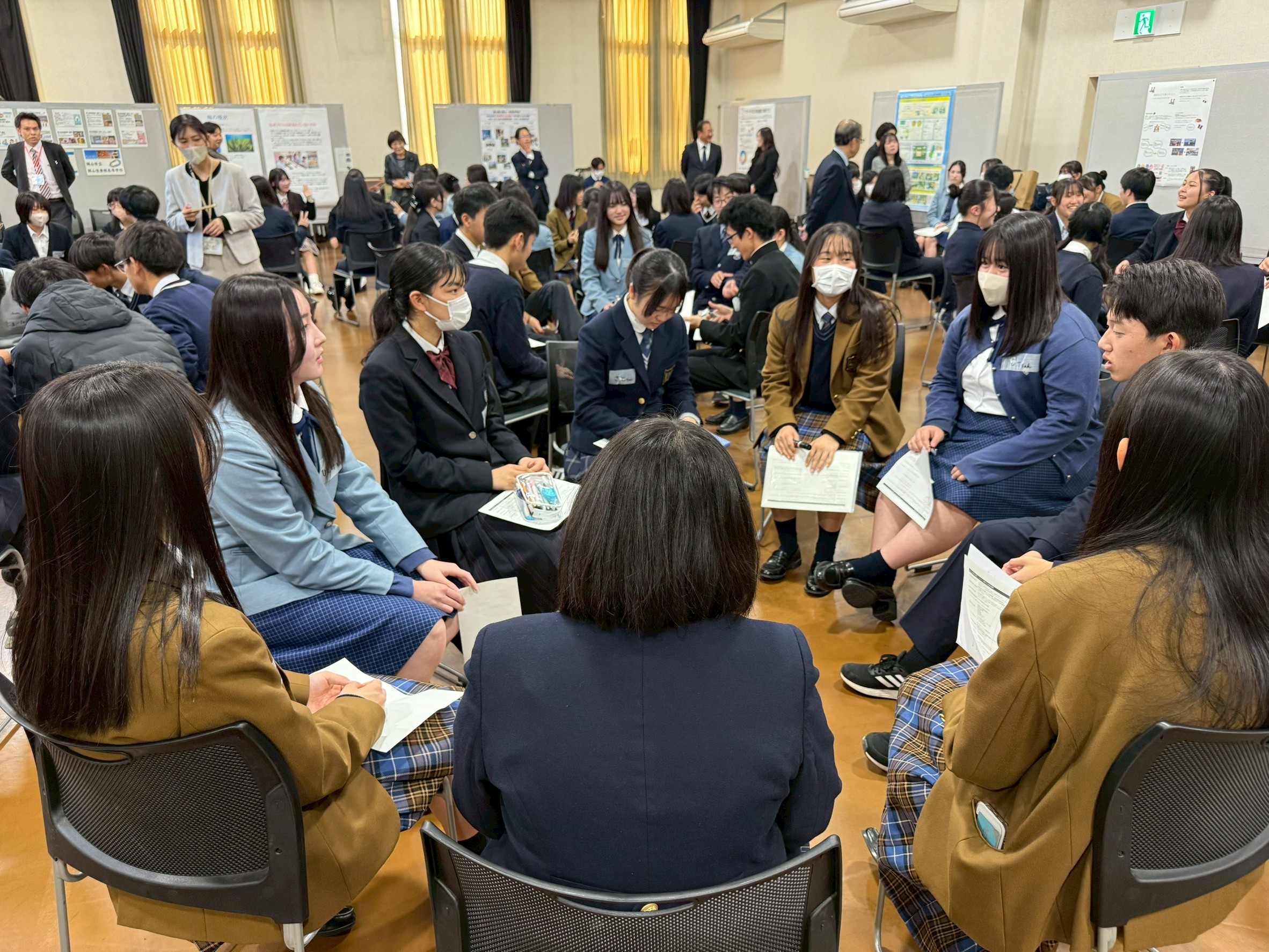 ポスターセッションでは、参加校の生徒たちがそれぞれの活動を紹介し合いました。互いに「良い」と思った点を付箋に書いて貼り付け、生徒同士が褒め合い、認め合う姿が見られました。