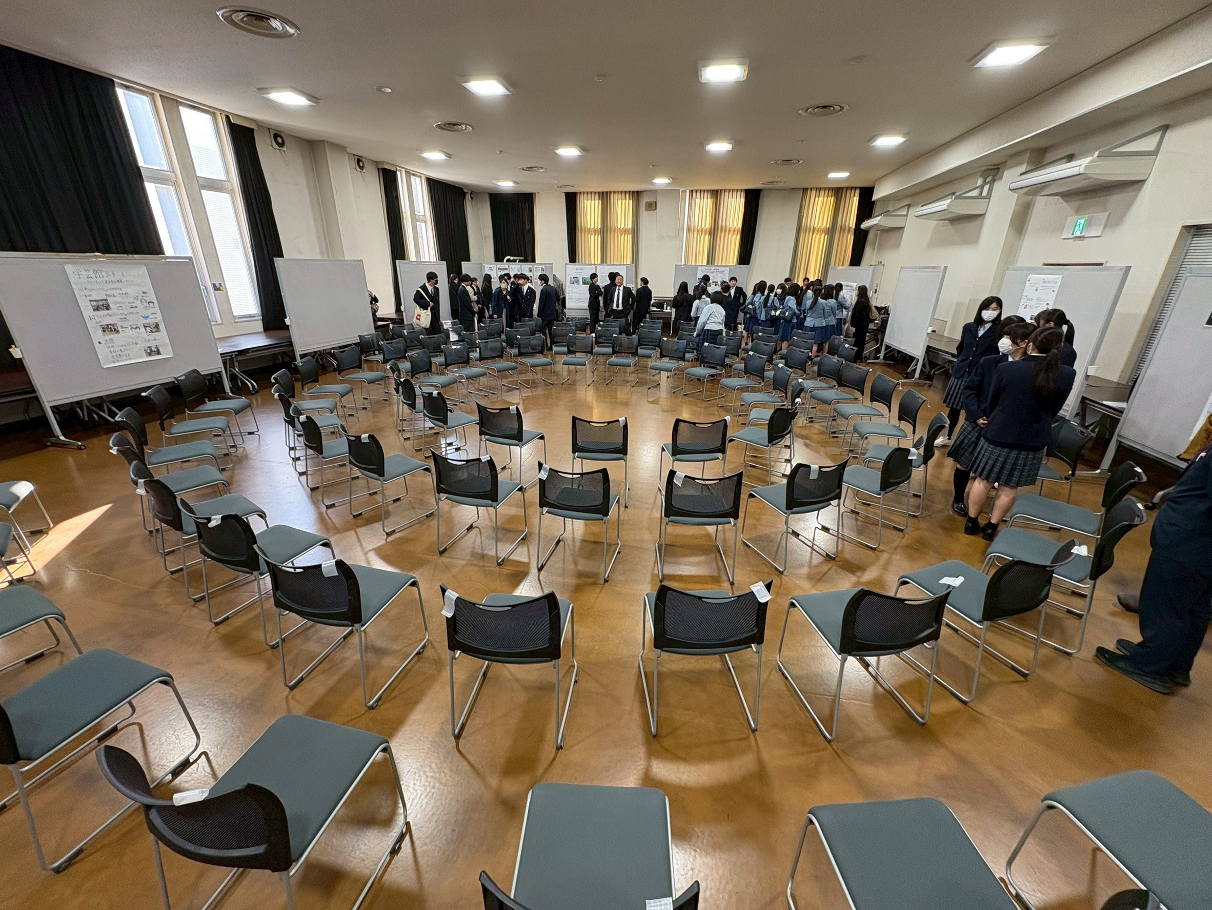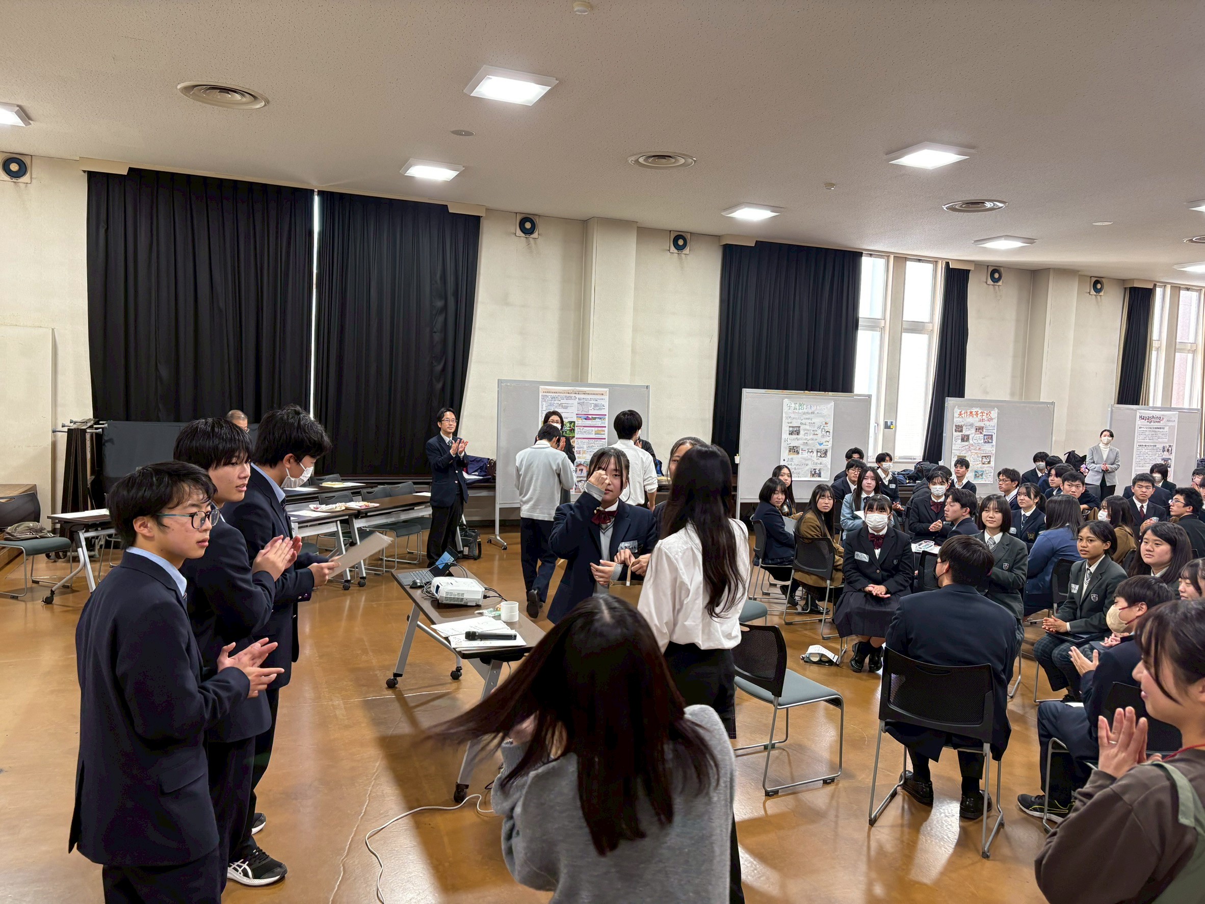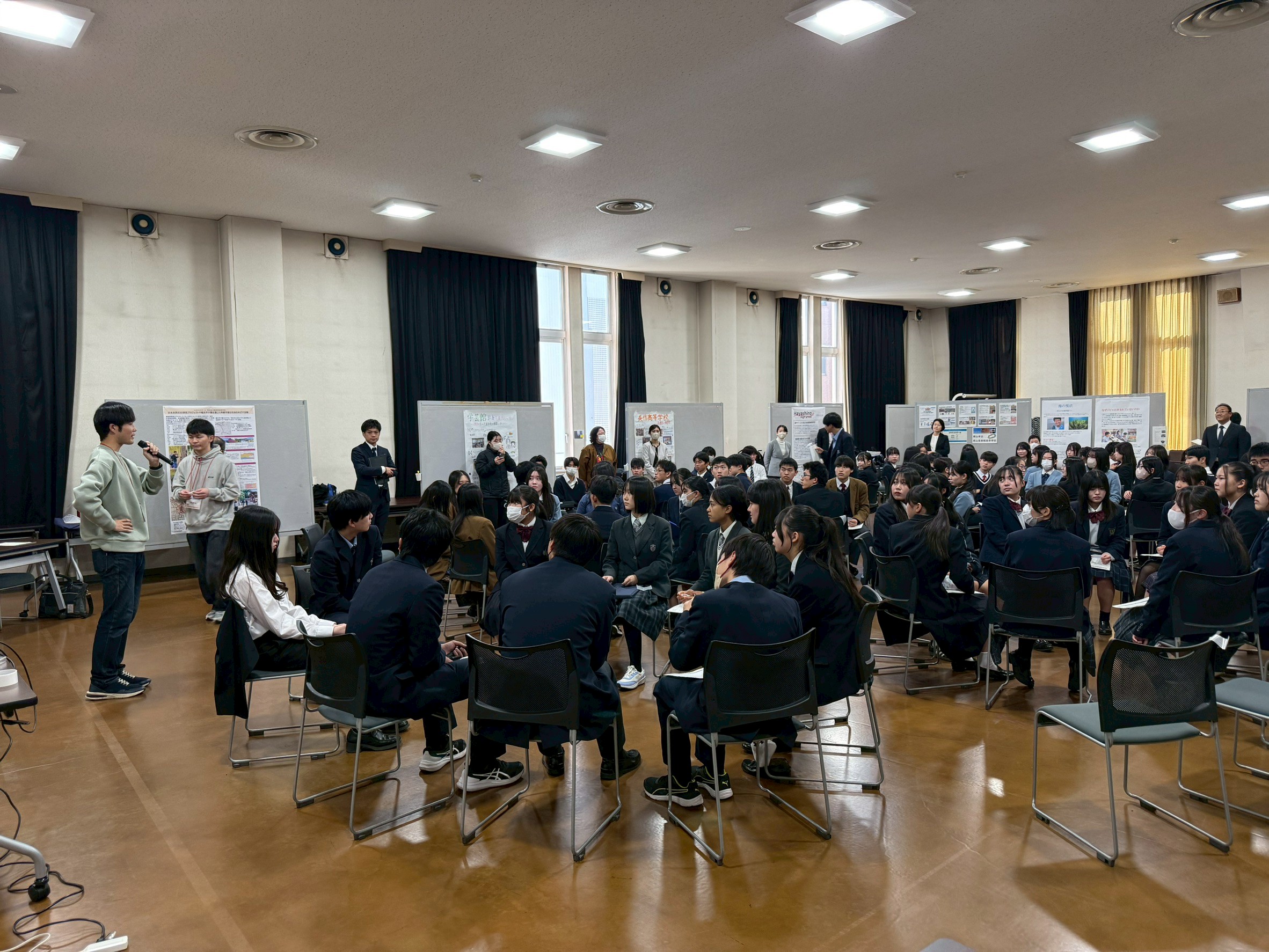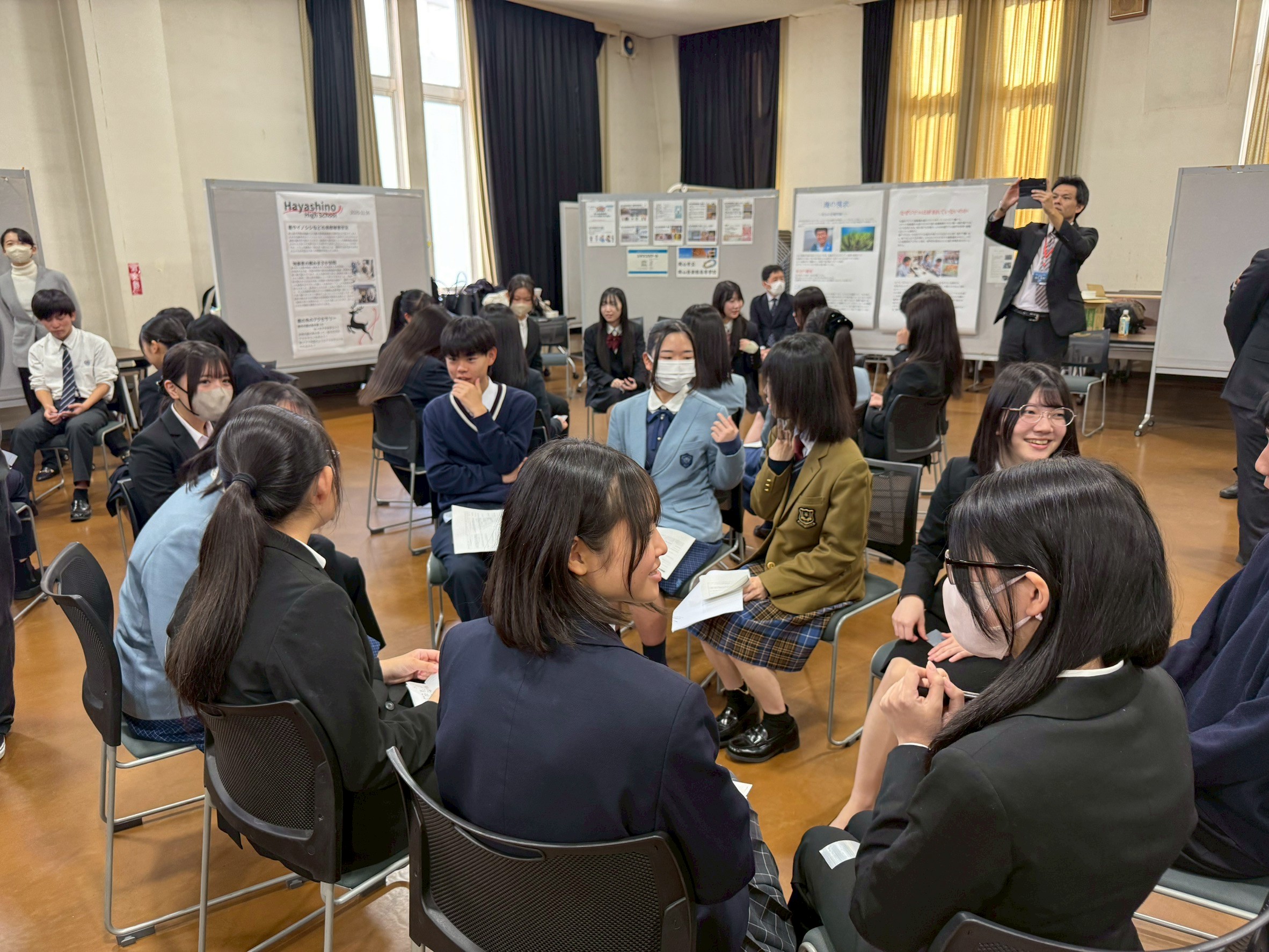 ポスターセッションでは、参加校の生徒たちがそれぞれの活動を紹介し合いました。互いに「良い」と思った点を付箋に書いて貼り付け、生徒同士が褒め合い、認め合う姿が見られました。