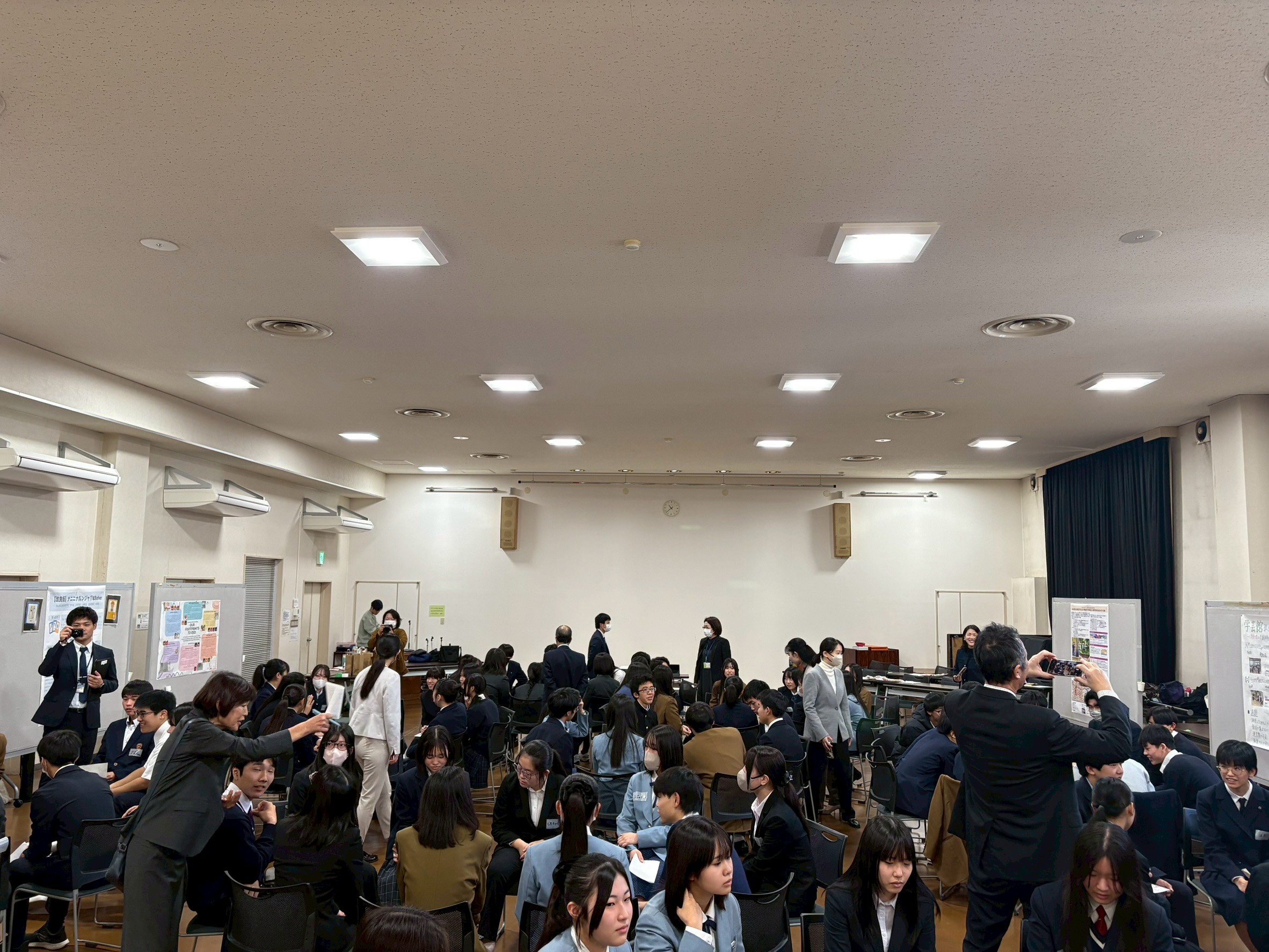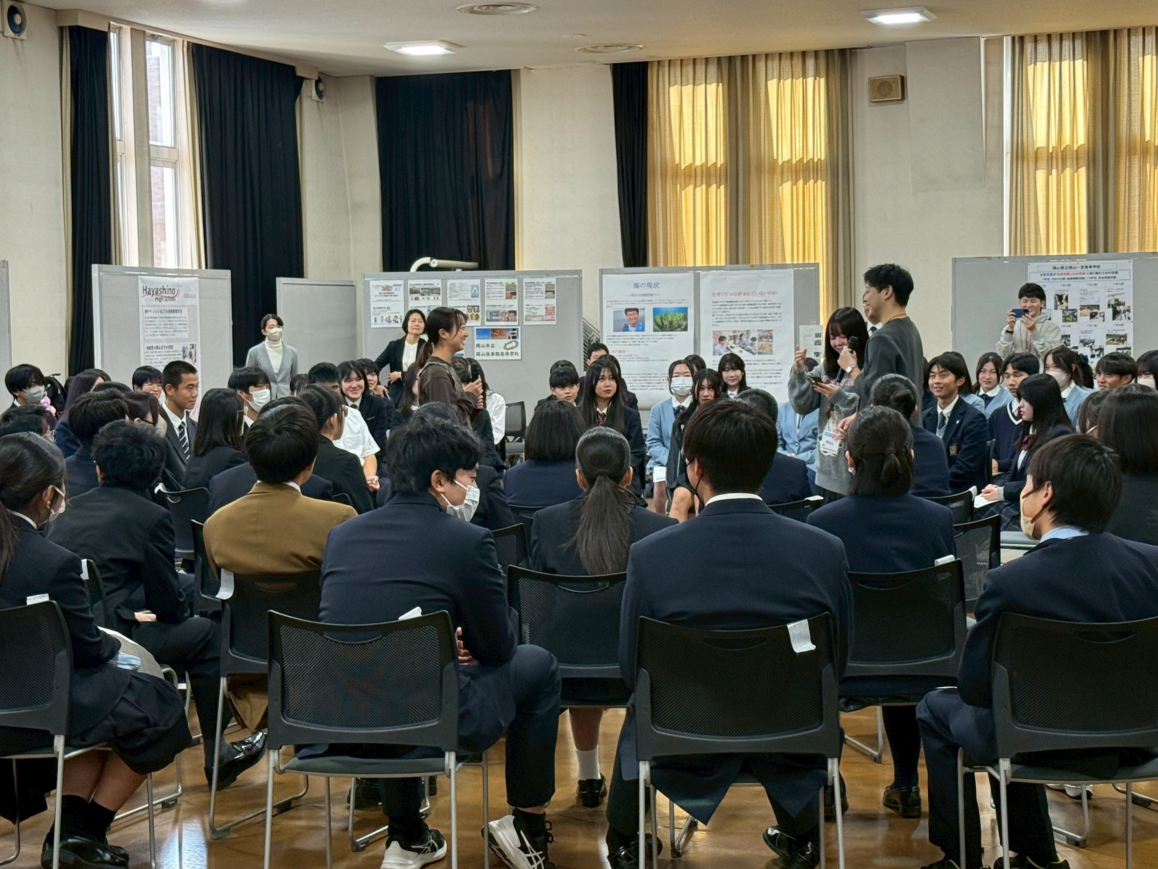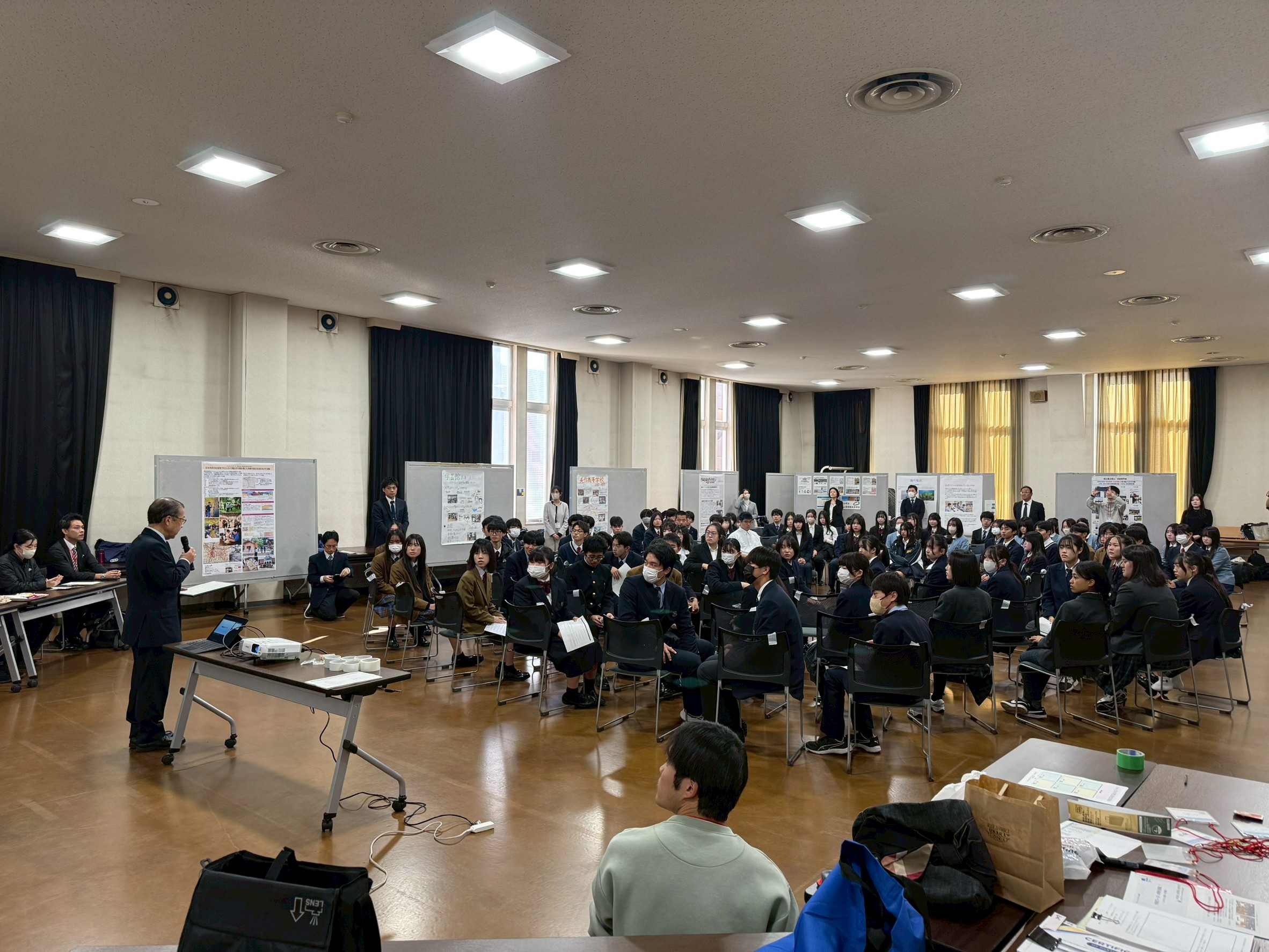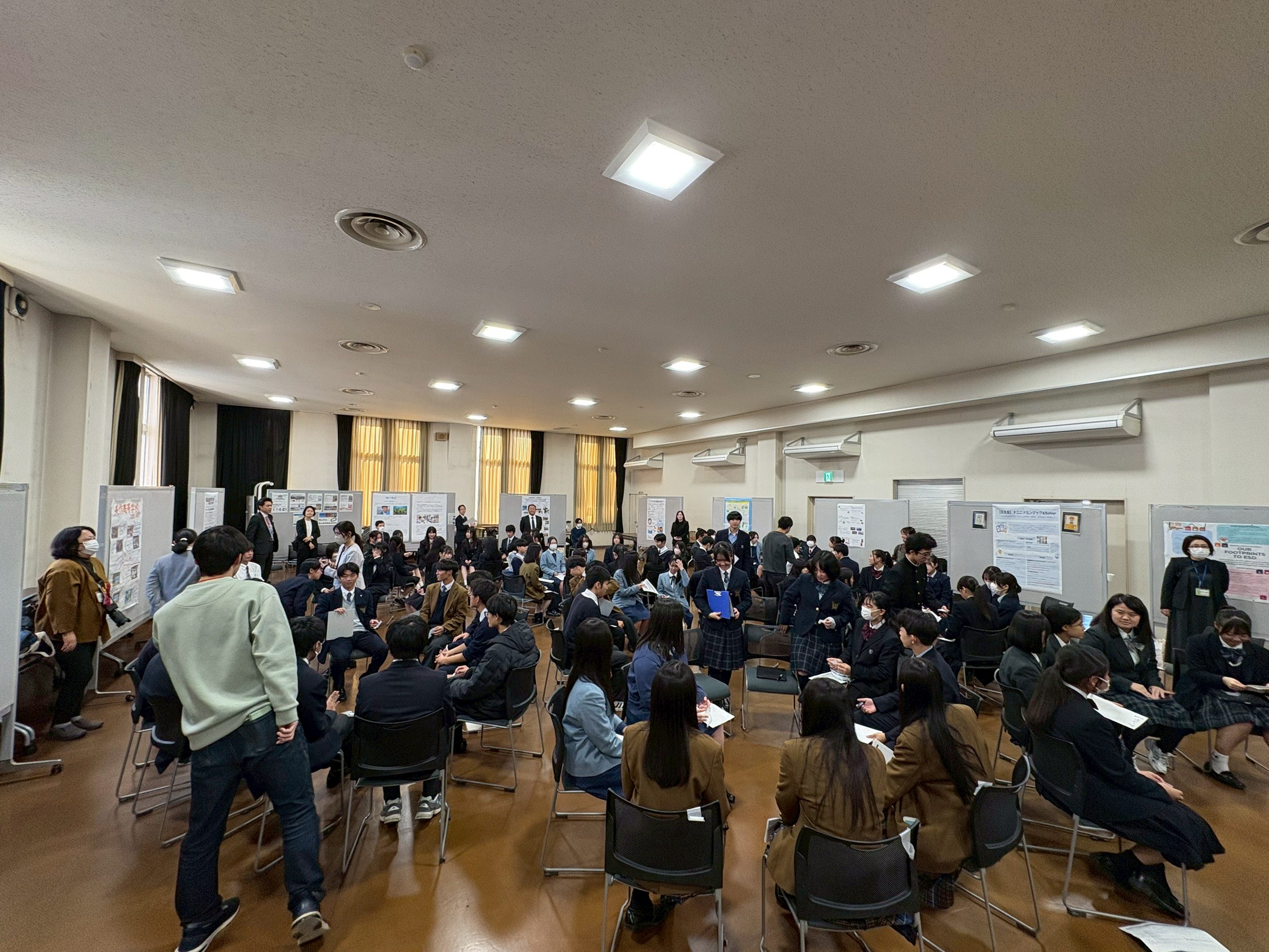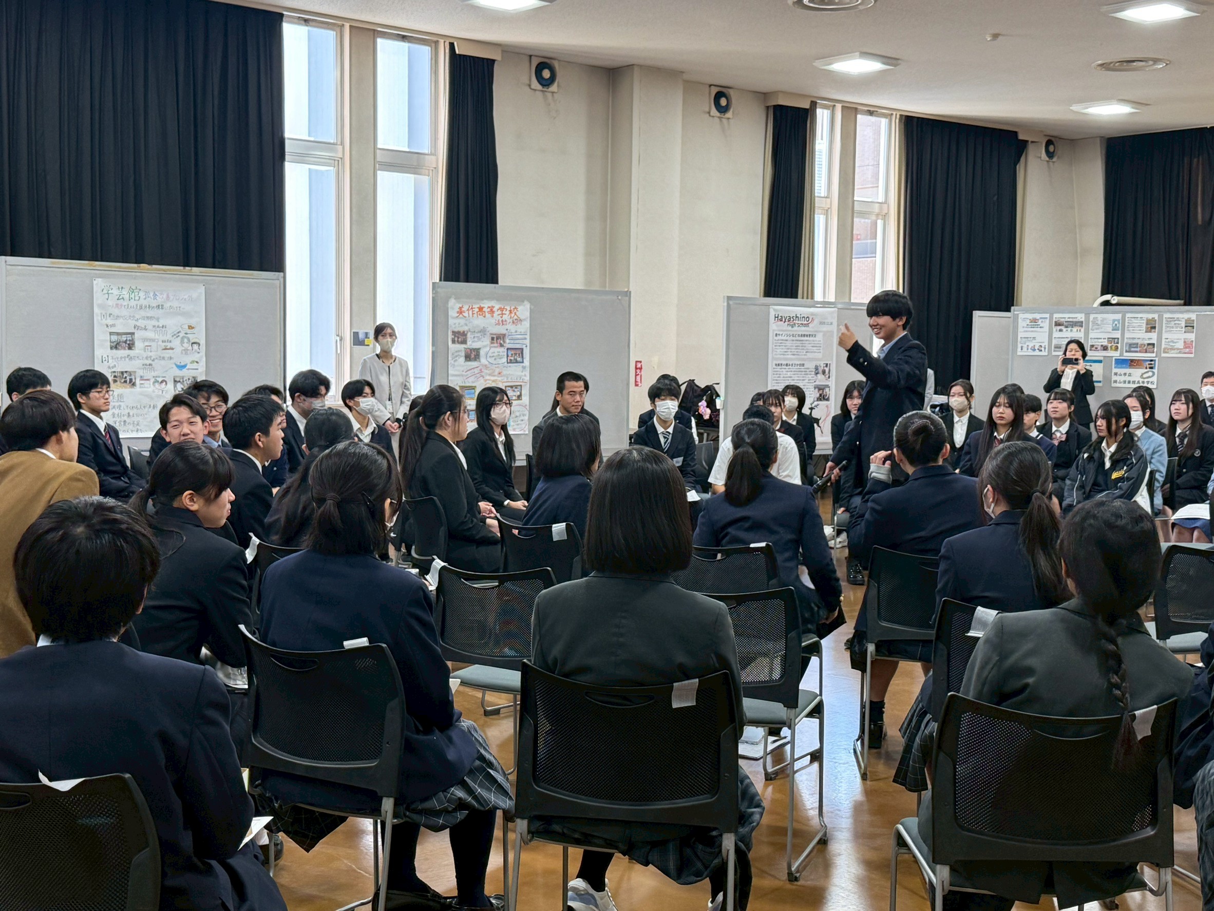 ポスターセッションでは、参加校の生徒たちがそれぞれの活動を紹介し合いました。互いに「良い」と思った点を付箋に書いて貼り付け、生徒同士が褒め合い、認め合う姿が見られました。