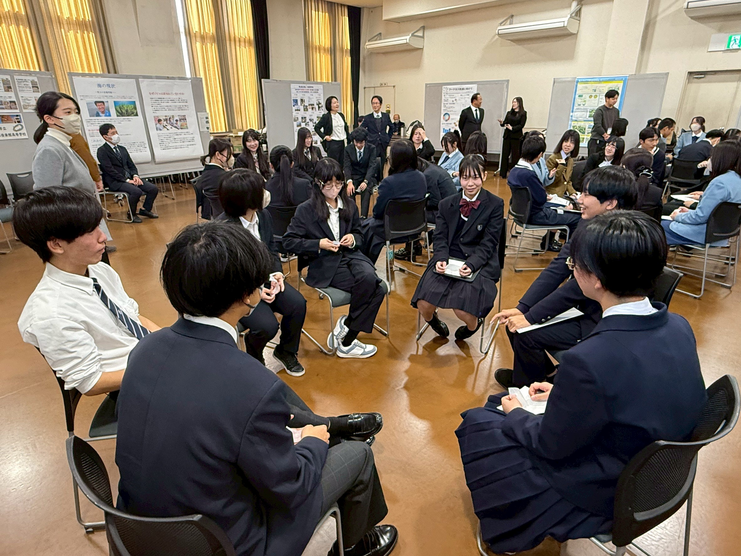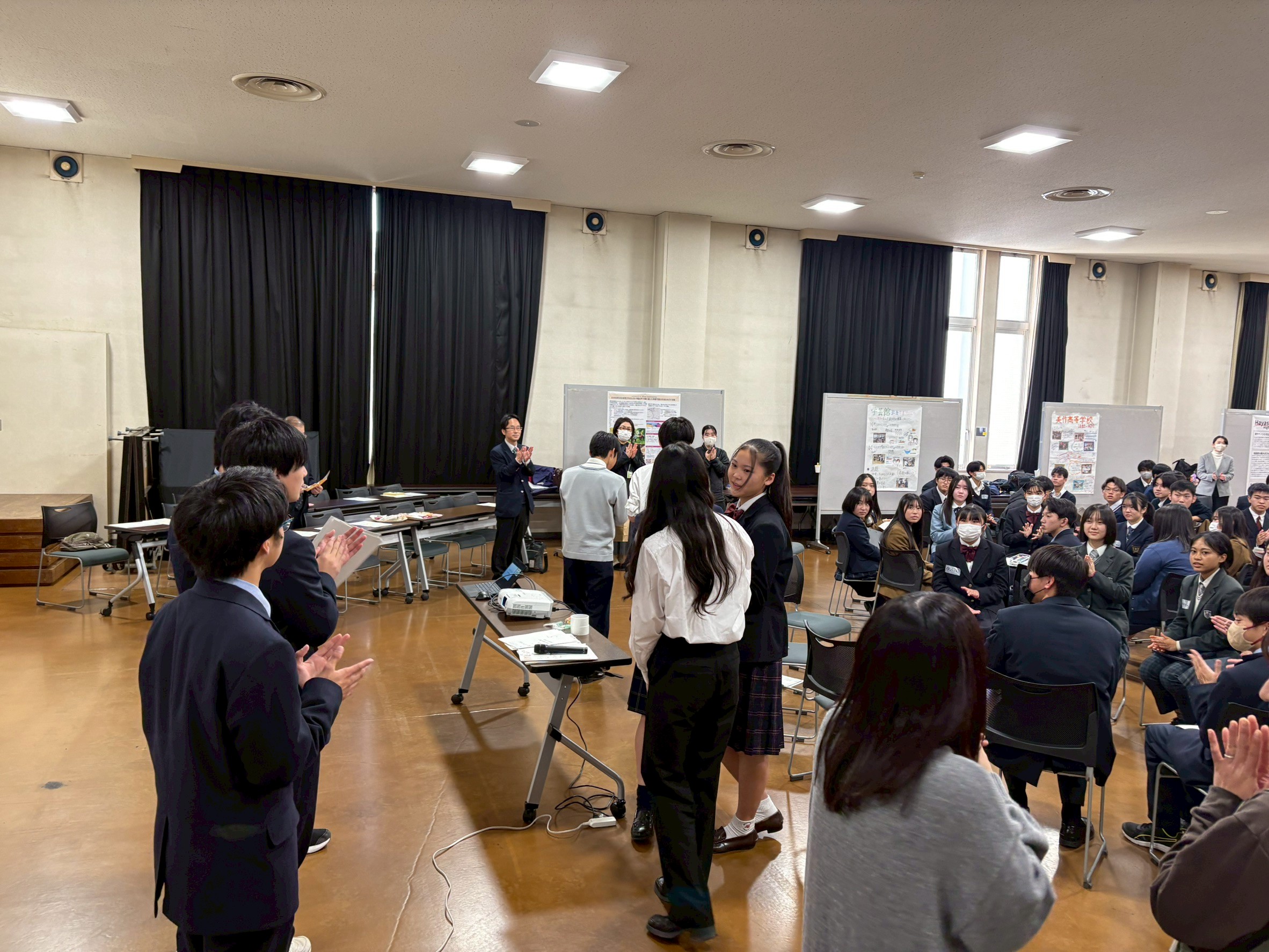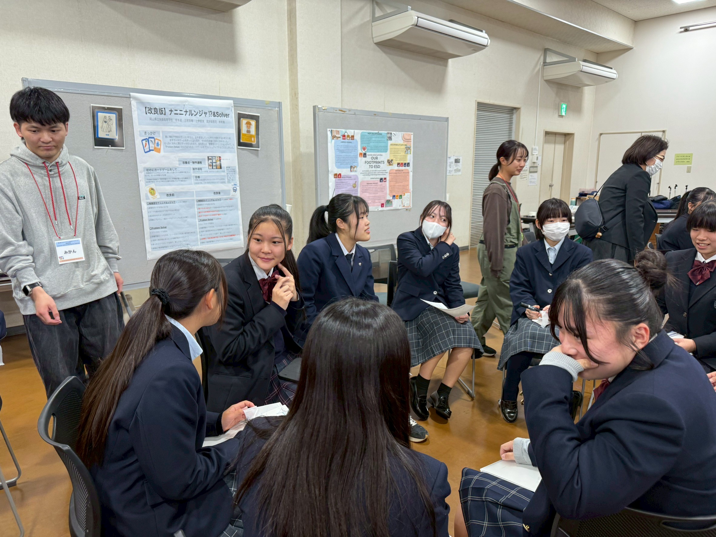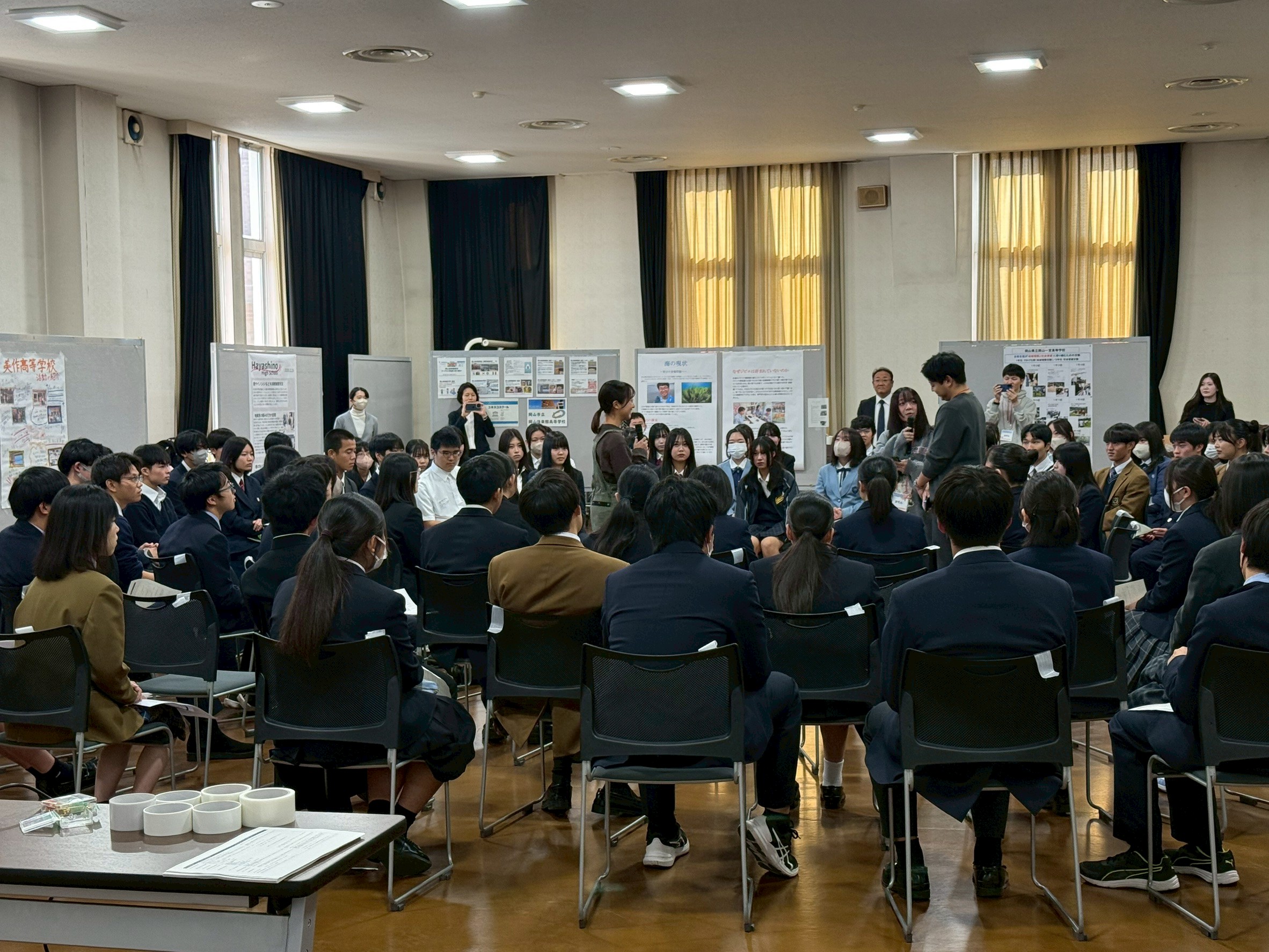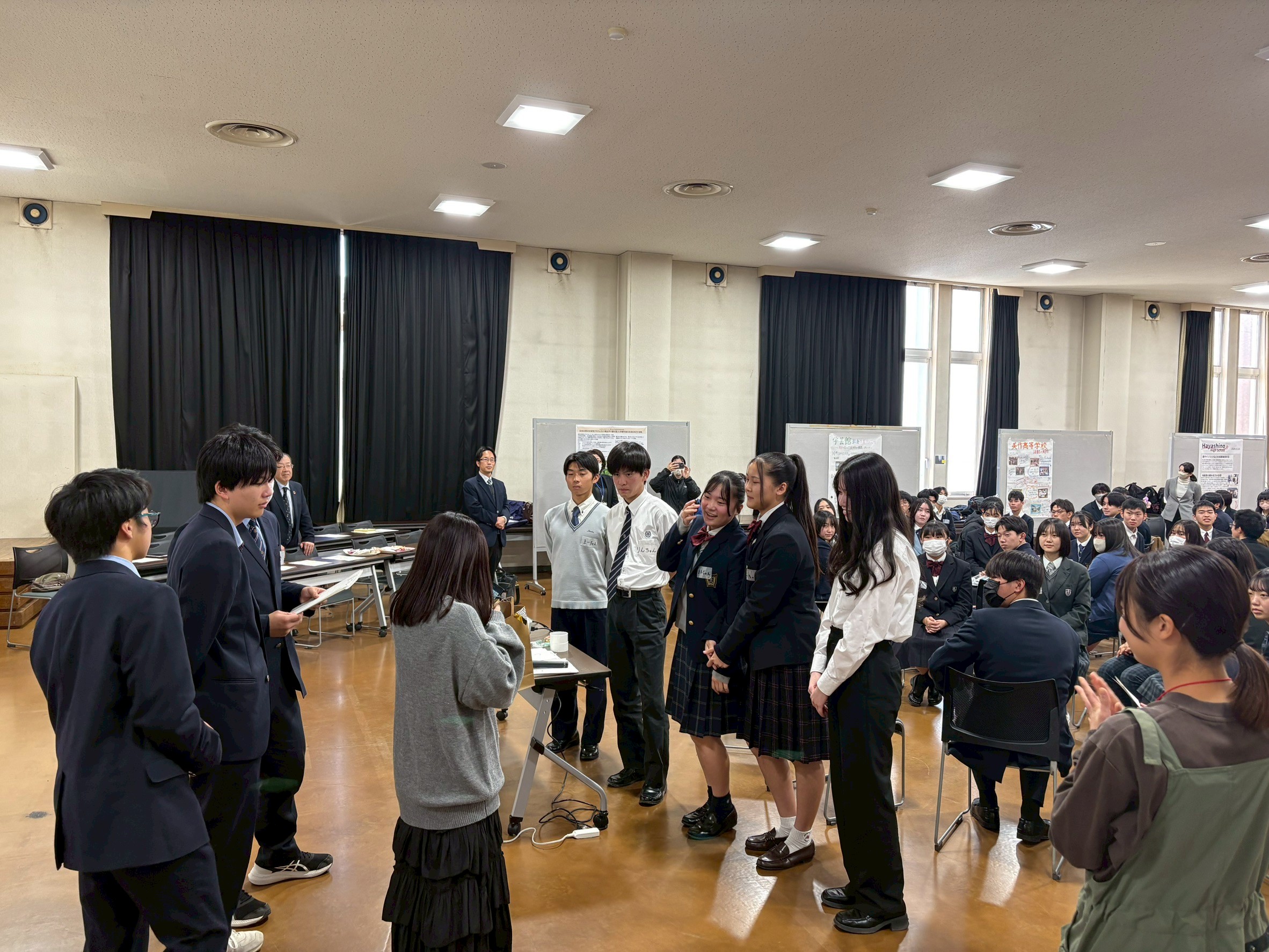 ポスターセッションでは、参加校の生徒たちがそれぞれの活動を紹介し合いました。互いに「良い」と思った点を付箋に書いて貼り付け、生徒同士が褒め合い、認め合う姿が見られました。