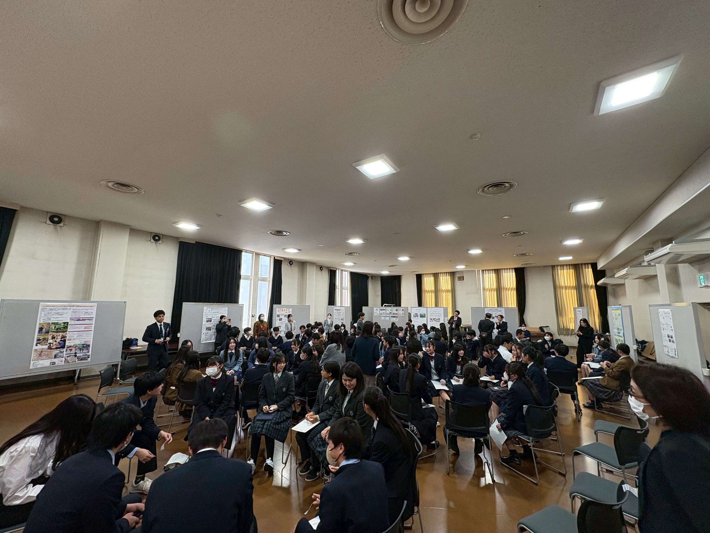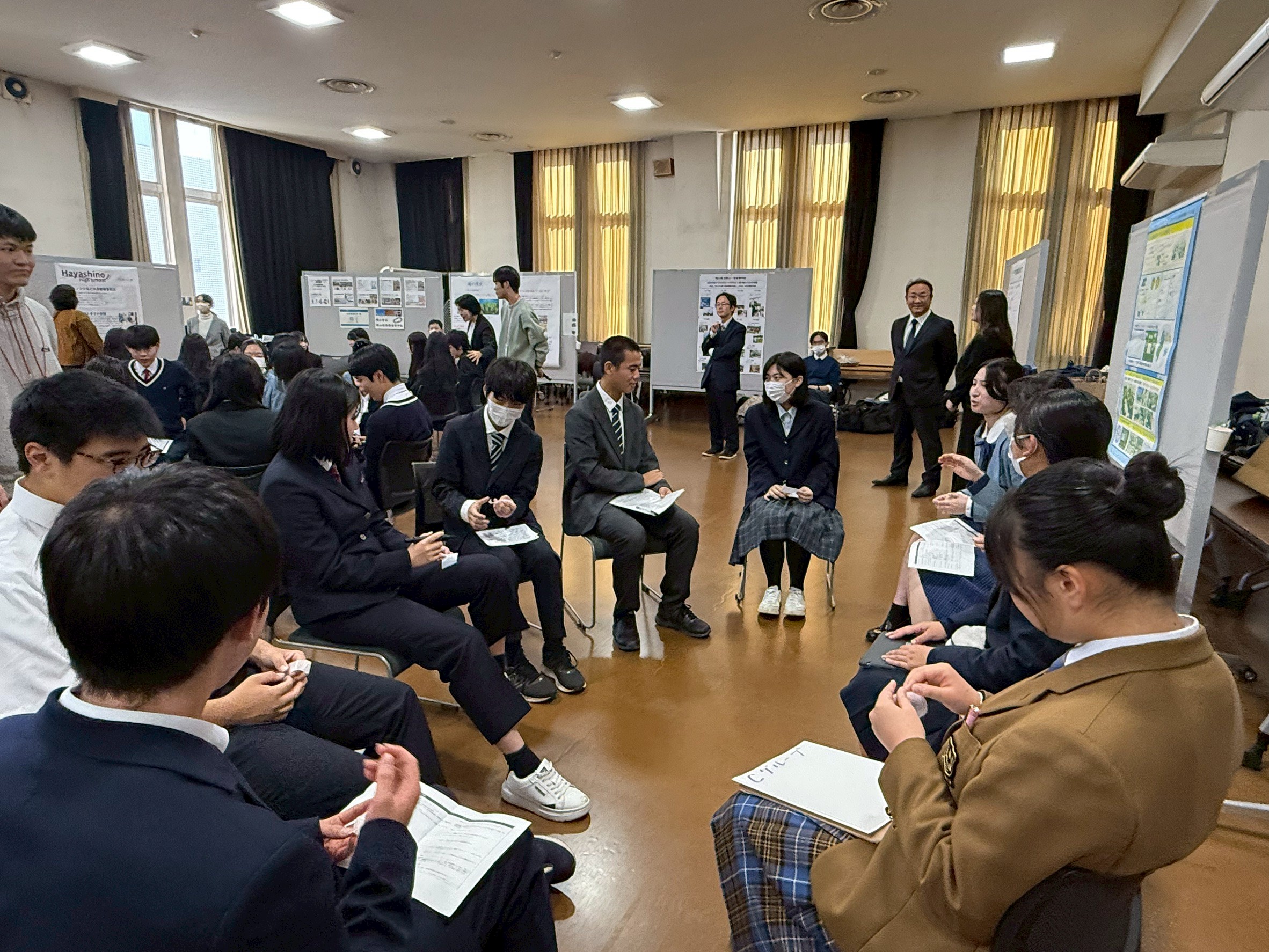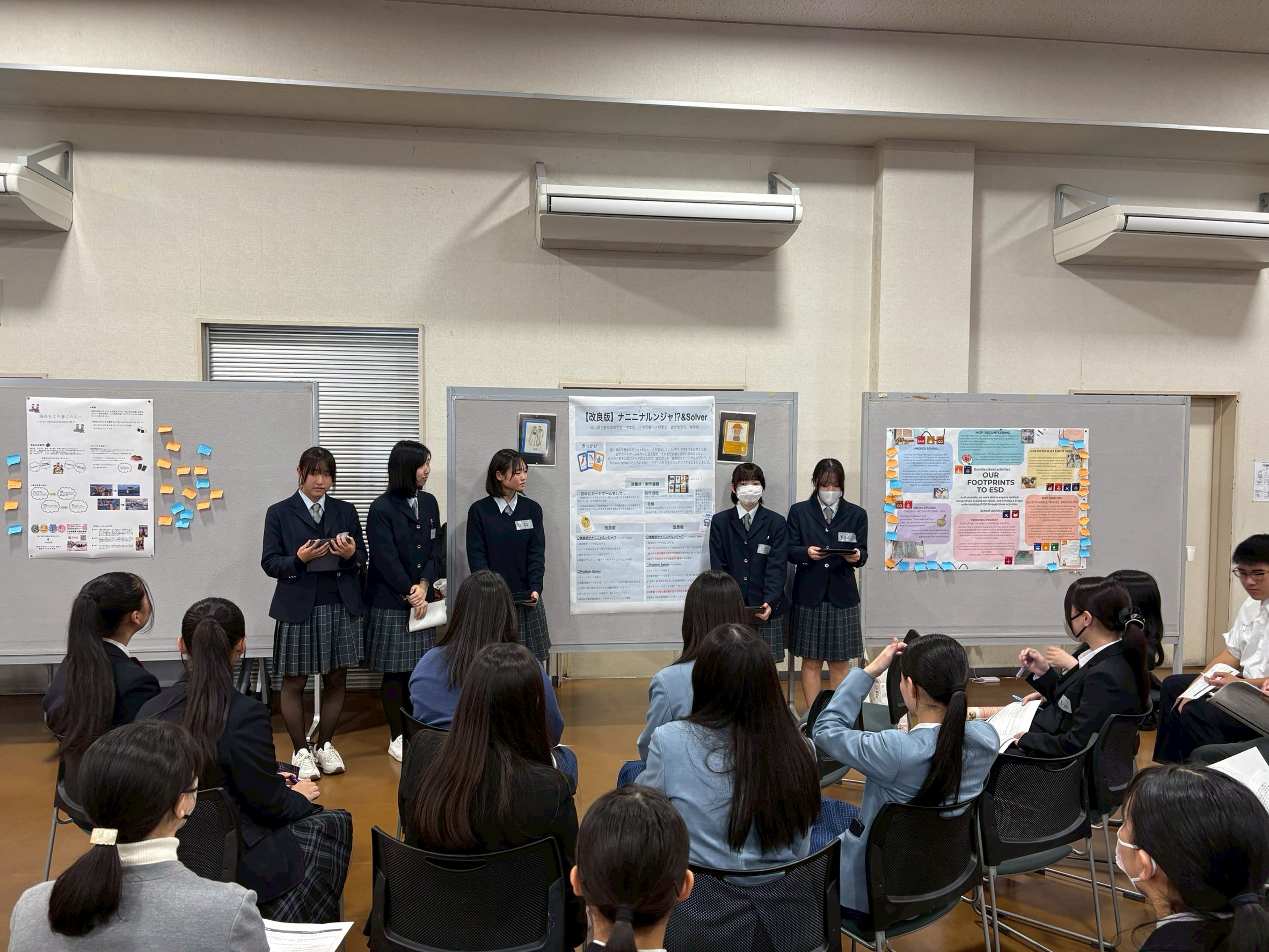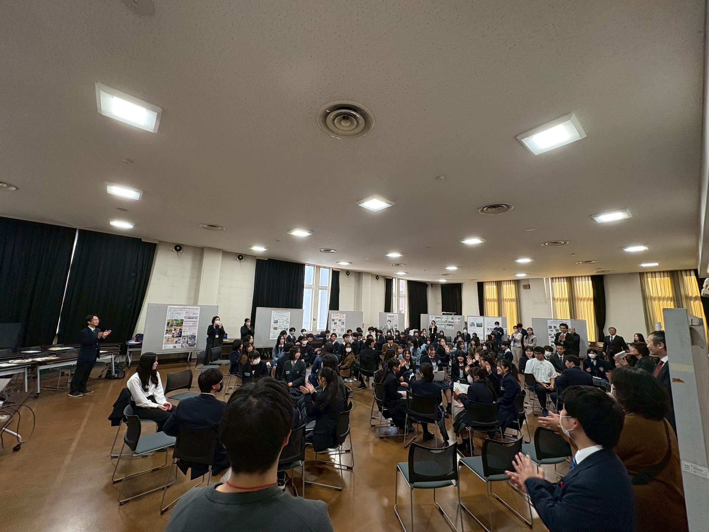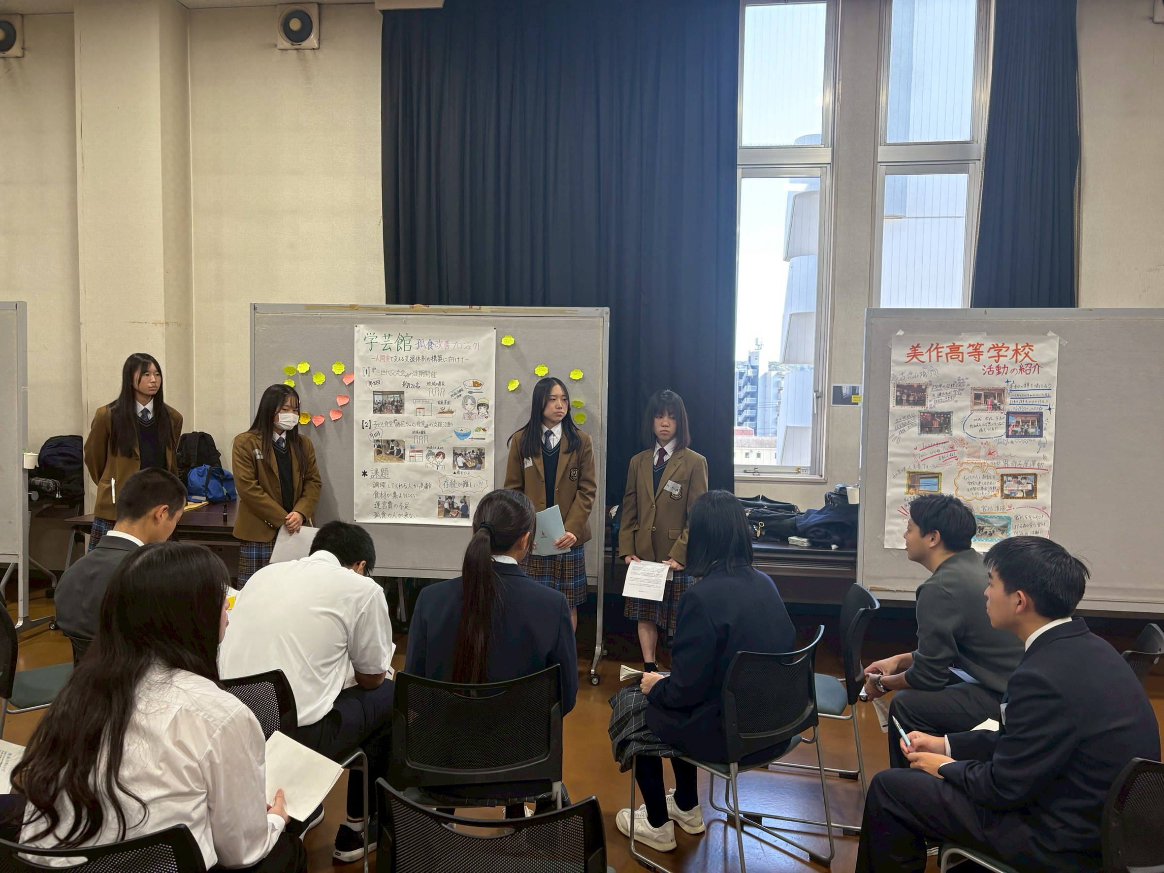 ポスターセッションでは、参加校の生徒たちがそれぞれの活動を紹介し合いました。互いに「良い」と思った点を付箋に書いて貼り付け、生徒同士が褒め合い、認め合う姿が見られました。