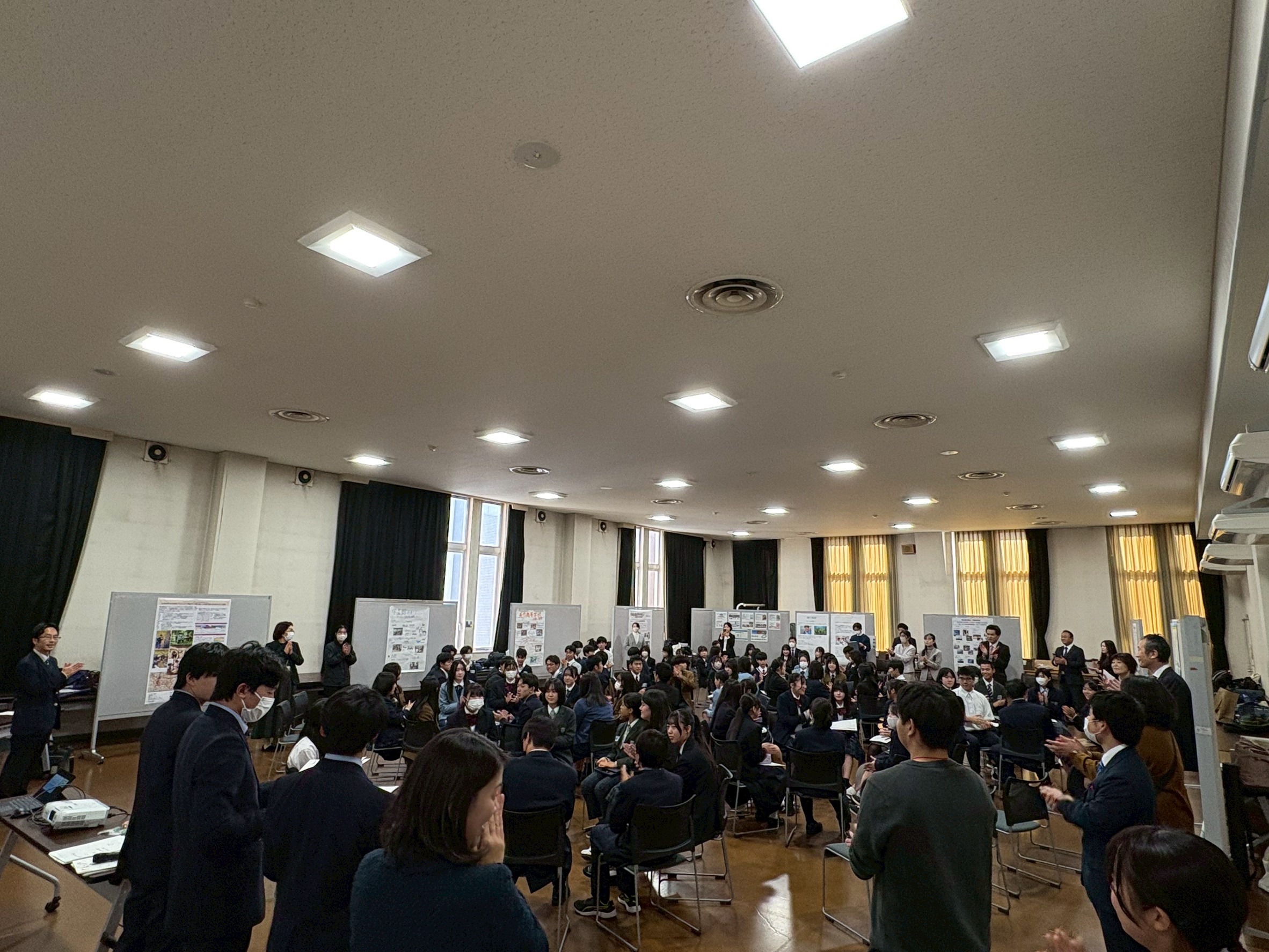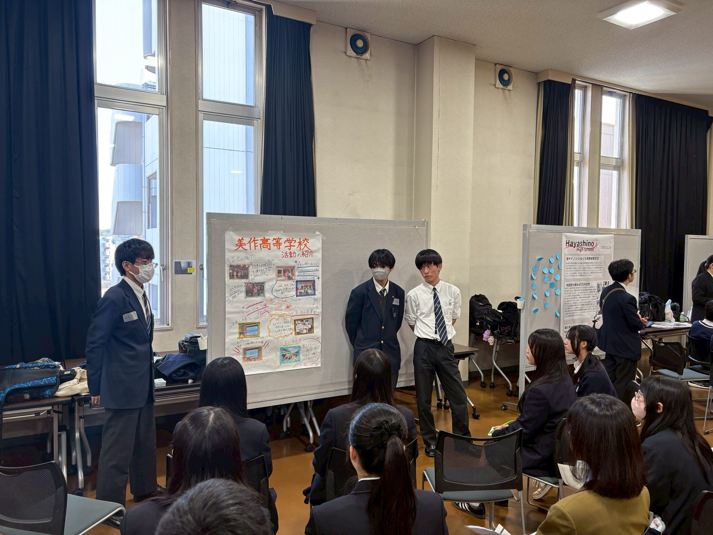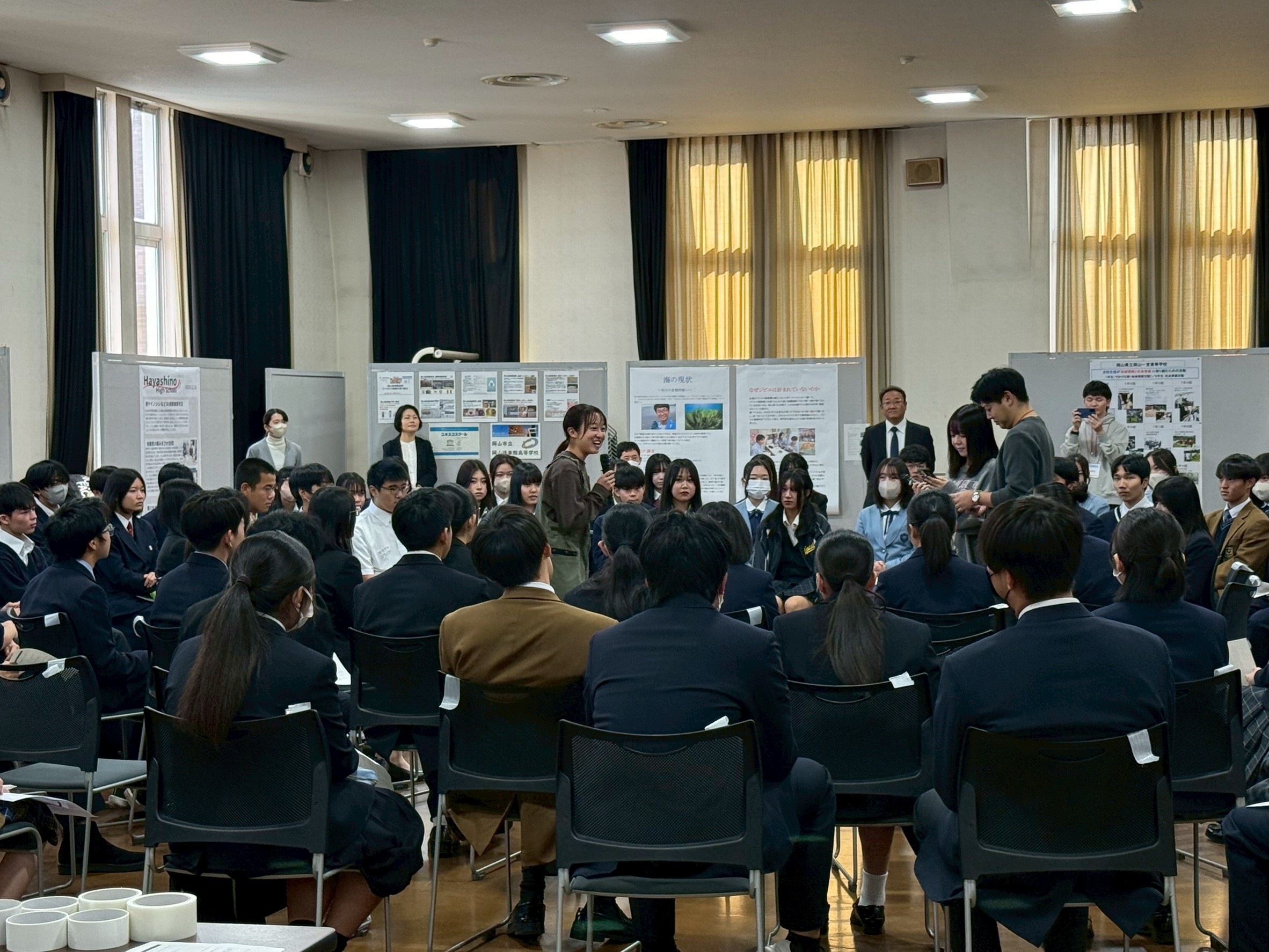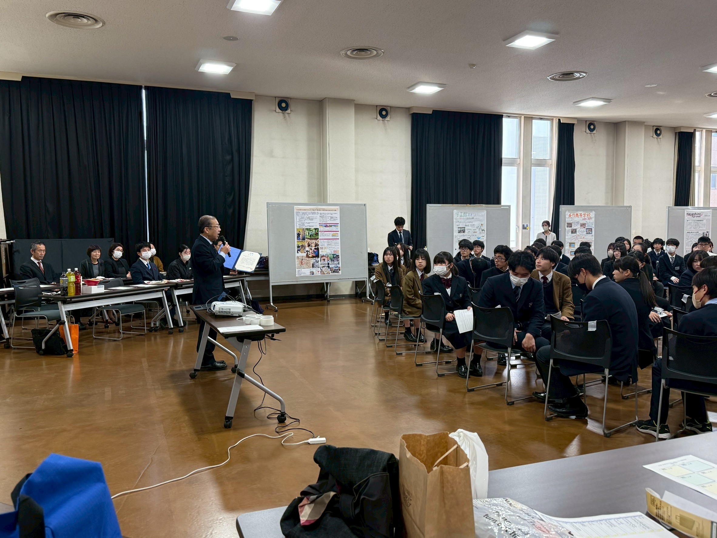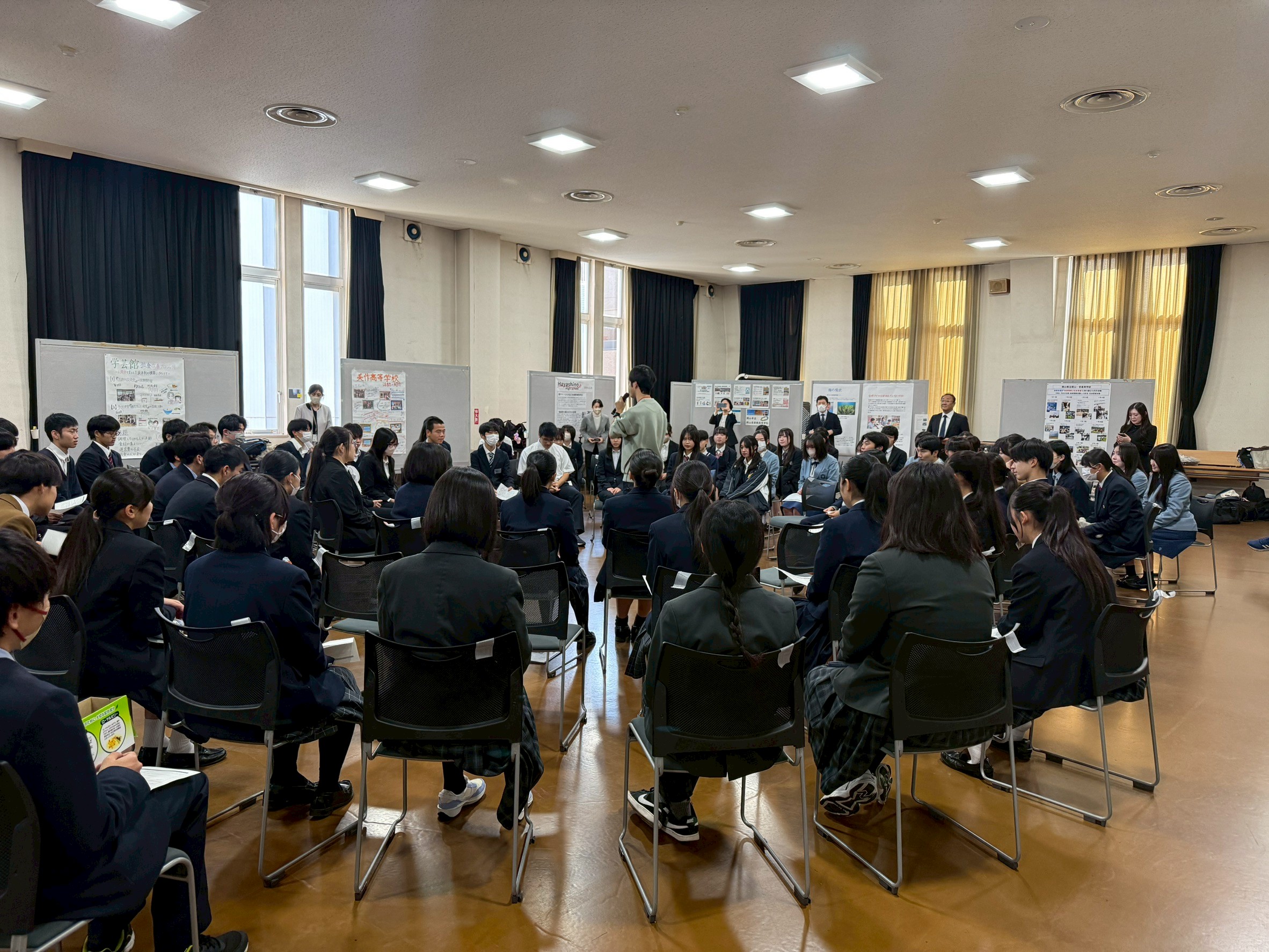 ポスターセッションでは、参加校の生徒たちがそれぞれの活動を紹介し合いました。互いに「良い」と思った点を付箋に書いて貼り付け、生徒同士が褒め合い、認め合う姿が見られました。