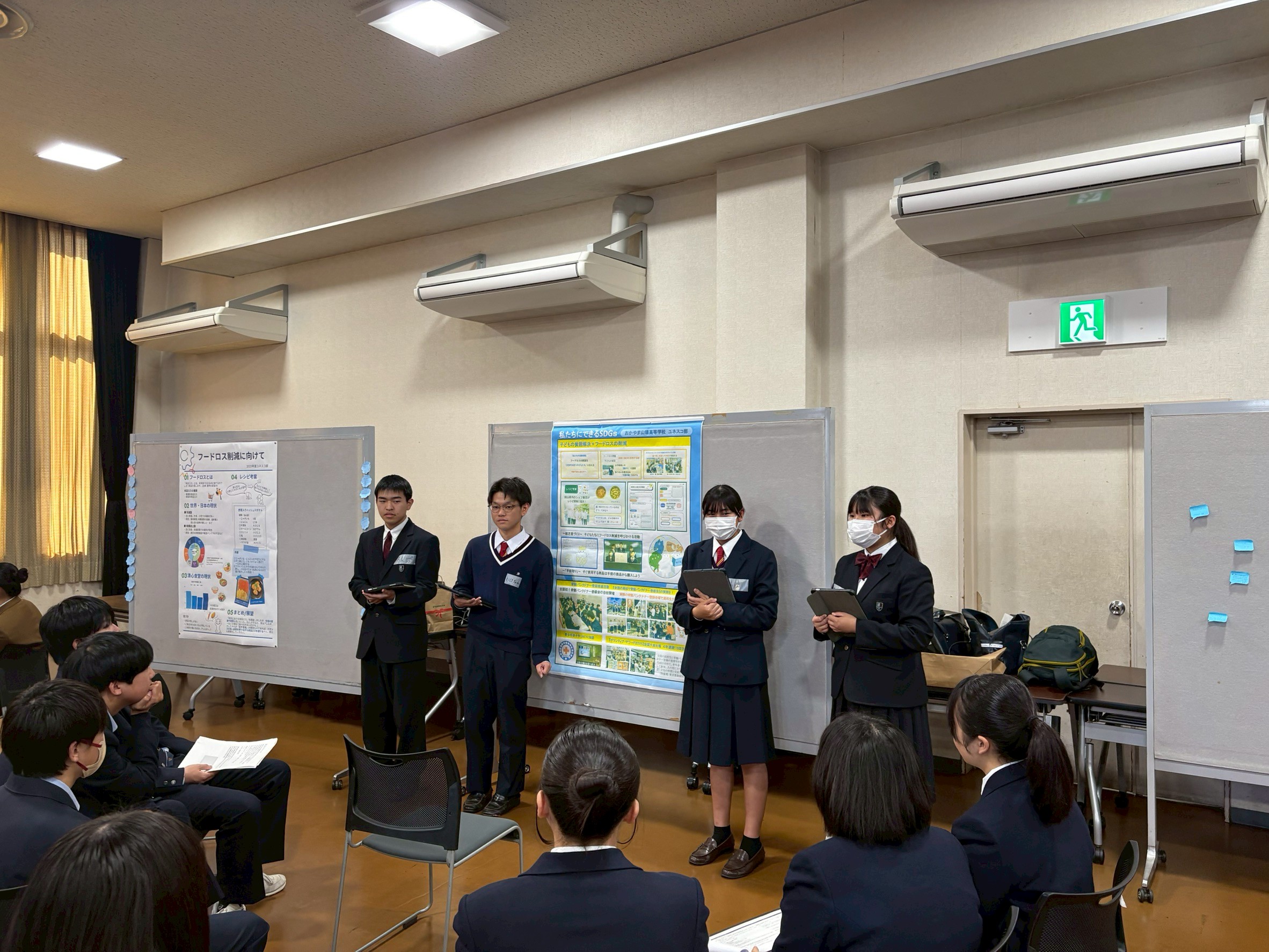 最初の会話では他校の人と積極的に自分から話しかけてたくさんの出会いをすることができた。ポスター発表では気になったところや疑問に思ったことを質問することができた。自分が発表するときに、もっと相手に伝わりやすいように感情を込めたり、ジェスチャーを使ったりすれば良かった。自分たちの発表と他校の発表を比べ合い、自分たちの研究の良いところと悪いところを見つけることができました。昼食をとるときに、他の学校の生徒と食べて、仲良くなることができた。ポスター発表は、それぞれの学校で特色があった。また、このような機会があれば喜んで参加したい。この経験を自分の課題研究に生かしていきたい。