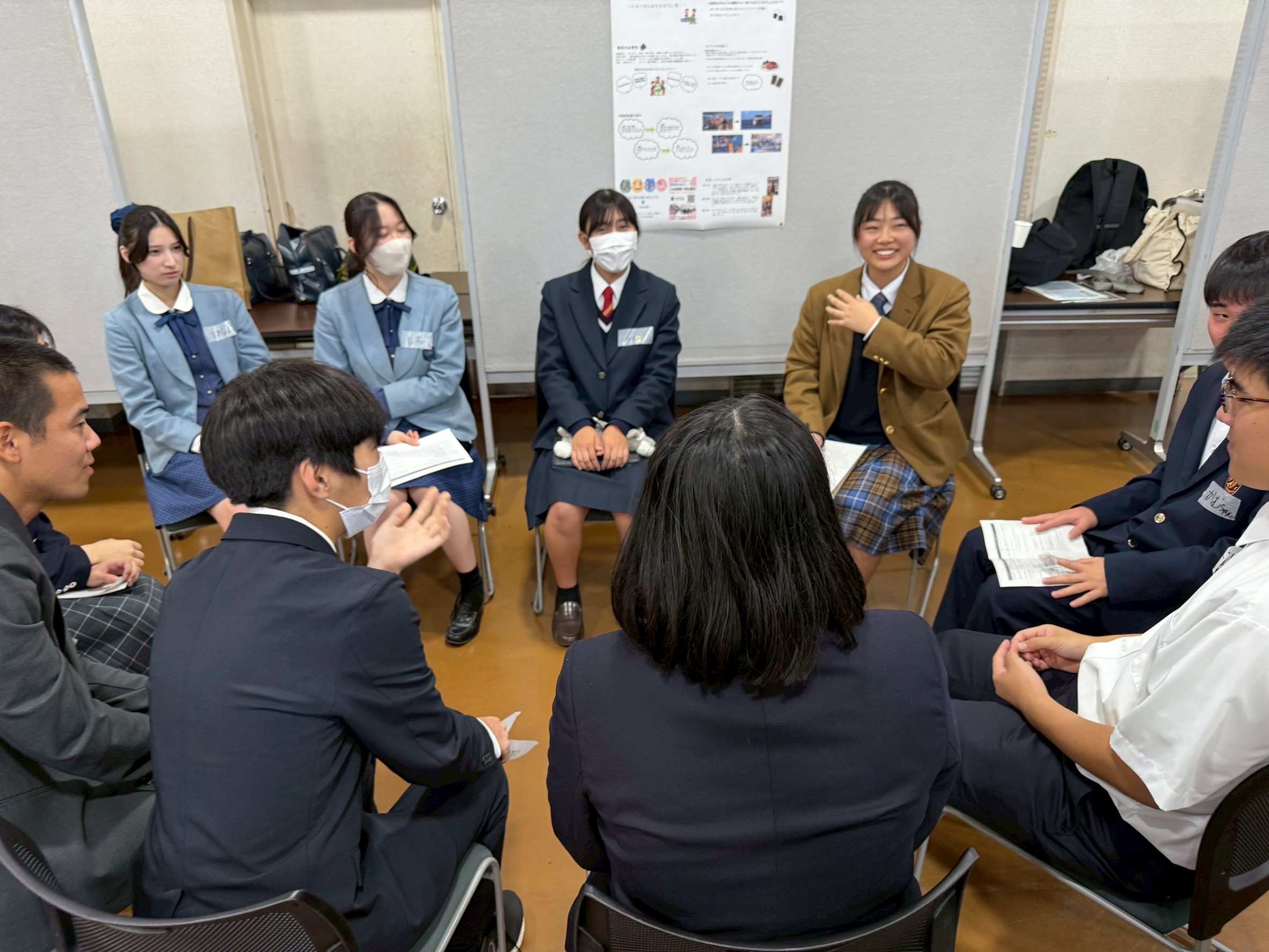 今回は参加者全員の顔が見えるよう座席を円形にし、あえて「敬語禁止」というルールでスタートしました。これは、学校や学年といった立場に関係なく、フラットな関係でお互いを尊重し合い、自由に交流してほしいという願いからです。