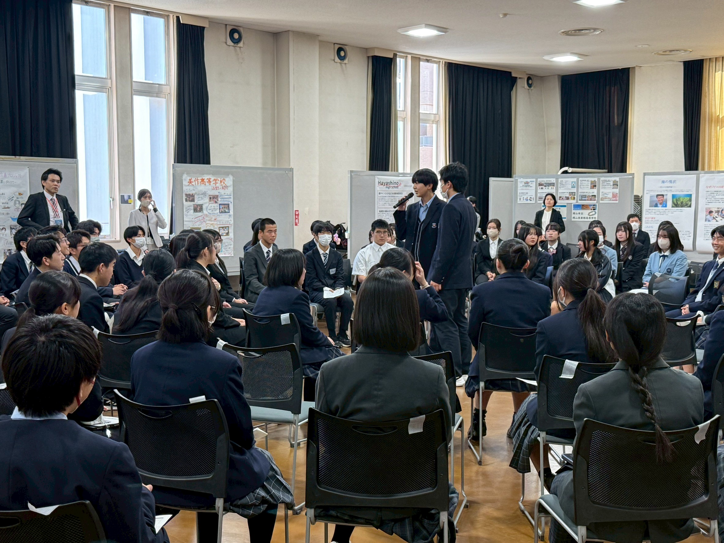各高校で取り組んでいることについてポスター発表を行い、高校生が考えた「食」にまつわる諸問題について、学べるワークショップをお互いに体験し合いました。