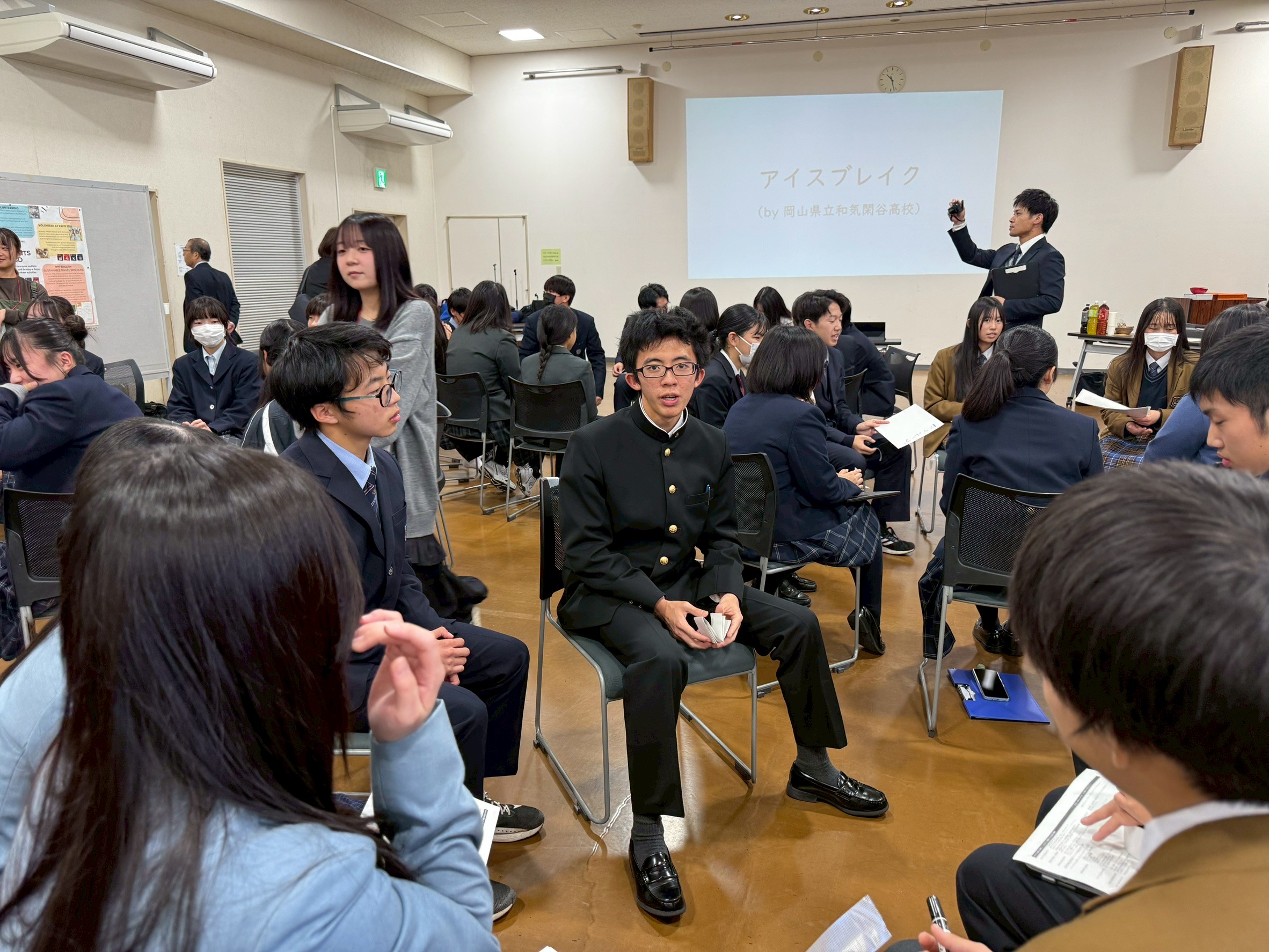 本年度幹事校の和気閑谷高校、および次年度幹事校の学芸館高校の生徒より感想が述べられました。「大変楽しかった」等の好意的な意見が多数寄せられ、実りある会となりました。