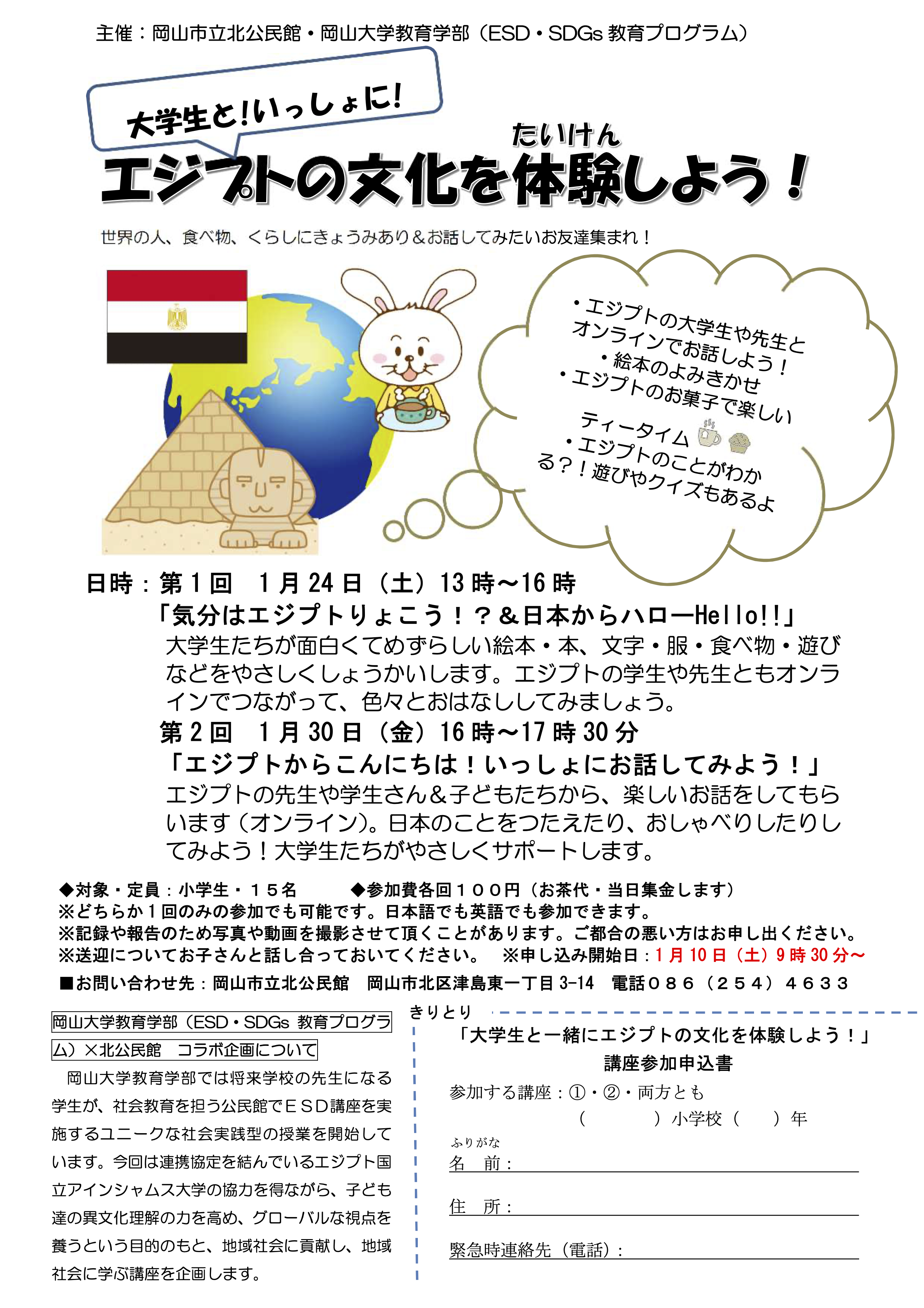 【参加者募集】ESD・GCEDサービス・ラーニング履修生によるワークショップwithエジプト公民館