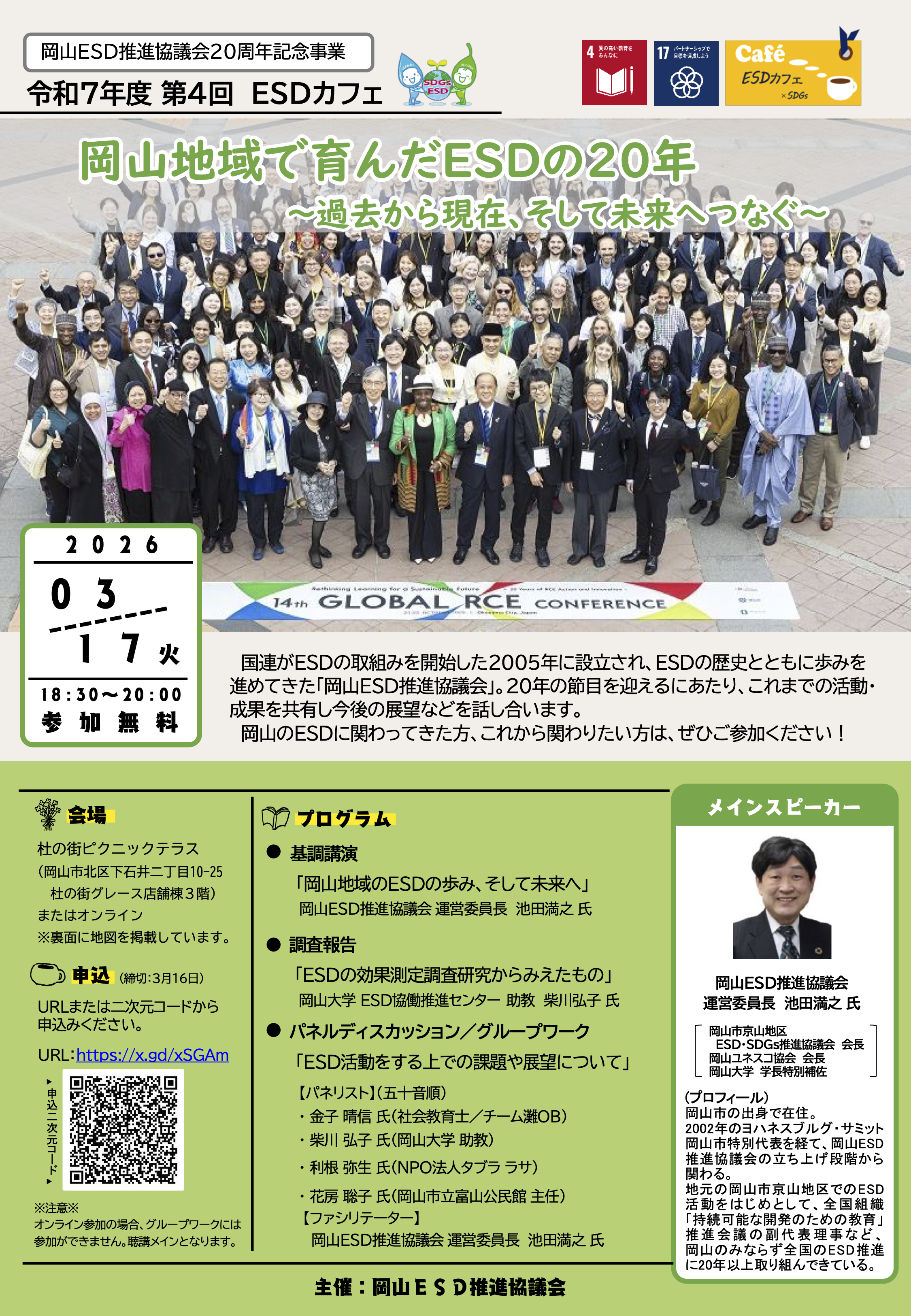 ESDカフェ×SDGs 岡山地域で育んだESDの20年~過去から現在、そして未来へつなぐ~
