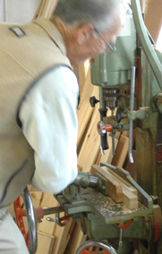 江口さん これはアリ桟のでしょうか角 ノミ盤でホゾ穴空け |
