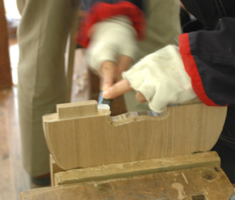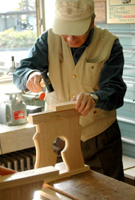 | ホゾ位置、幅、厚みをチェックして・・ | この手は本田さん ホゾ胴(カタ)の調整 |